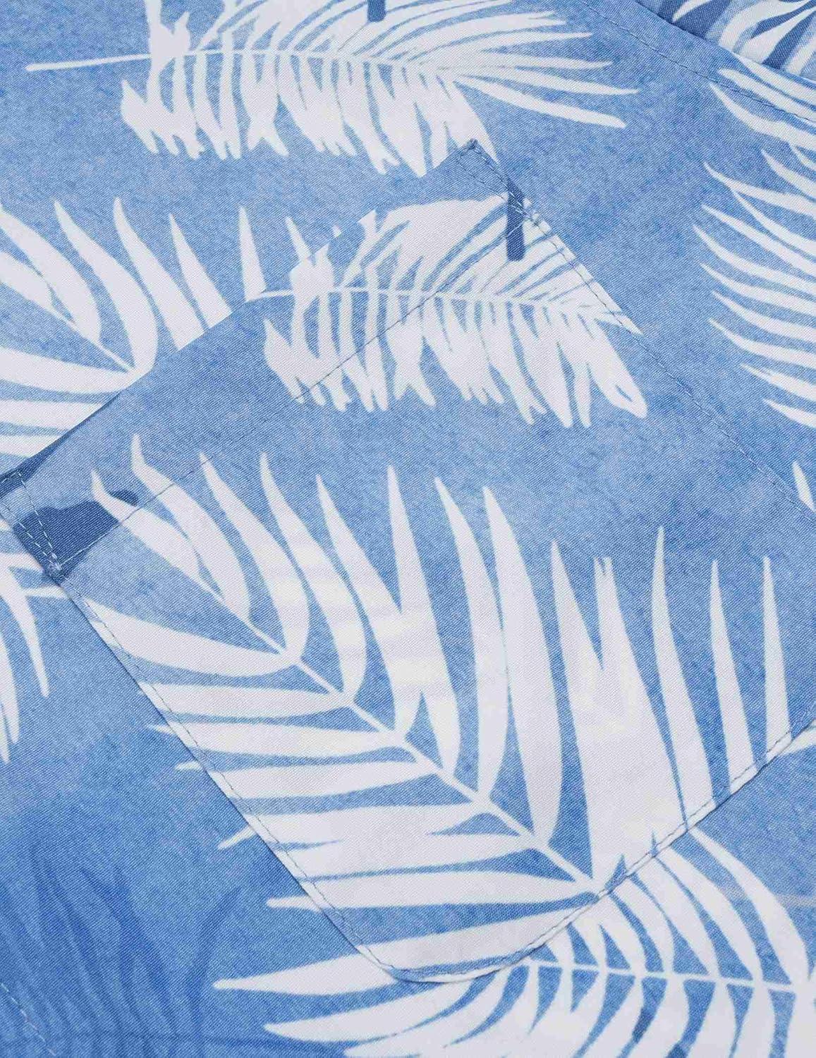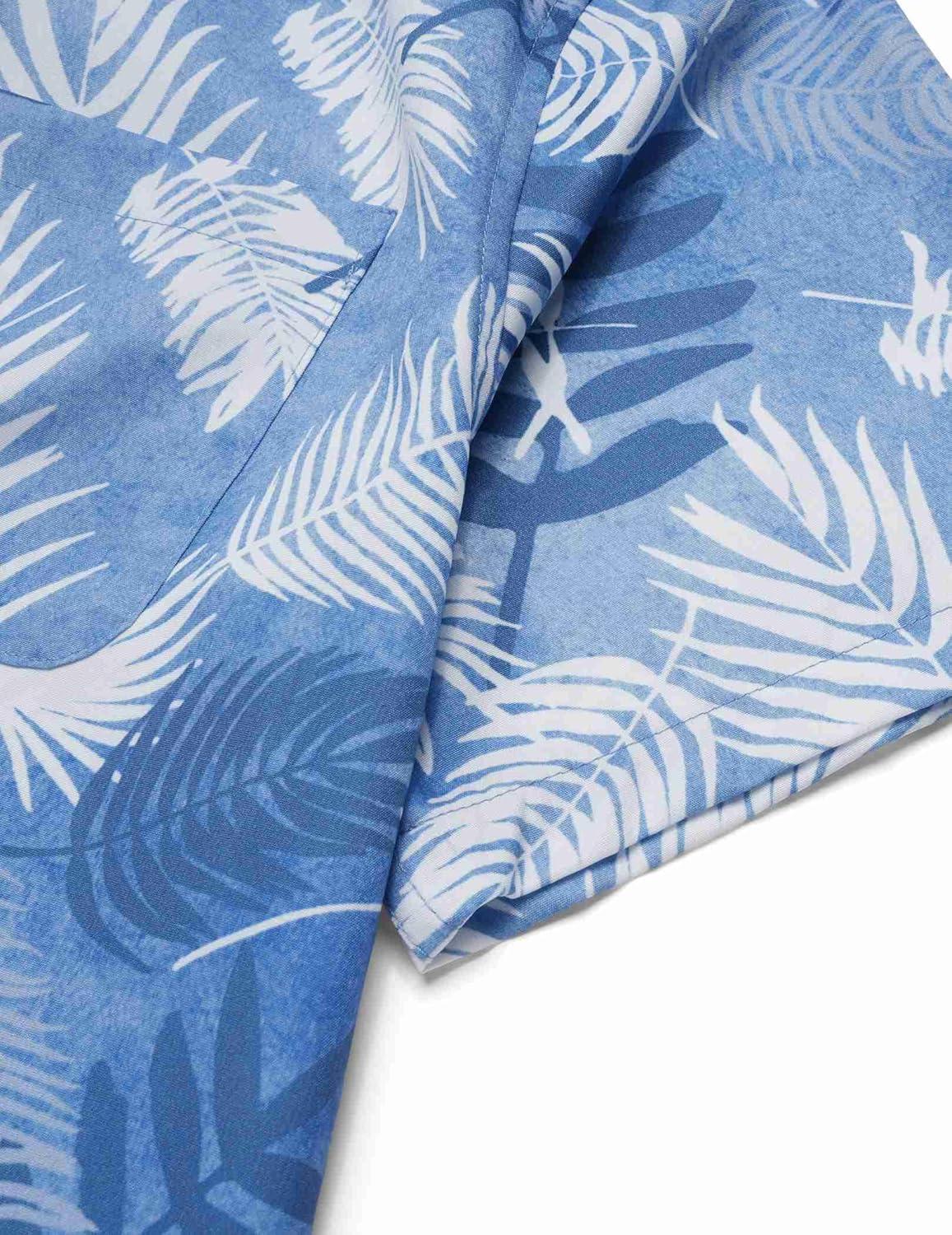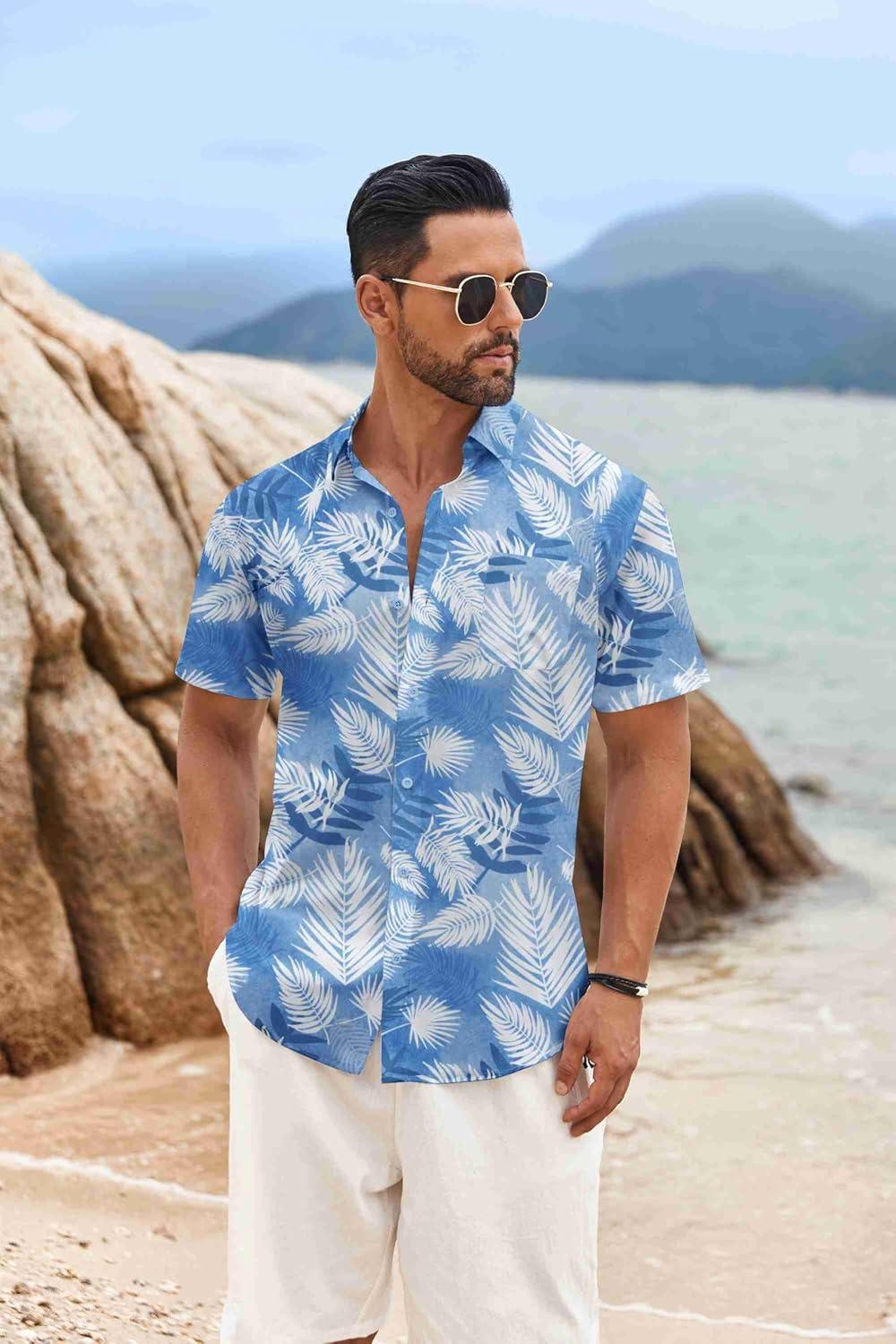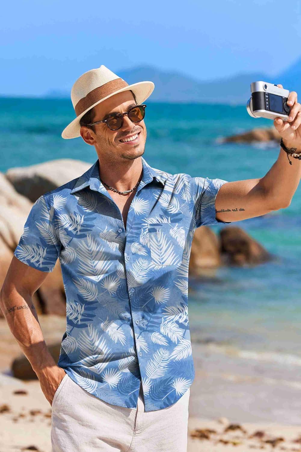 COOFANDY Men’s Hawaiian Shirt Short Sleeve Casual Button Down Tropical Summer Beach Aloha Shirts(Dark Blue-white Leaves)
