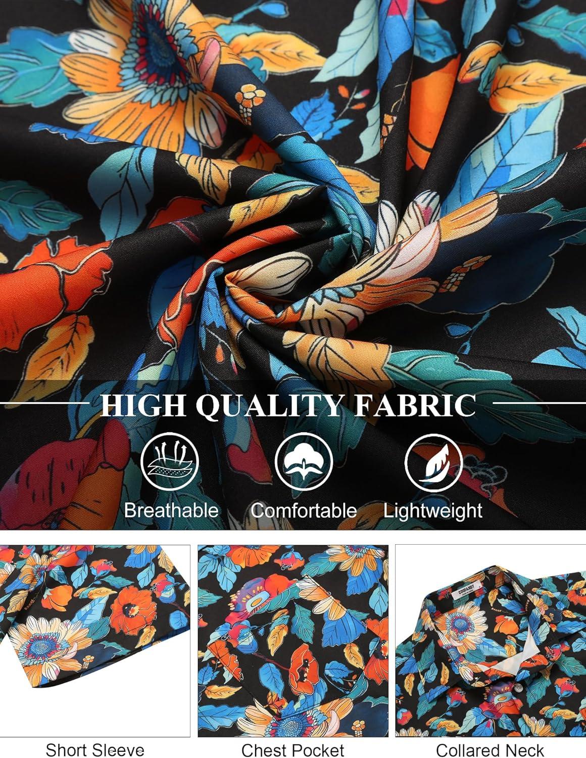 COOFANDY Men’s Hawaiian Shirt Short Sleeve Floral Button Down Shirts Tropical Holiday Beach Shirts(Black – Colorful Flower)