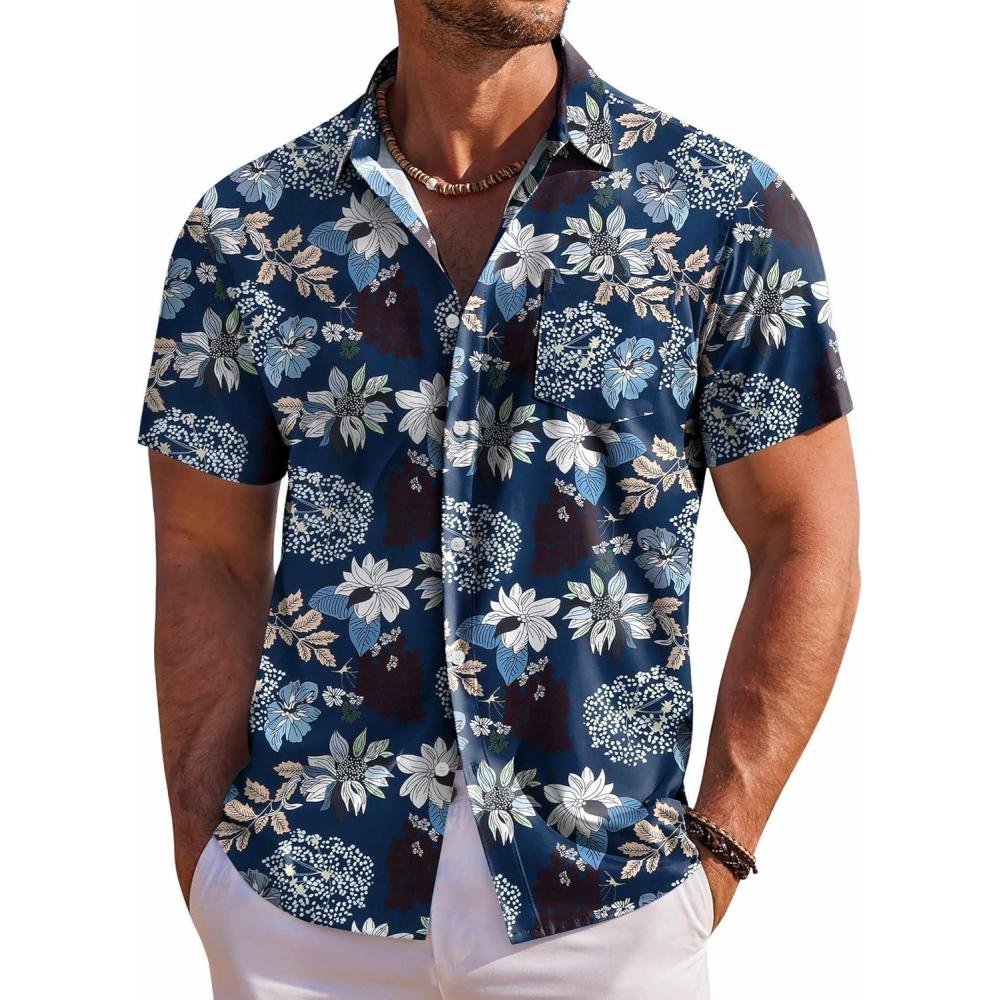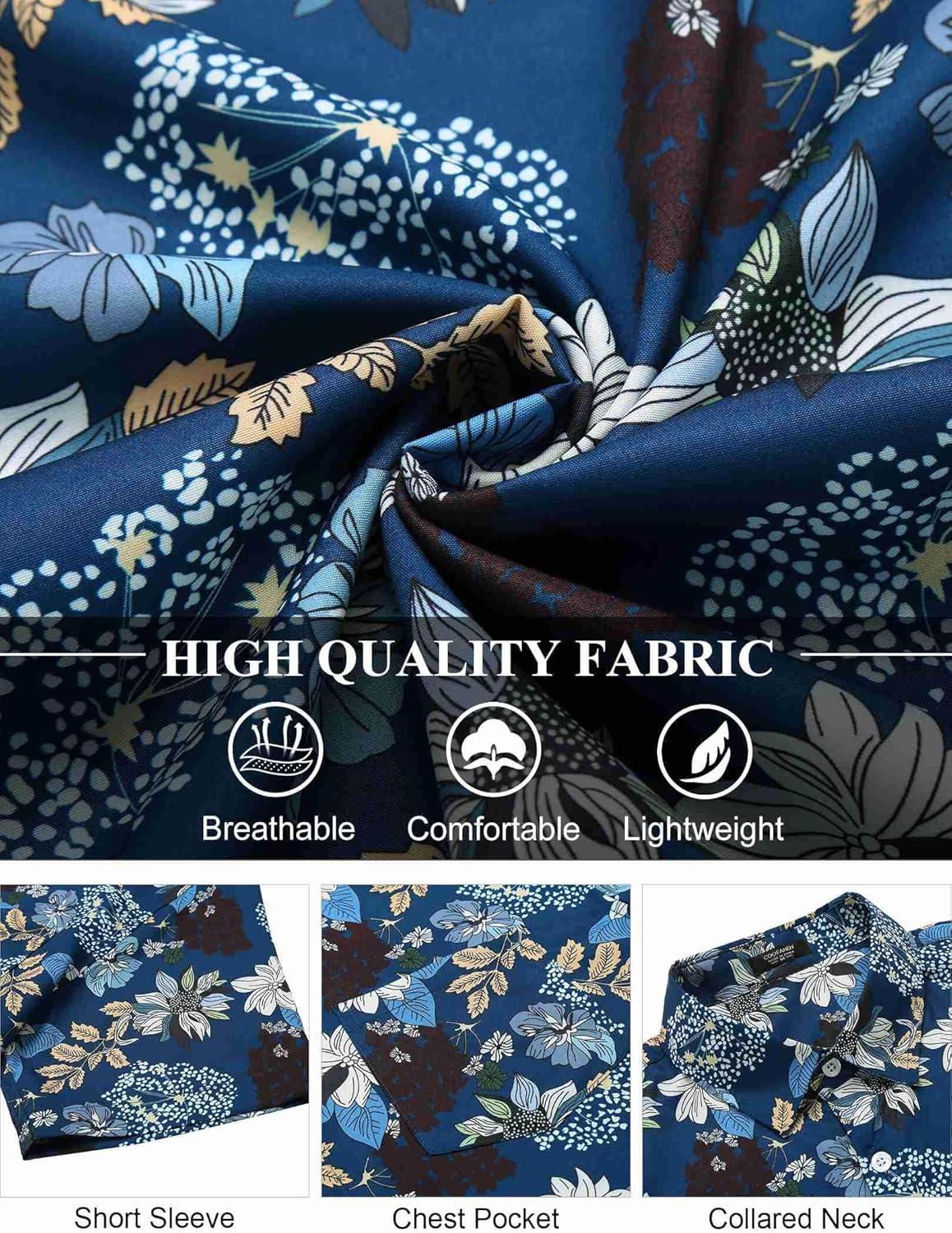 COOFANDY Men’s Hawaiian Shirt Short Sleeve Floral Button Down Shirts Tropical Holiday Beach Shirts(Blue – Flower 2)