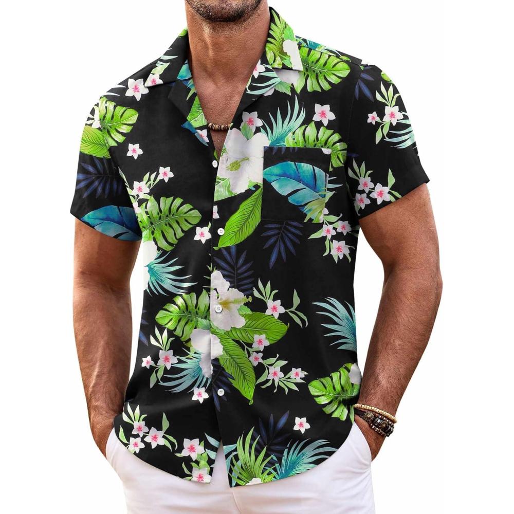 COOFANDY Mens Hawaiian Shirt Short Sleeve Floral Button Down Shirts Tropical Summer Beach Shirts Camp Collar Shirt(Black-hawaiian Floral)