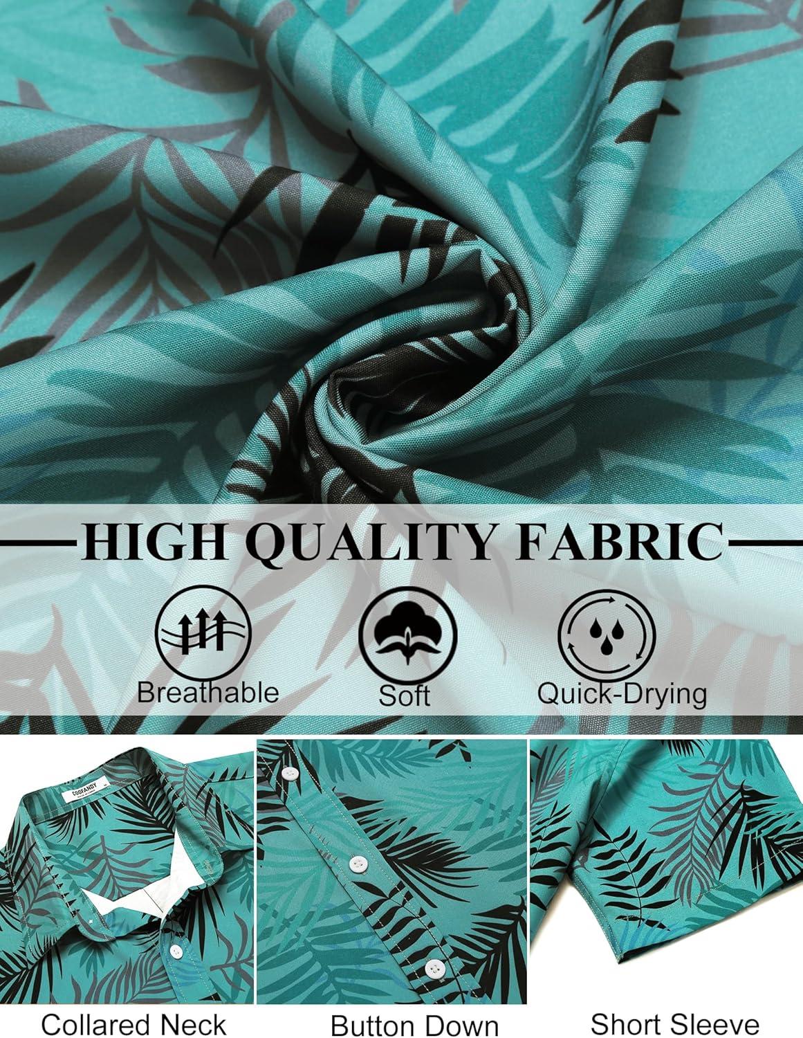 COOFANDY Mens Hawaiian Shirts Short Sleeve Button Down Aloha Shirt Casual Beach Clothes(Green)