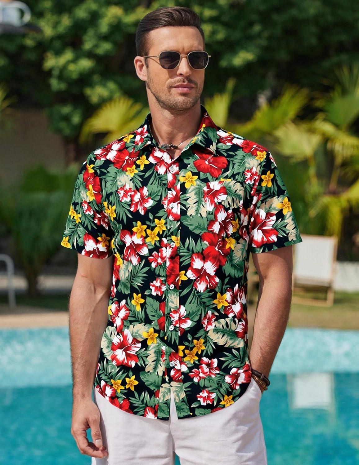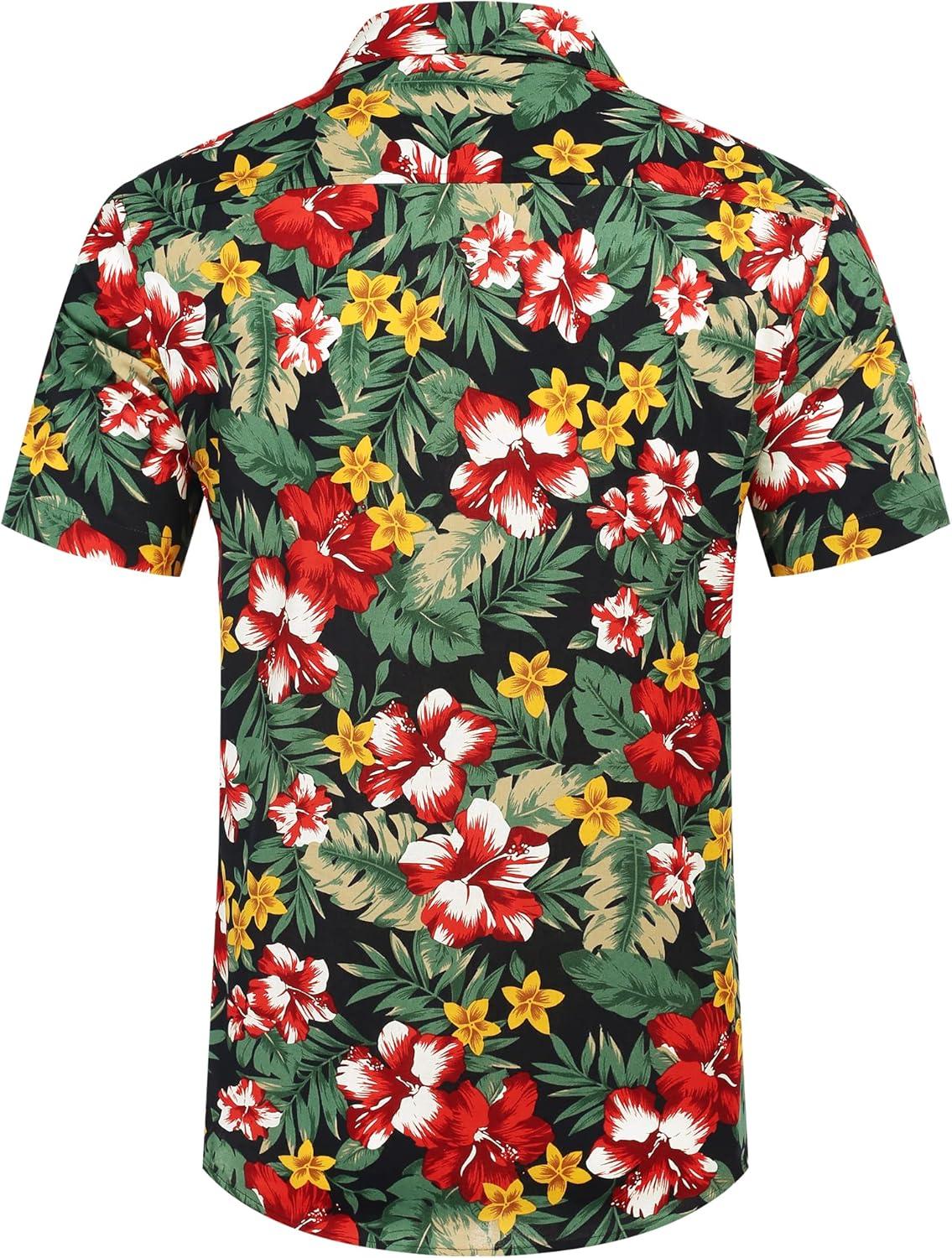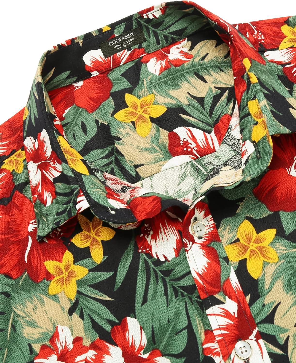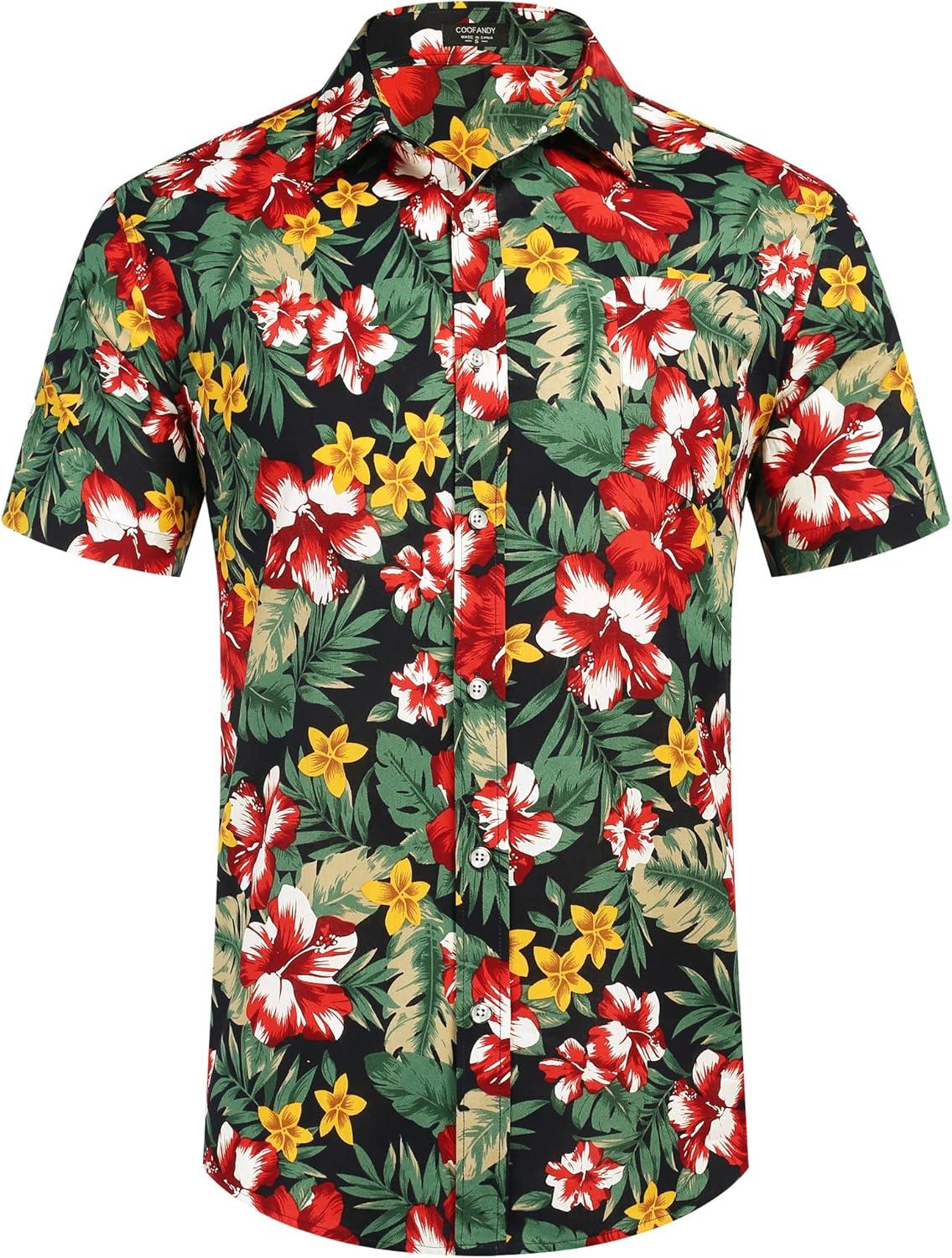 COOFANDY Mens Hawaiian Shirts Short Sleeve Casual Button Down Tropical Beach Shirt(Black / Red Floral)