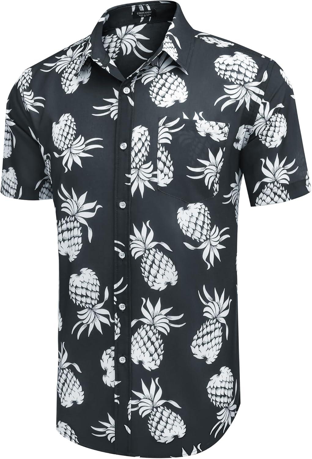 COOFANDY Mens Hawaiian Shirts Short Sleeve Casual Button Down Tropical Beach Shirt(Black / White Pineapple)