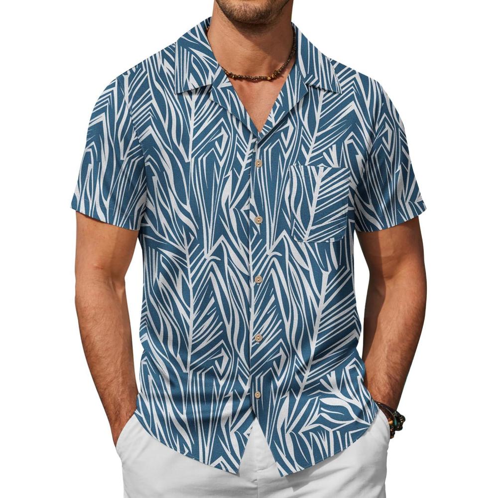 COOFANDY Mens Hawaiian Shirts Short Sleeve Casual Button Down Tropical Beach Shirt(Blue Leaves)