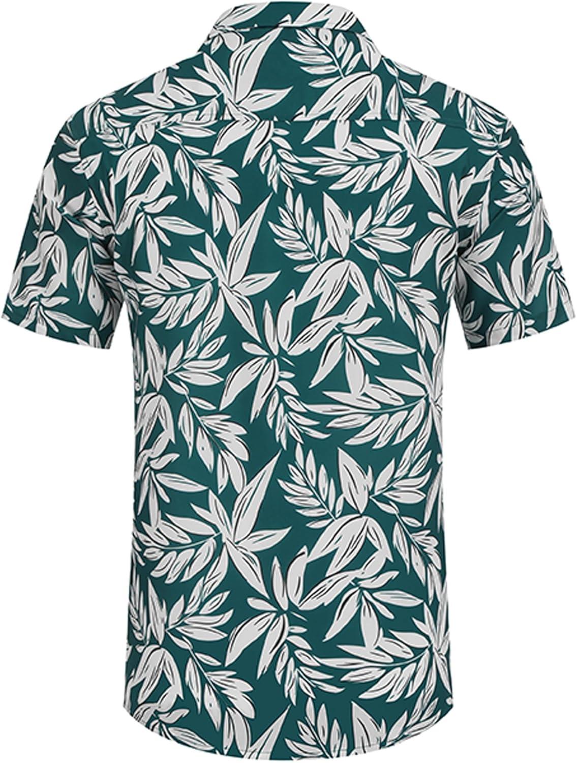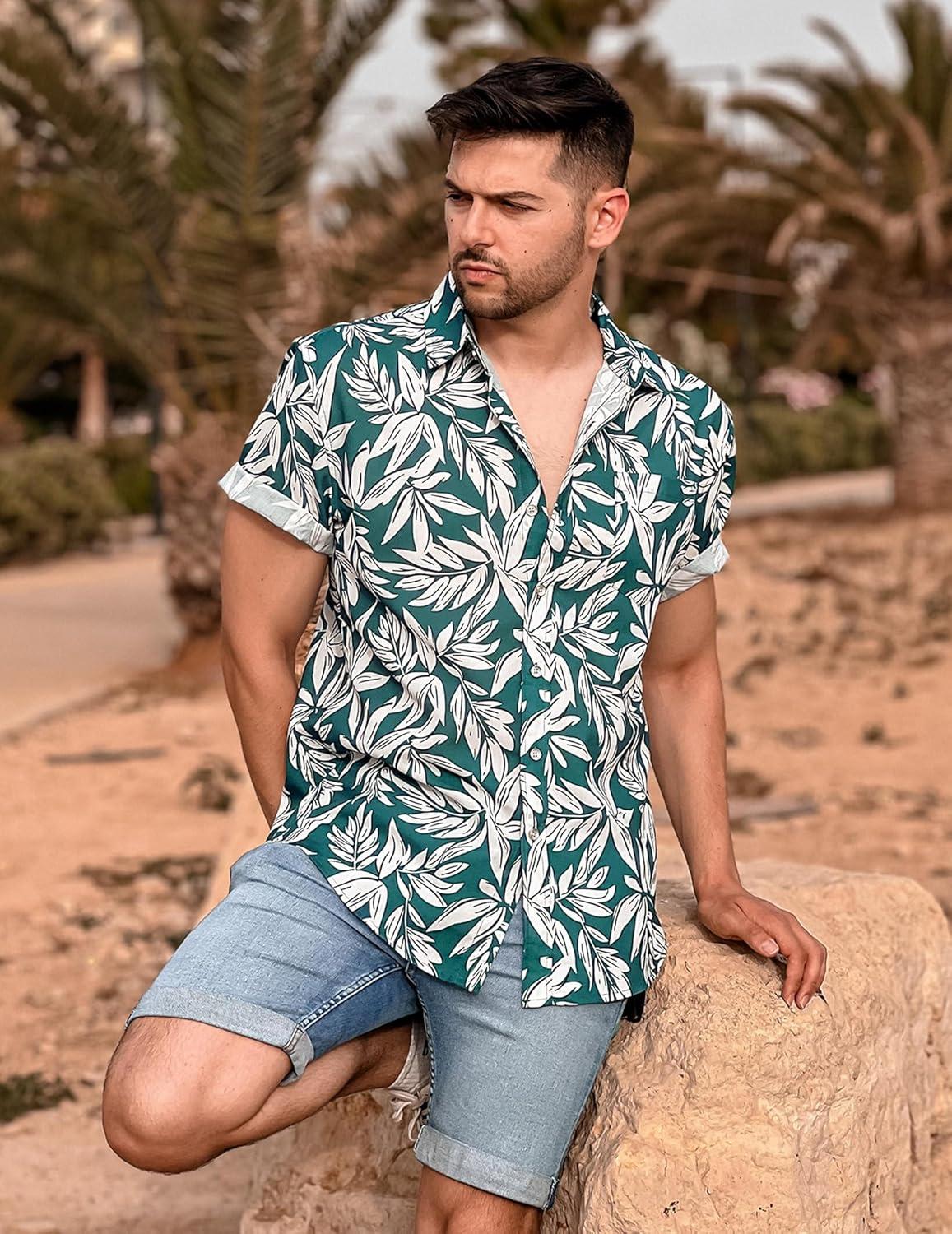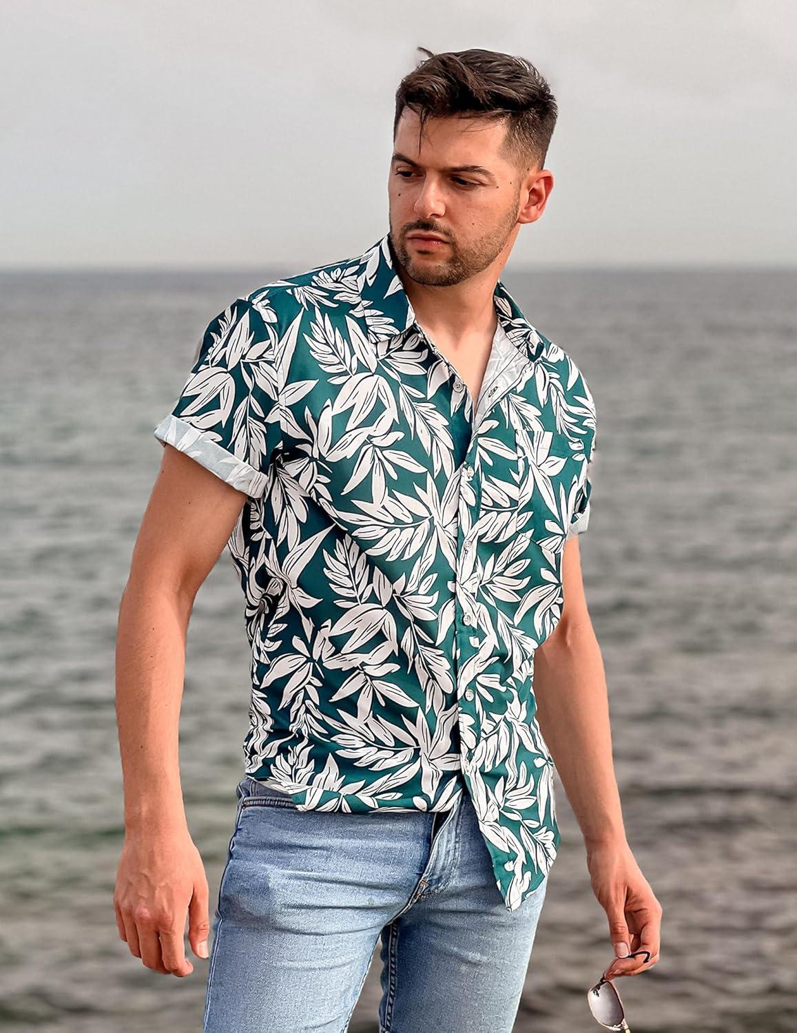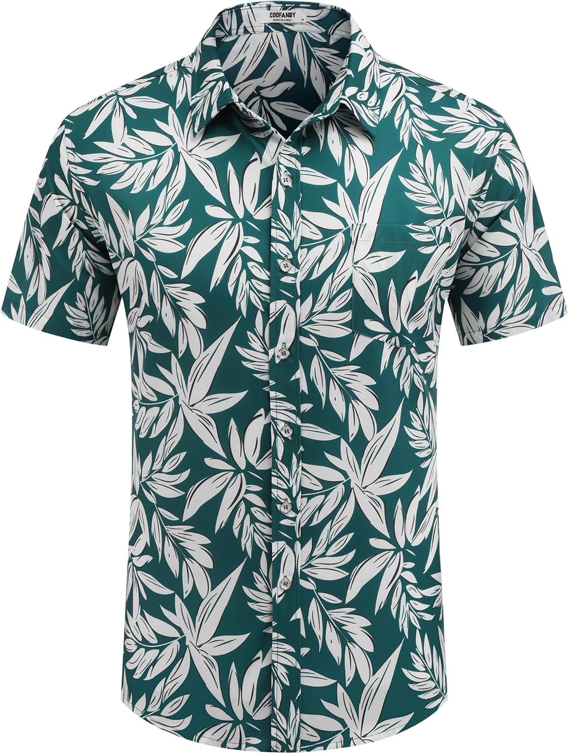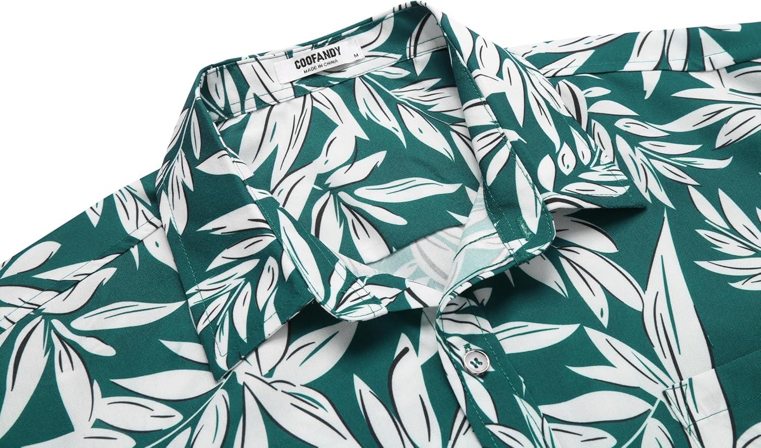 COOFANDY Mens Hawaiian Shirts Short Sleeve Casual Button Down Tropical Beach Shirt(Green / White Leaf)