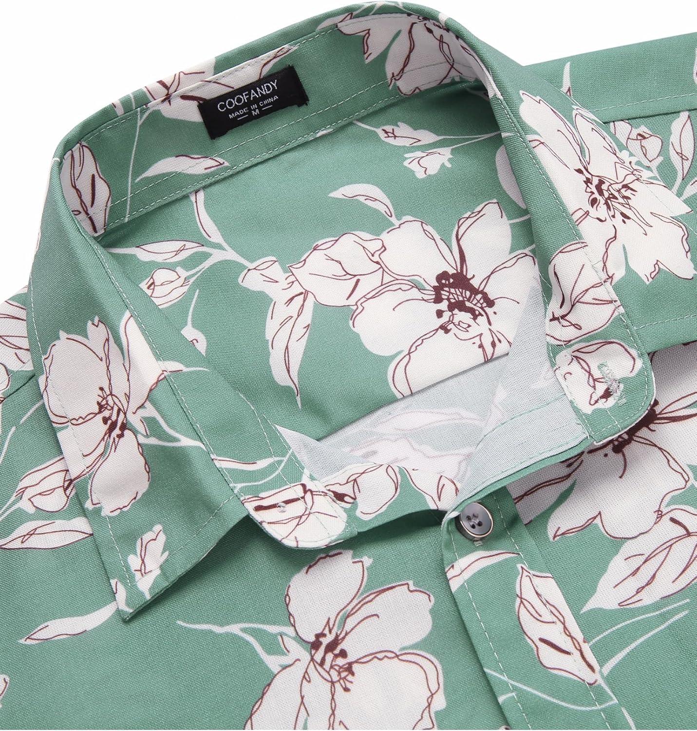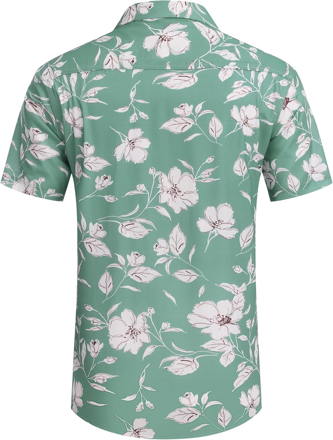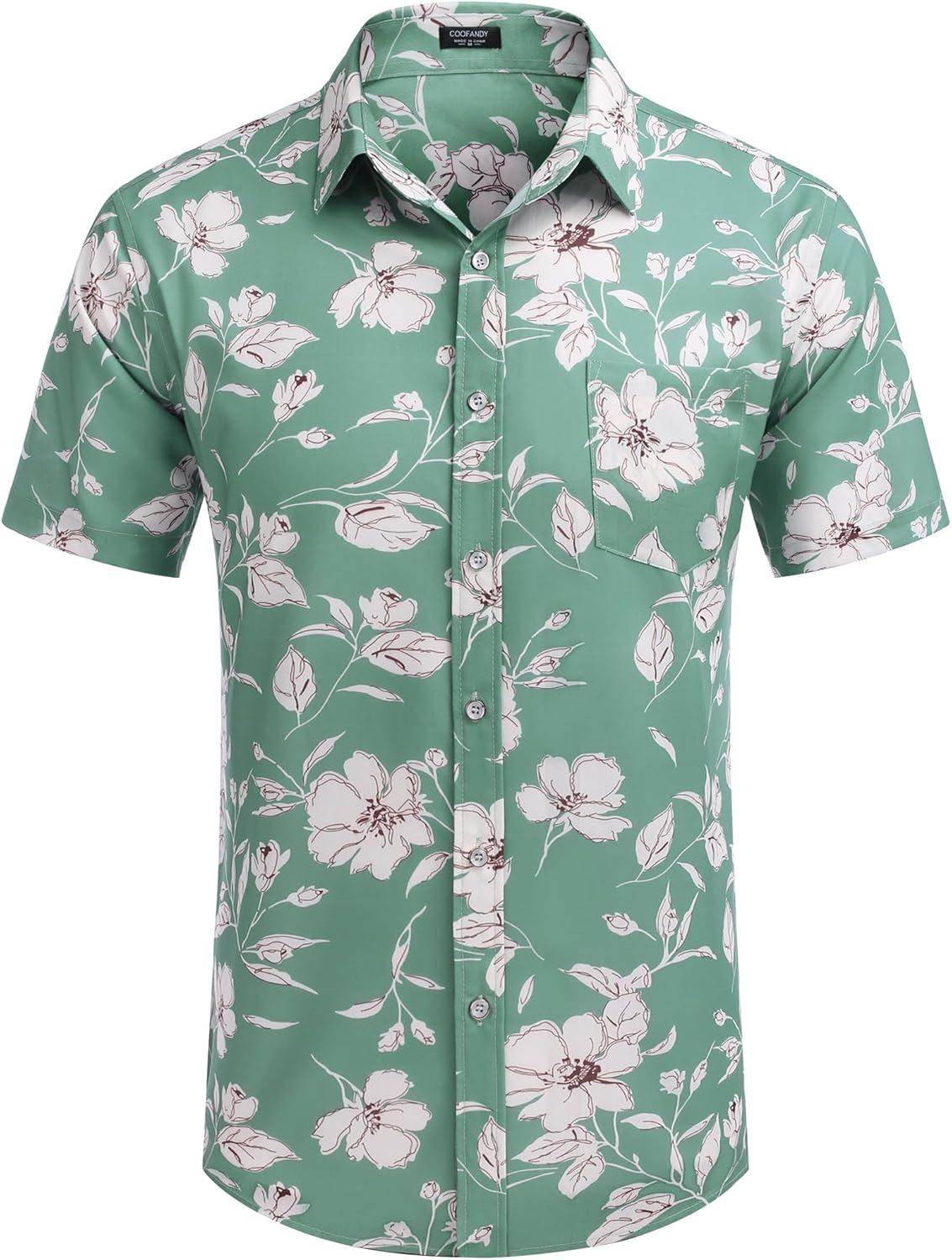 COOFANDY Mens Hawaiian Shirts Short Sleeve Casual Button Down Tropical Beach Shirt(Light Green / White Floral)