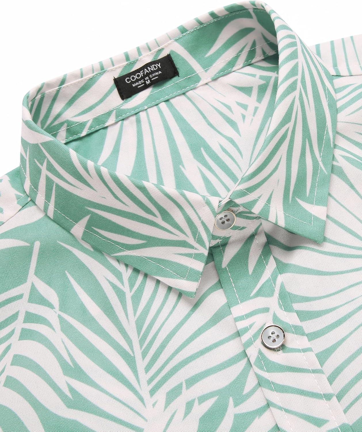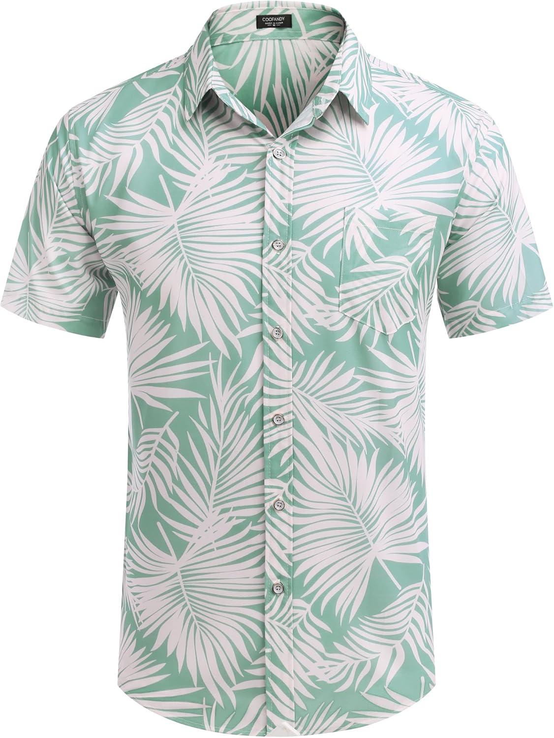 COOFANDY Mens Hawaiian Shirts Short Sleeve Casual Button Down Tropical Beach Shirt(Light Green / White Leaf)