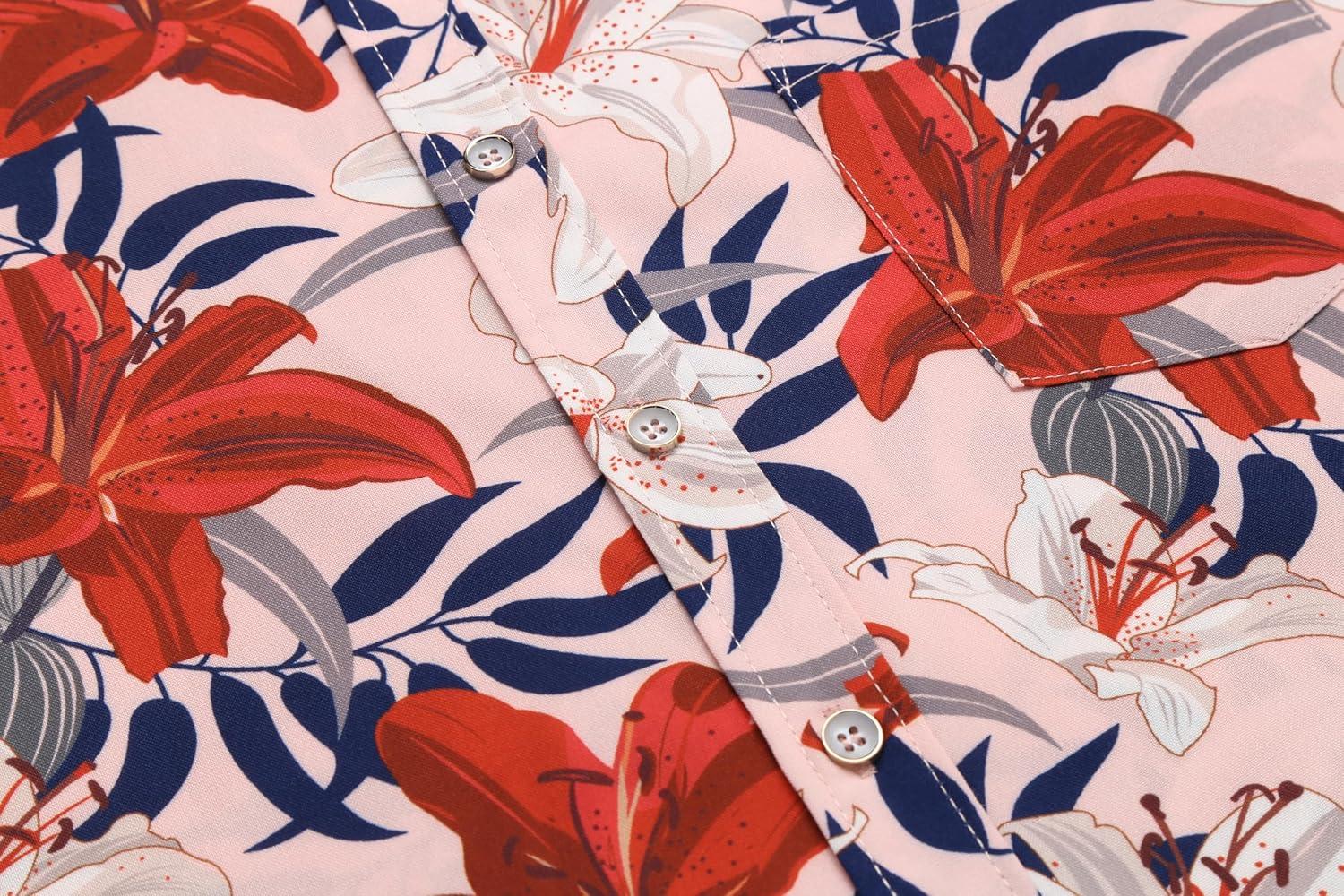 COOFANDY Mens Hawaiian Shirts Short Sleeve Casual Button Down Tropical Beach Shirt(Pink / Red Floral)