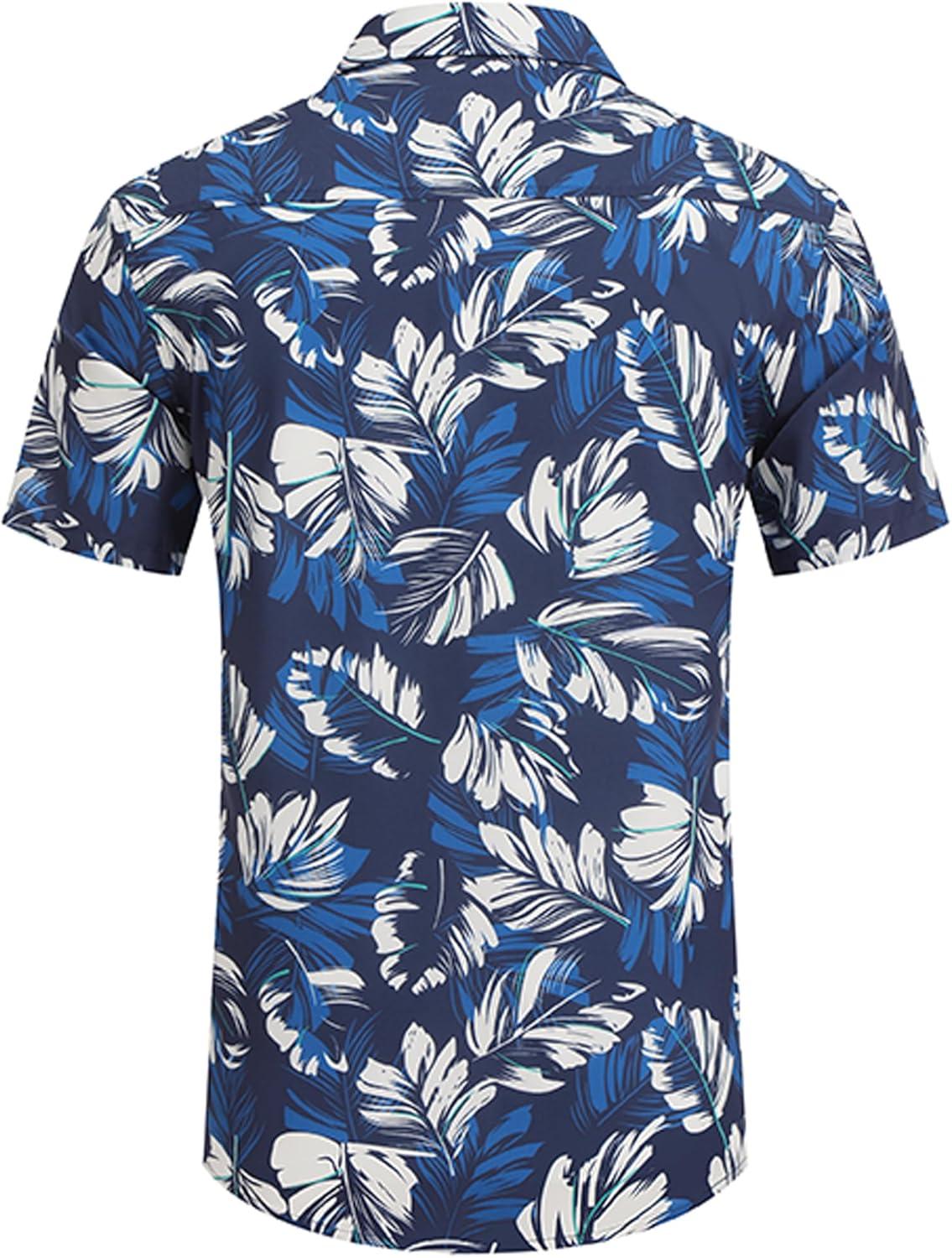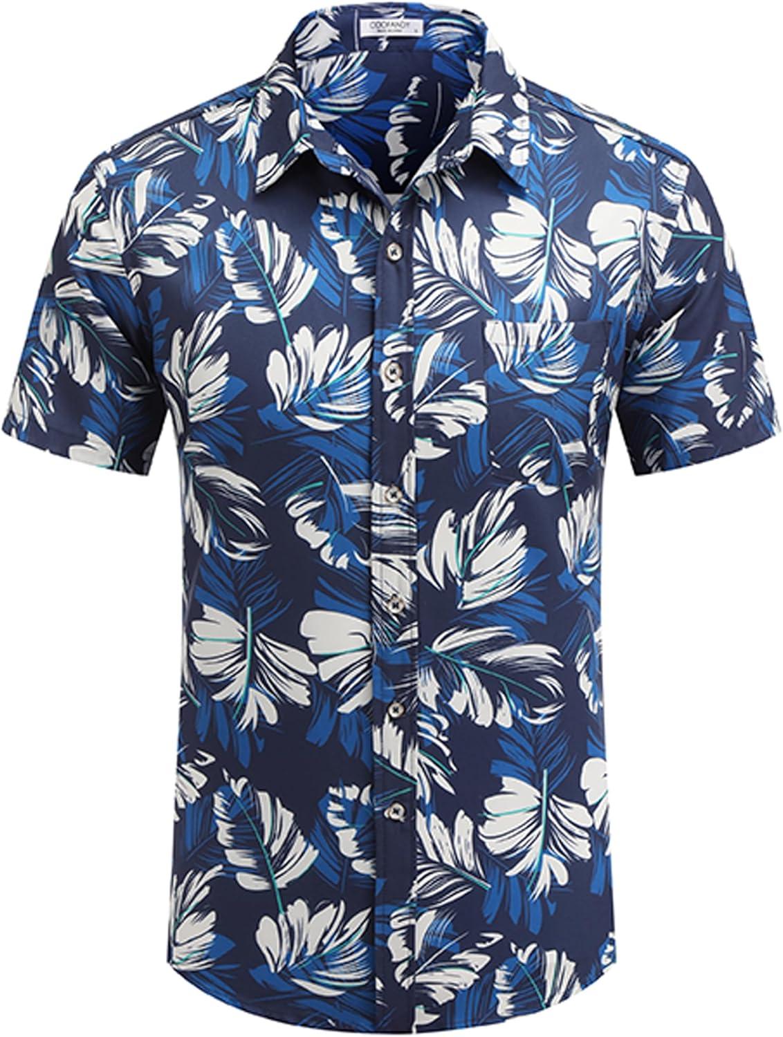 COOFANDY Mens Hawaiian Shirts Short Sleeve Casual Button Down Tropical Beach Shirt(Royal Blue / White Leaf)