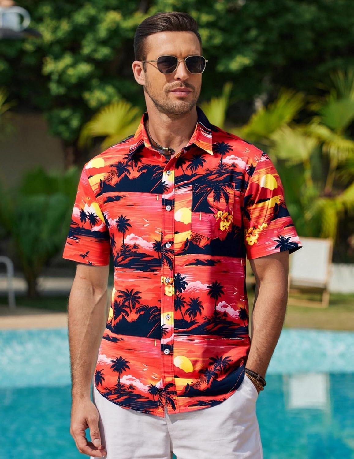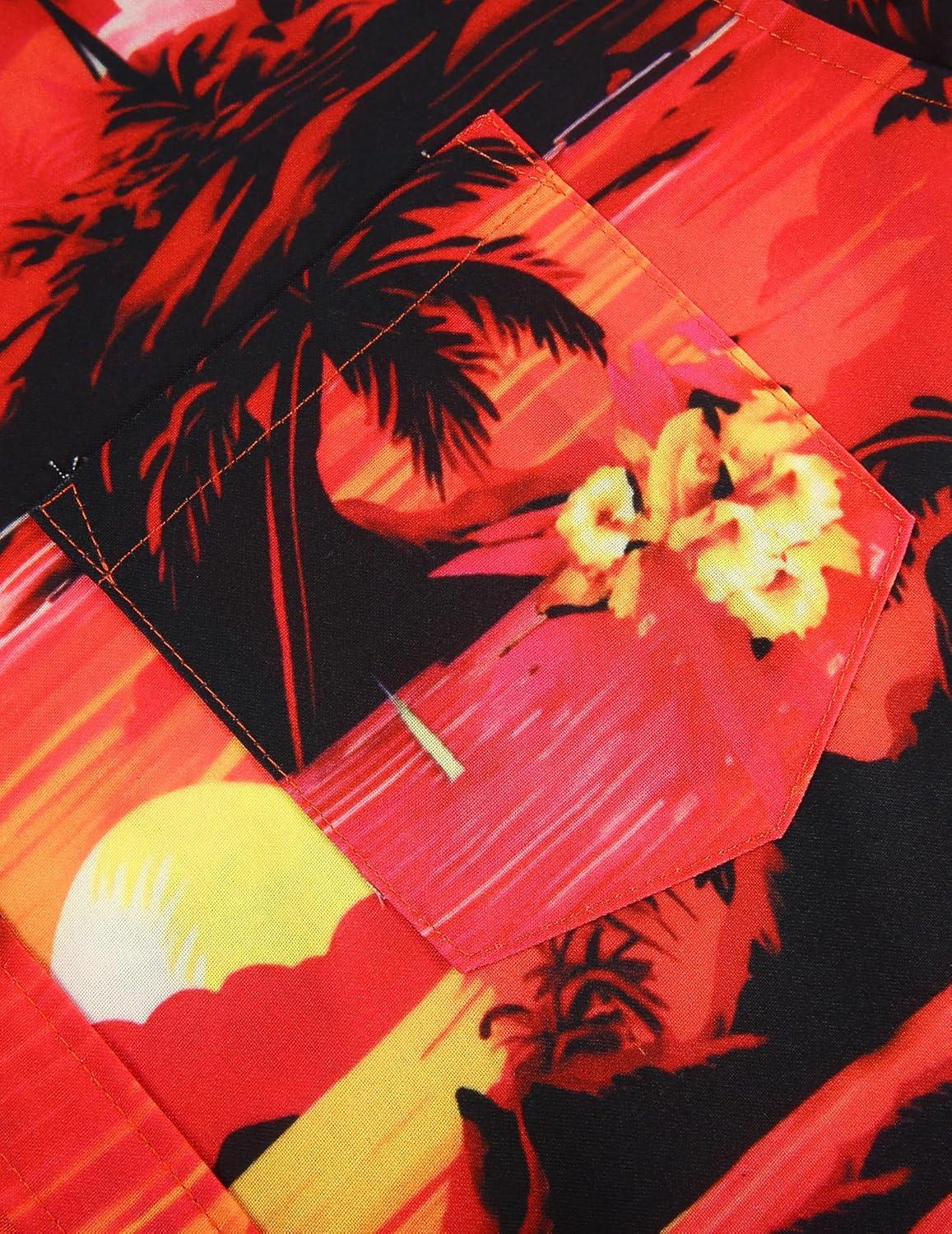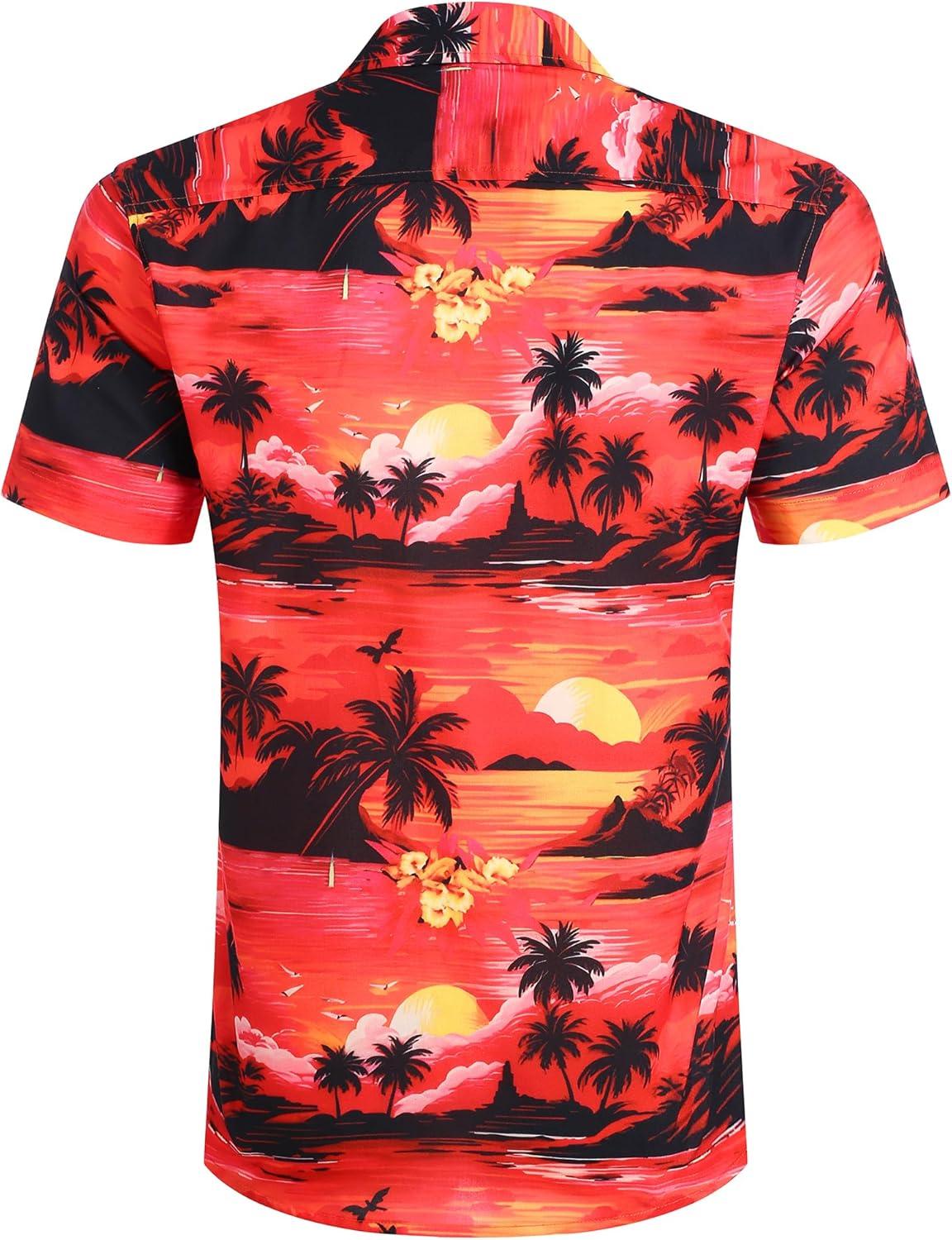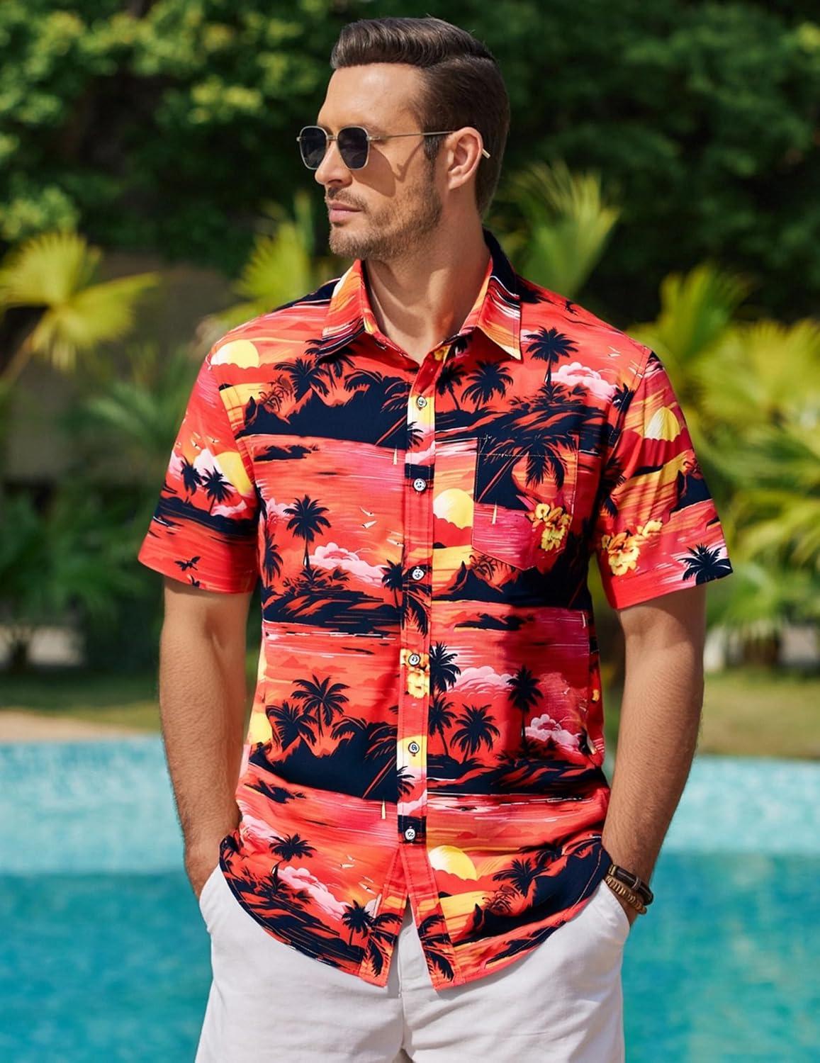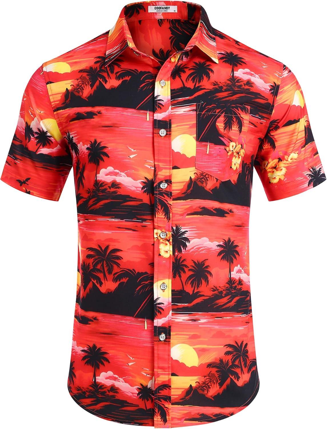 COOFANDY Mens Hawaiian Shirts Short Sleeve Casual Button Down Tropical Beach Shirt(Sunset Red)