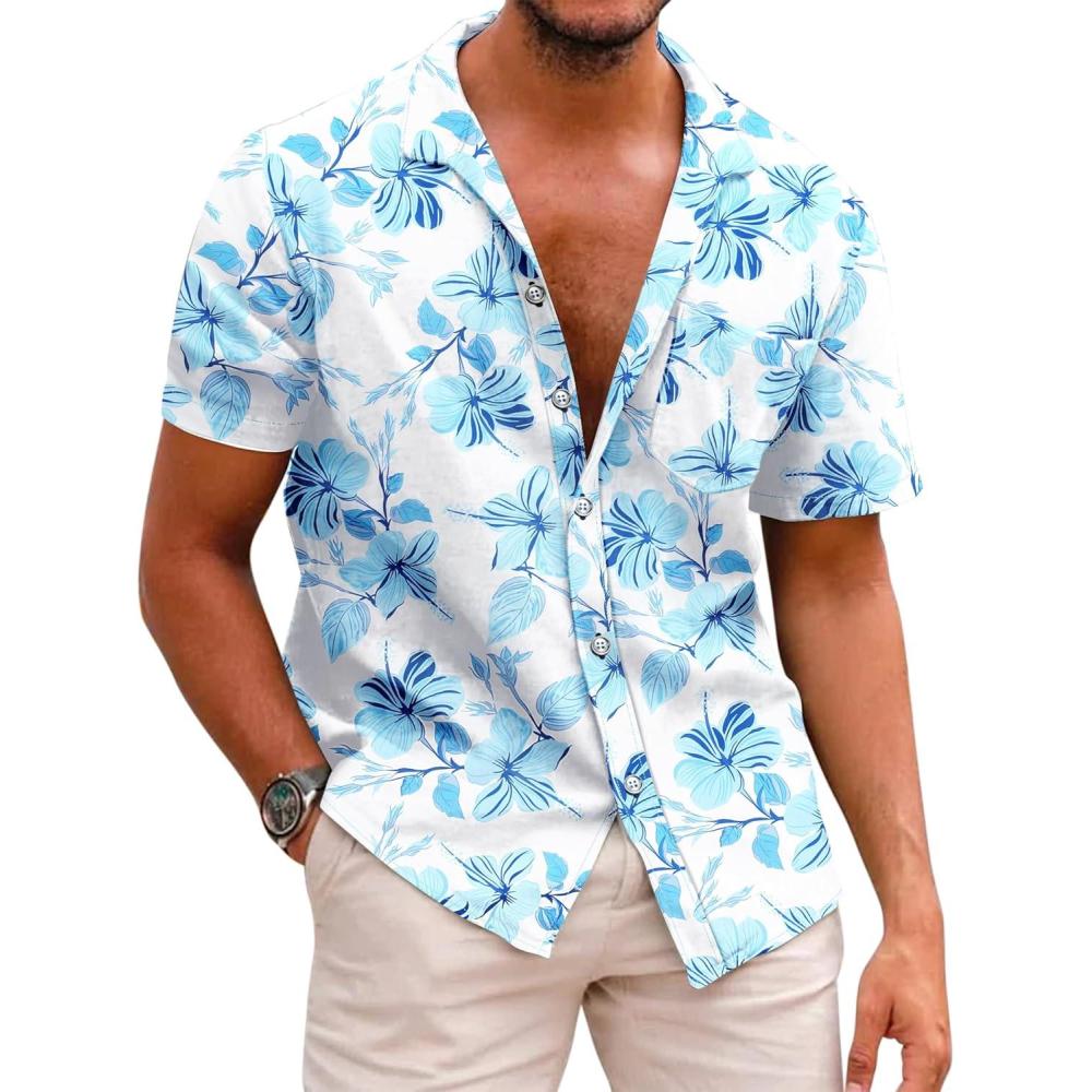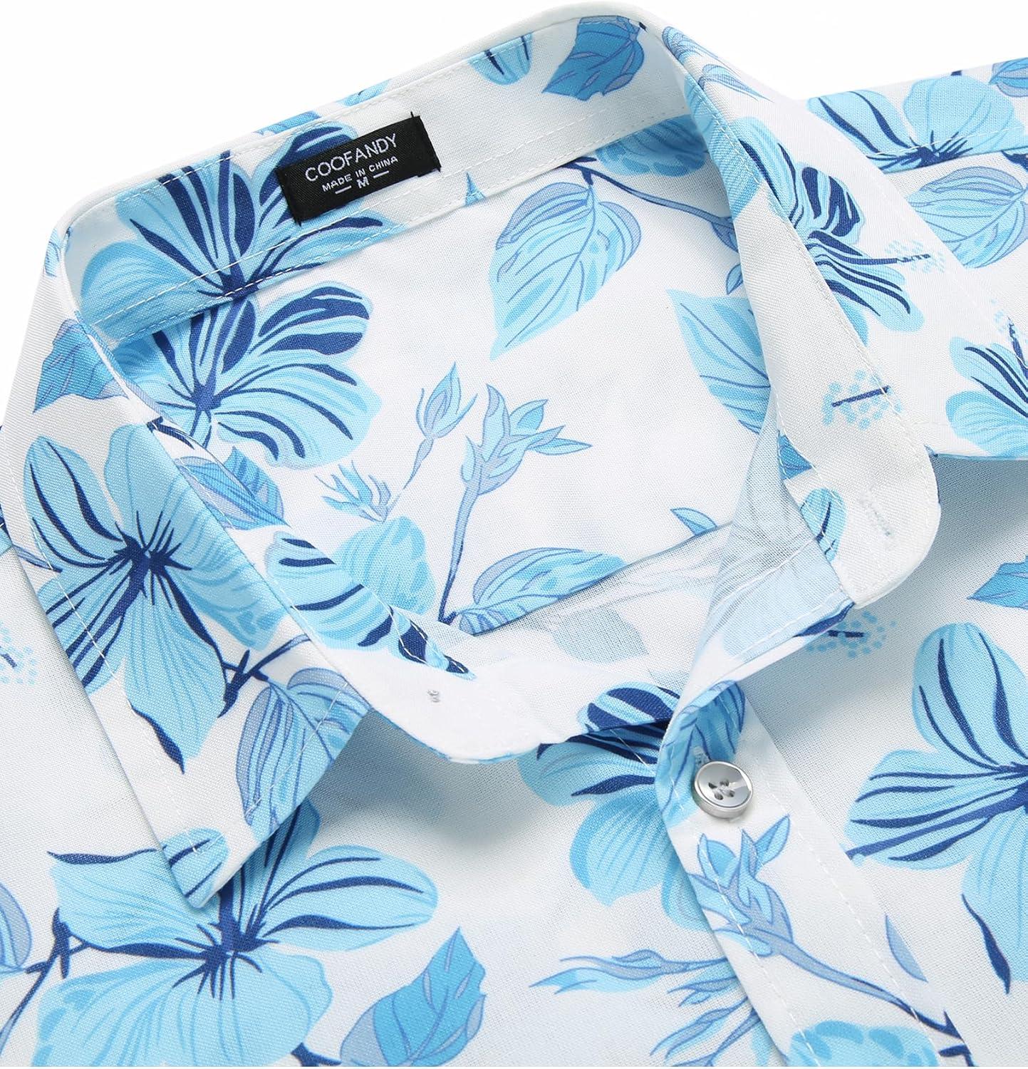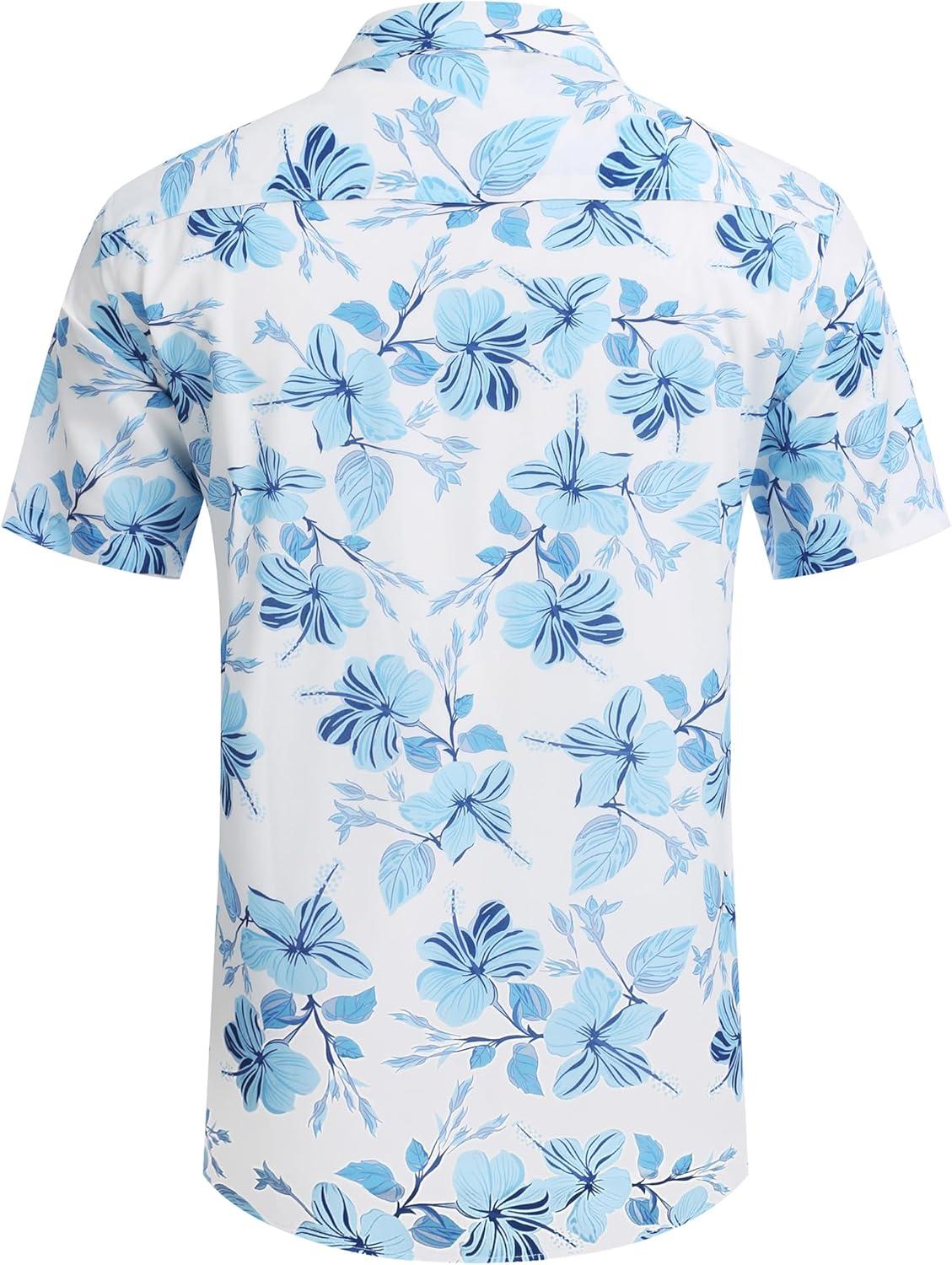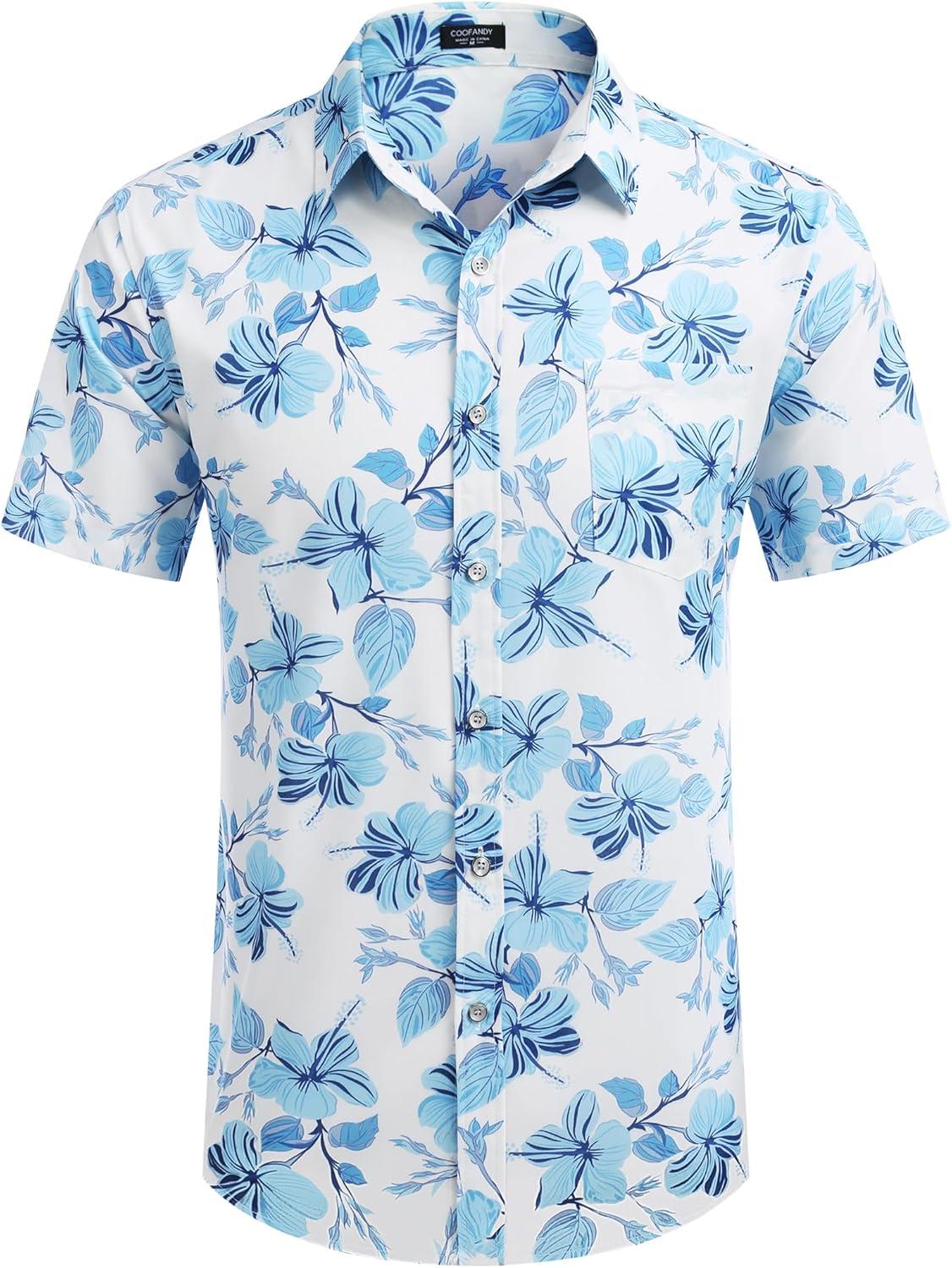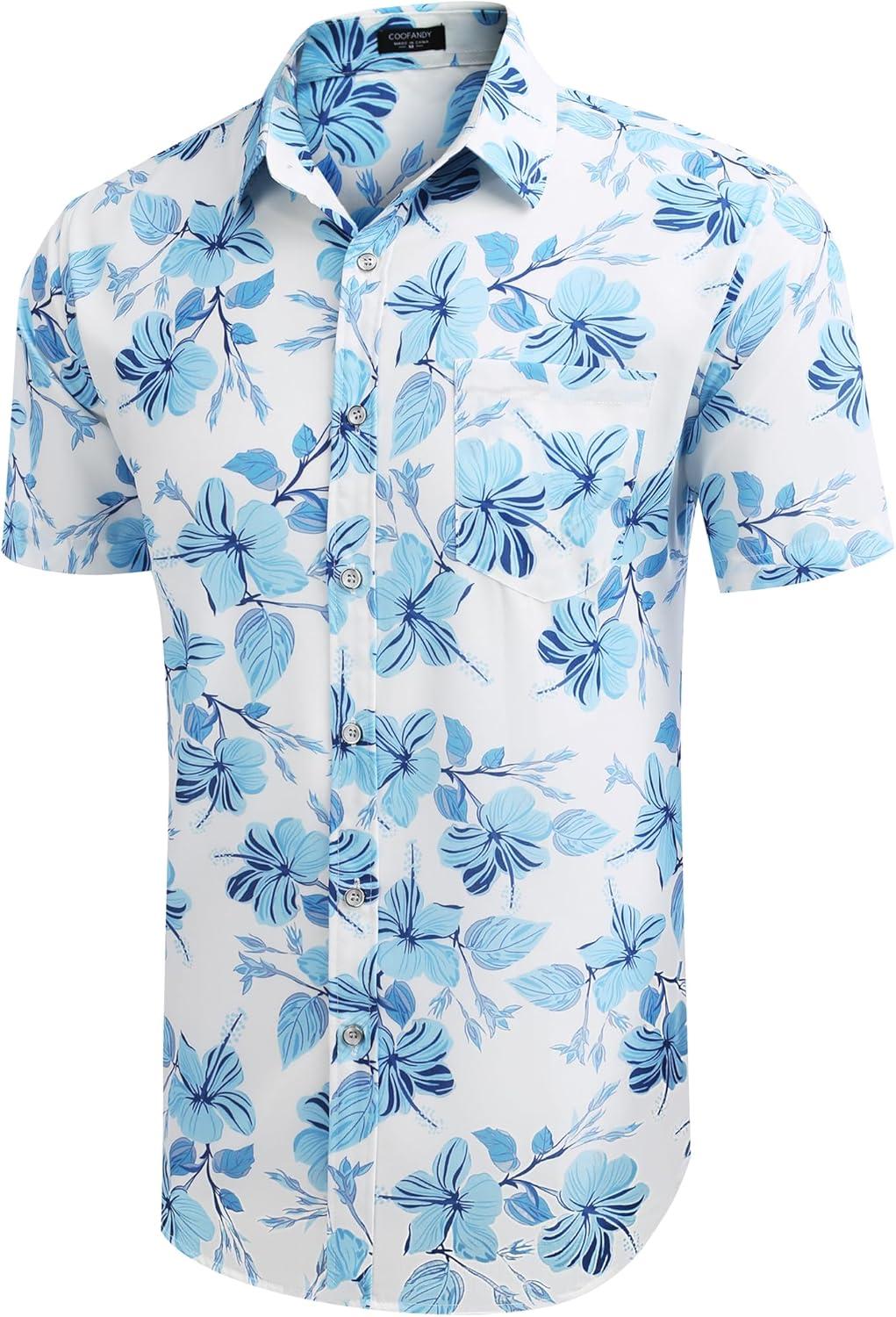 COOFANDY Mens Hawaiian Shirts Short Sleeve Casual Button Down Tropical Beach Shirt(White / Light Blue Floral)