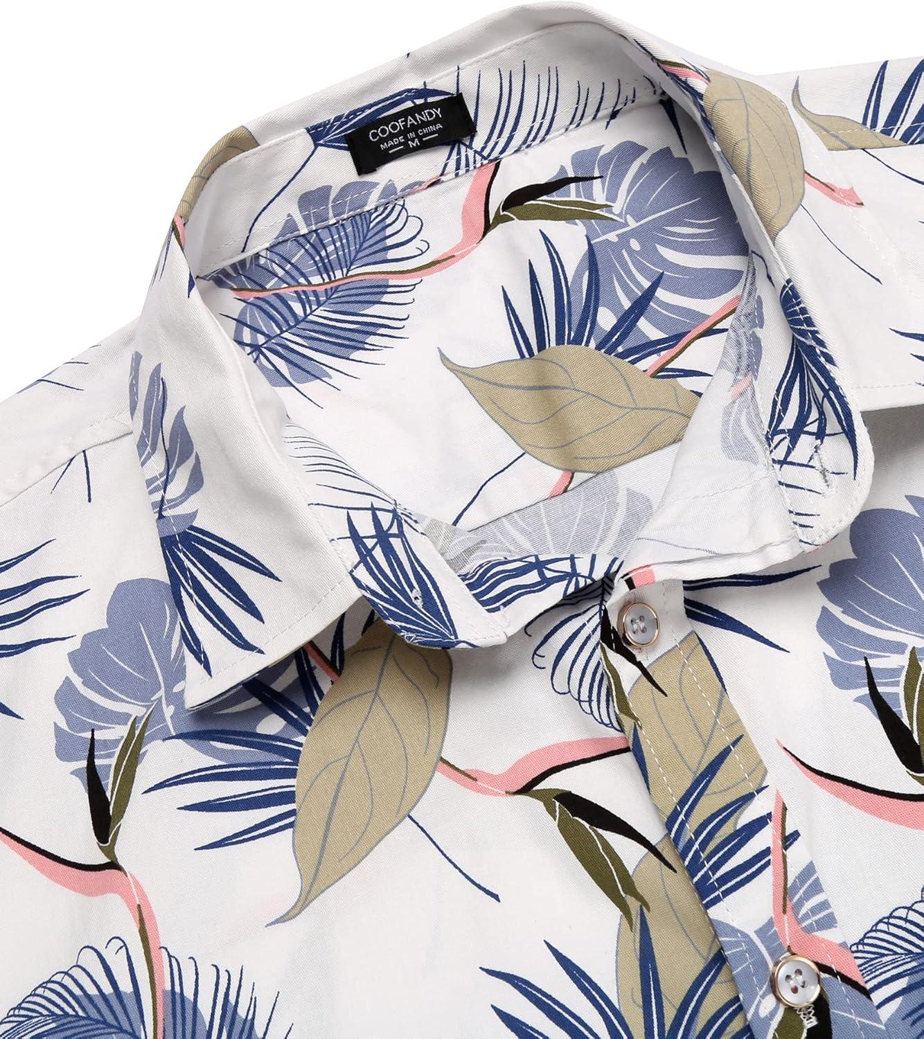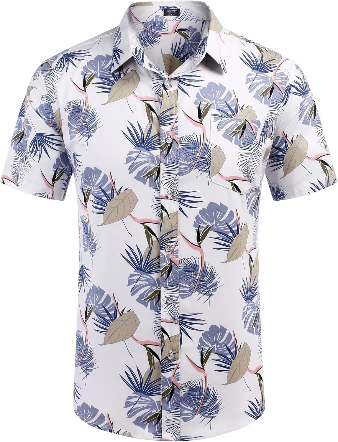 COOFANDY Mens Hawaiian Shirts Short Sleeve Casual Button Down Tropical Beach Shirt(White / Purple Leaf)
