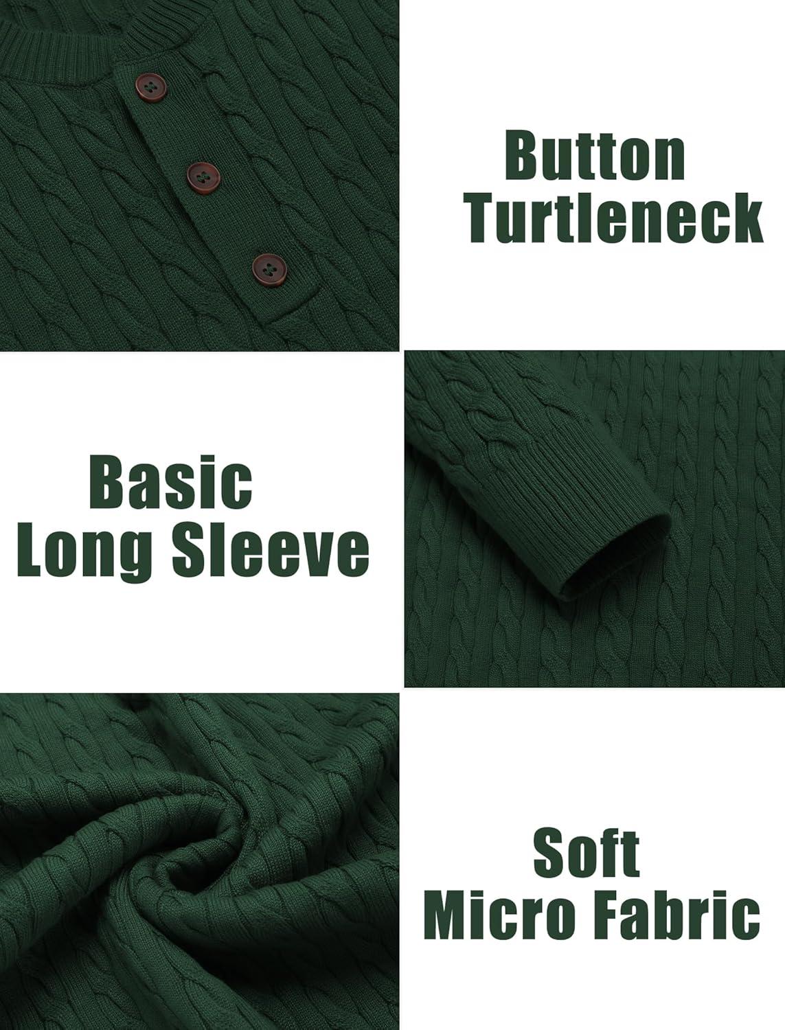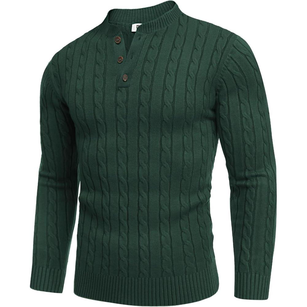 COOFANDY Men’s Henley Knit Sweater Long Sleeve Mid-Weight Soft Pullover Shirt with Chest Pocket(Lake Green)