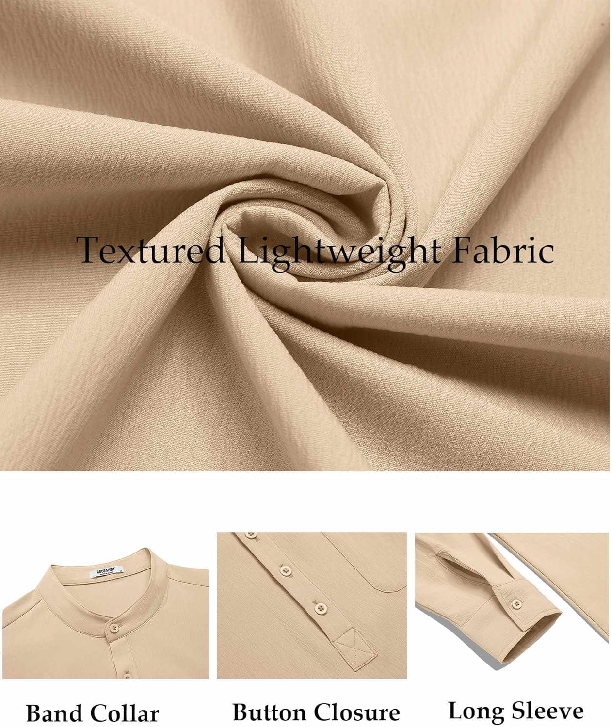 COOFANDY Men’s Henley Shirt Long Sleeve Lightweight Casual T-Shirt Summer Beach Hippie Tee Shirt(Khaki)