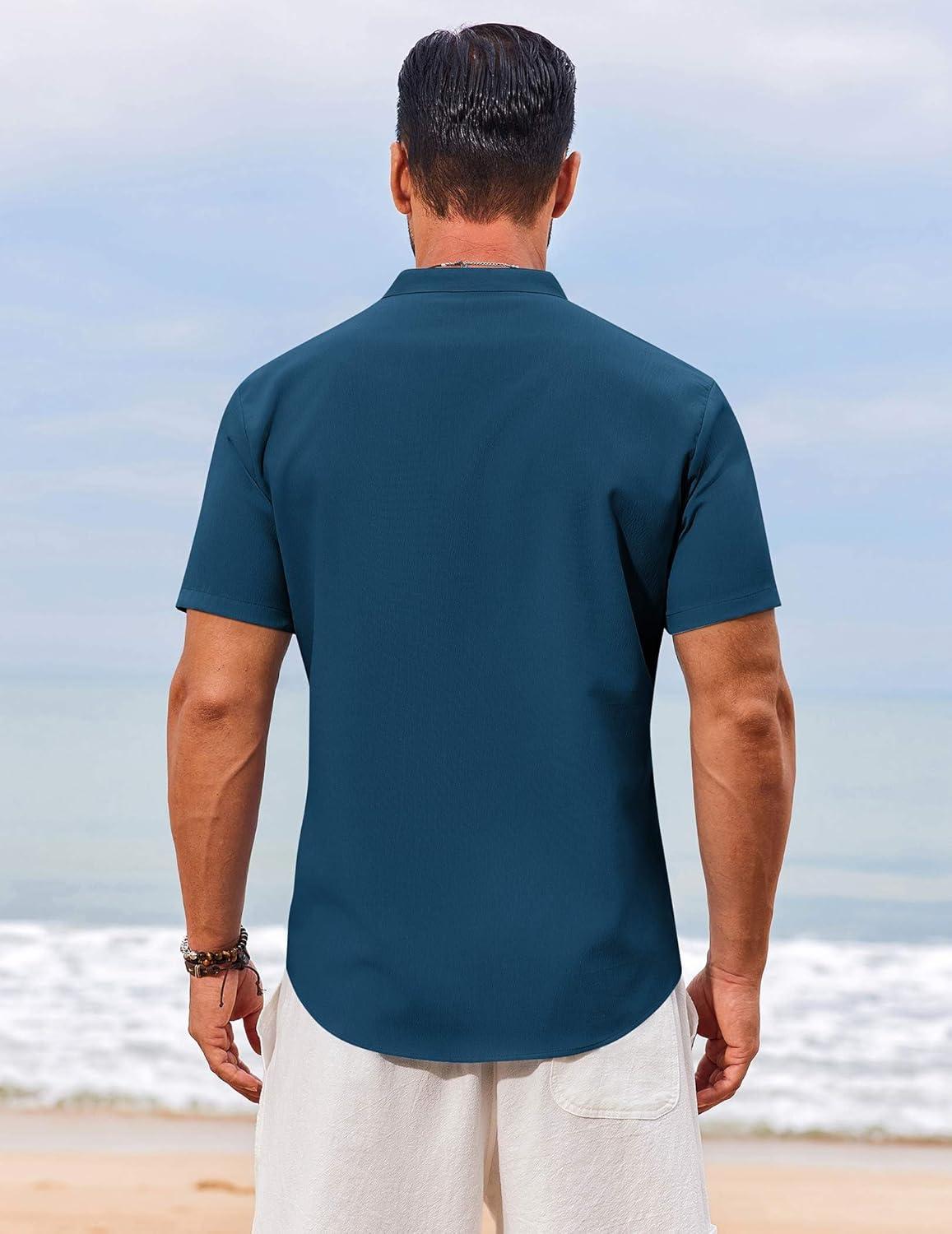 COOFANDY Men’s Henley Shirt Short Sleeve Casual T-Shirt Summer Beach Hippie Henley Tee Shirt(Deep Blue)