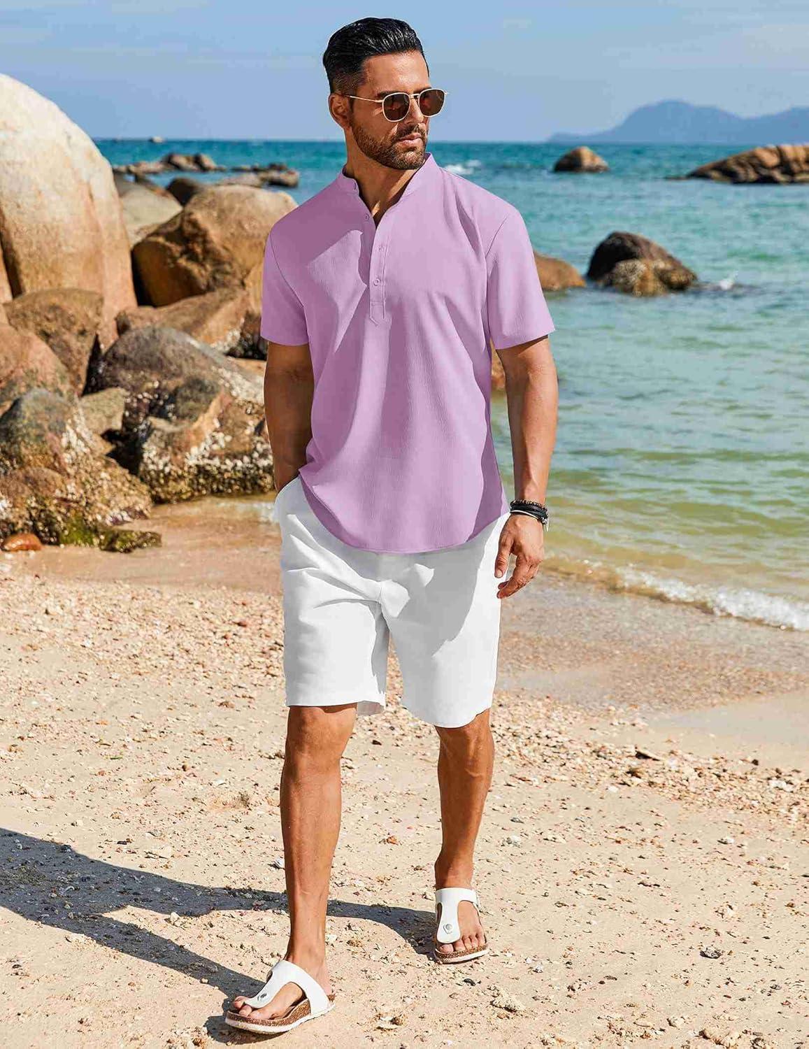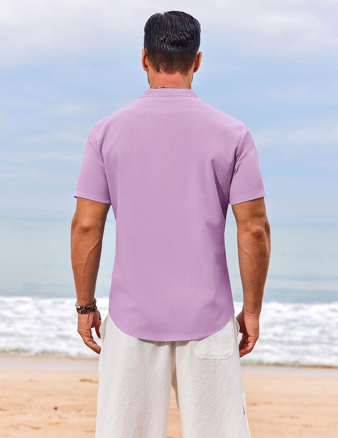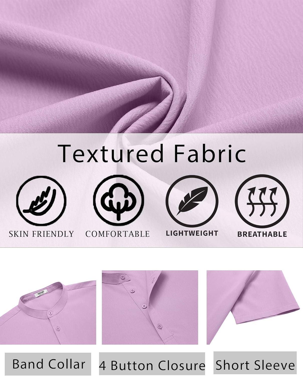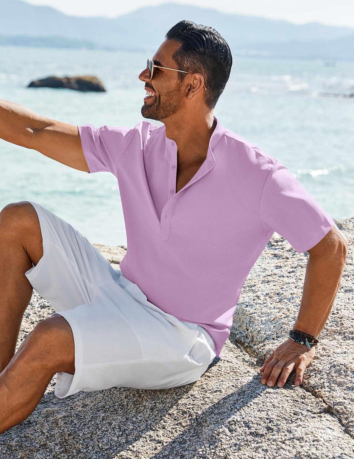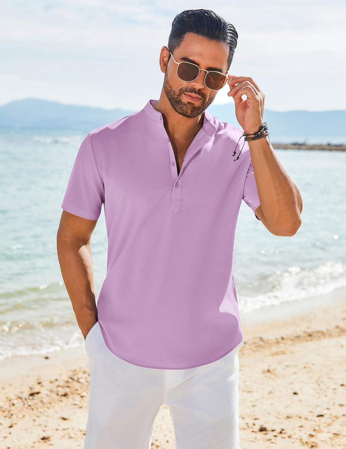 COOFANDY Men’s Henley Shirt Short Sleeve Casual T-Shirt Summer Beach Hippie Henley Tee Shirt(Lavender)