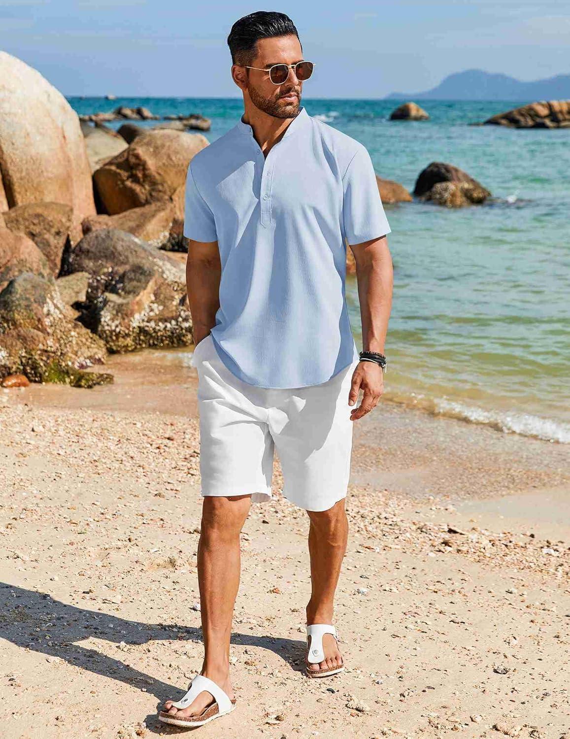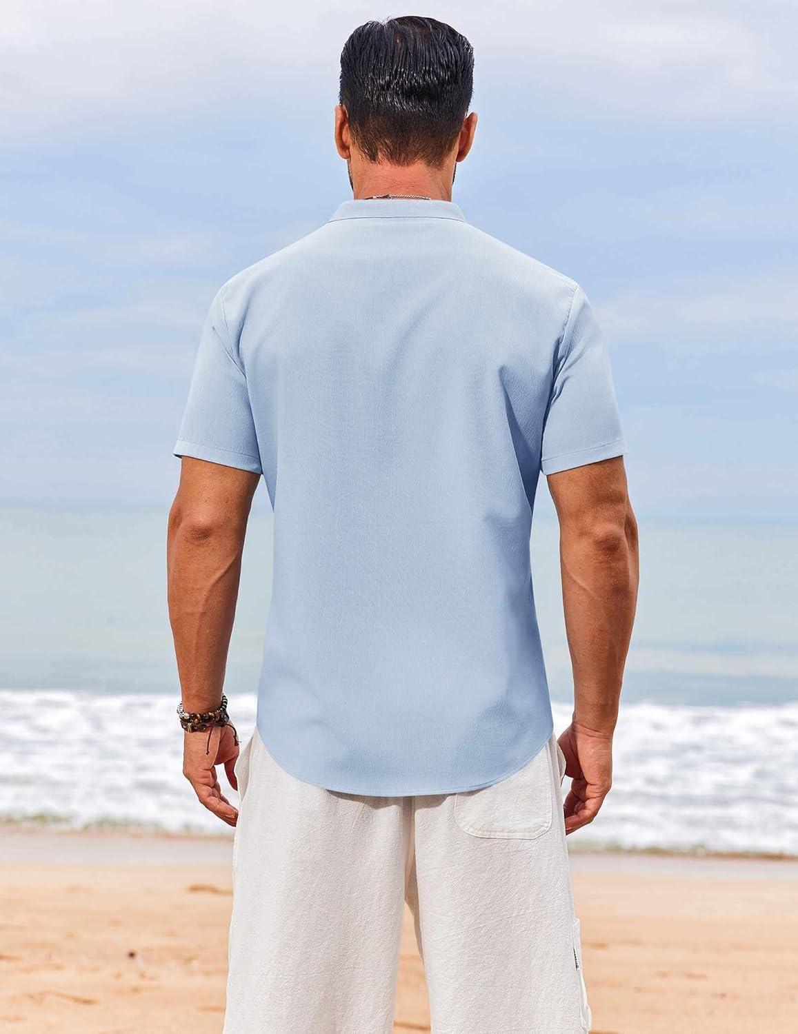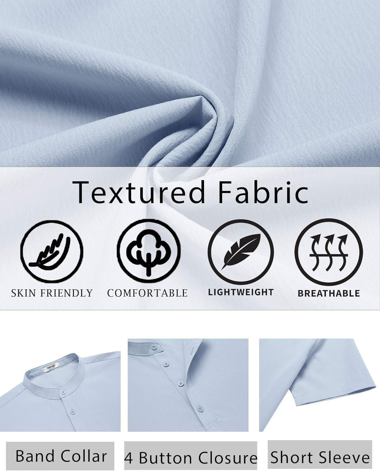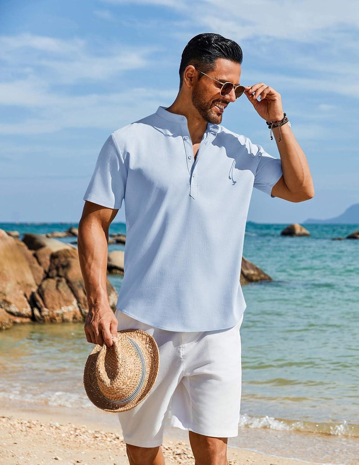 COOFANDY Men’s Henley Shirt Short Sleeve Casual T-Shirt Summer Beach Hippie Henley Tee Shirt(Light Blue)