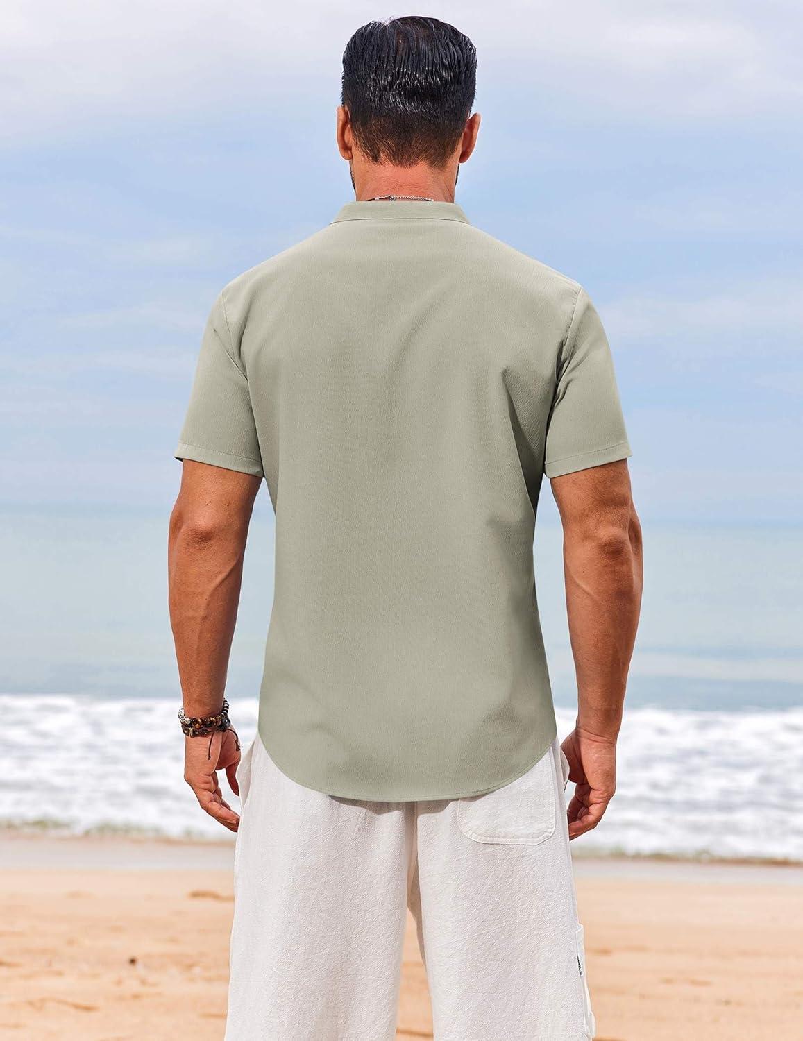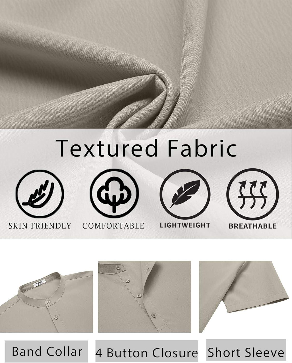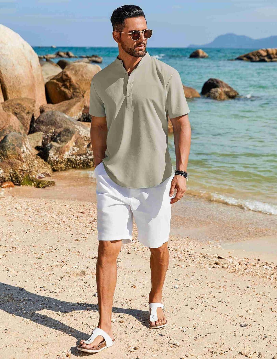 COOFANDY Men’s Henley Shirt Short Sleeve Casual T-Shirt Summer Beach Hippie Henley Tee Shirt(Light Grey)