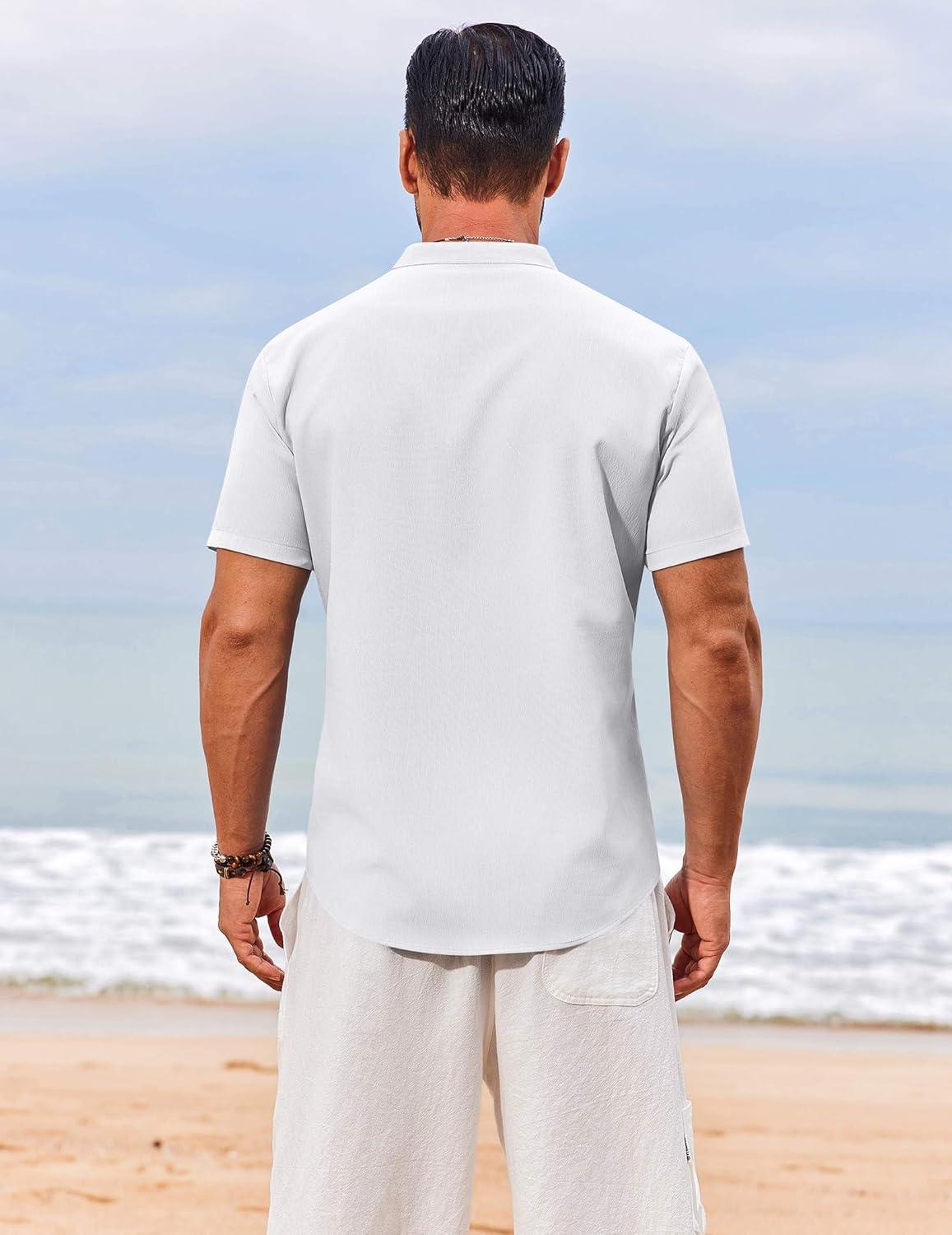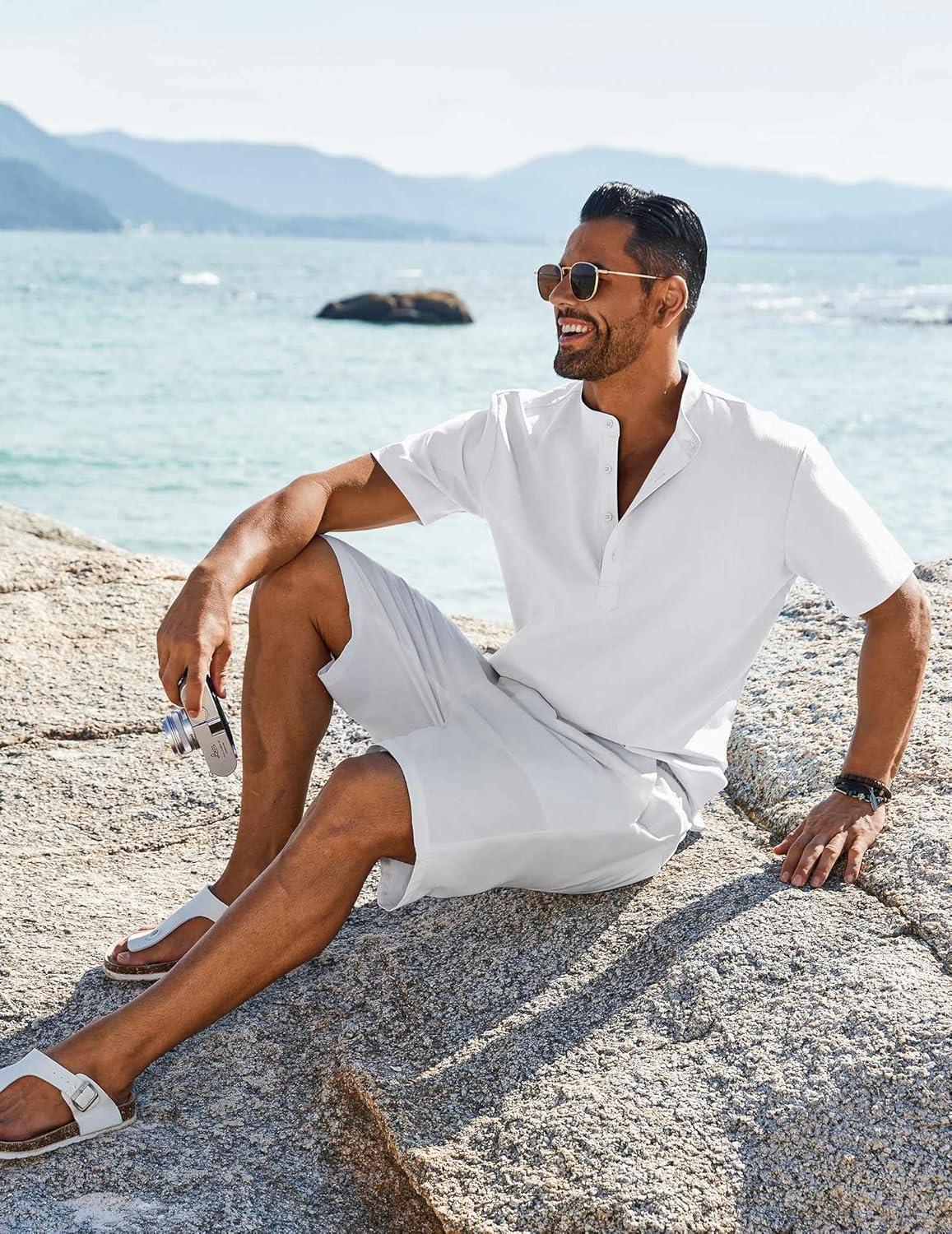 COOFANDY Men’s Henley Shirt Short Sleeve Casual T-Shirt Summer Beach Hippie Henley Tee Shirt(White)