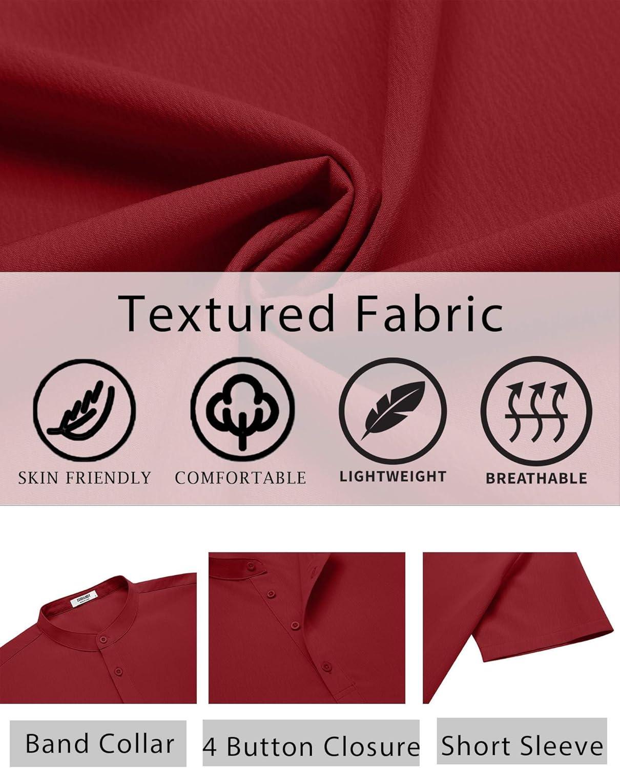 COOFANDY Men’s Henley Shirt Short Sleeve Casual T-Shirt Summer Beach Hippie Henley Tee Shirt(Wine Red)