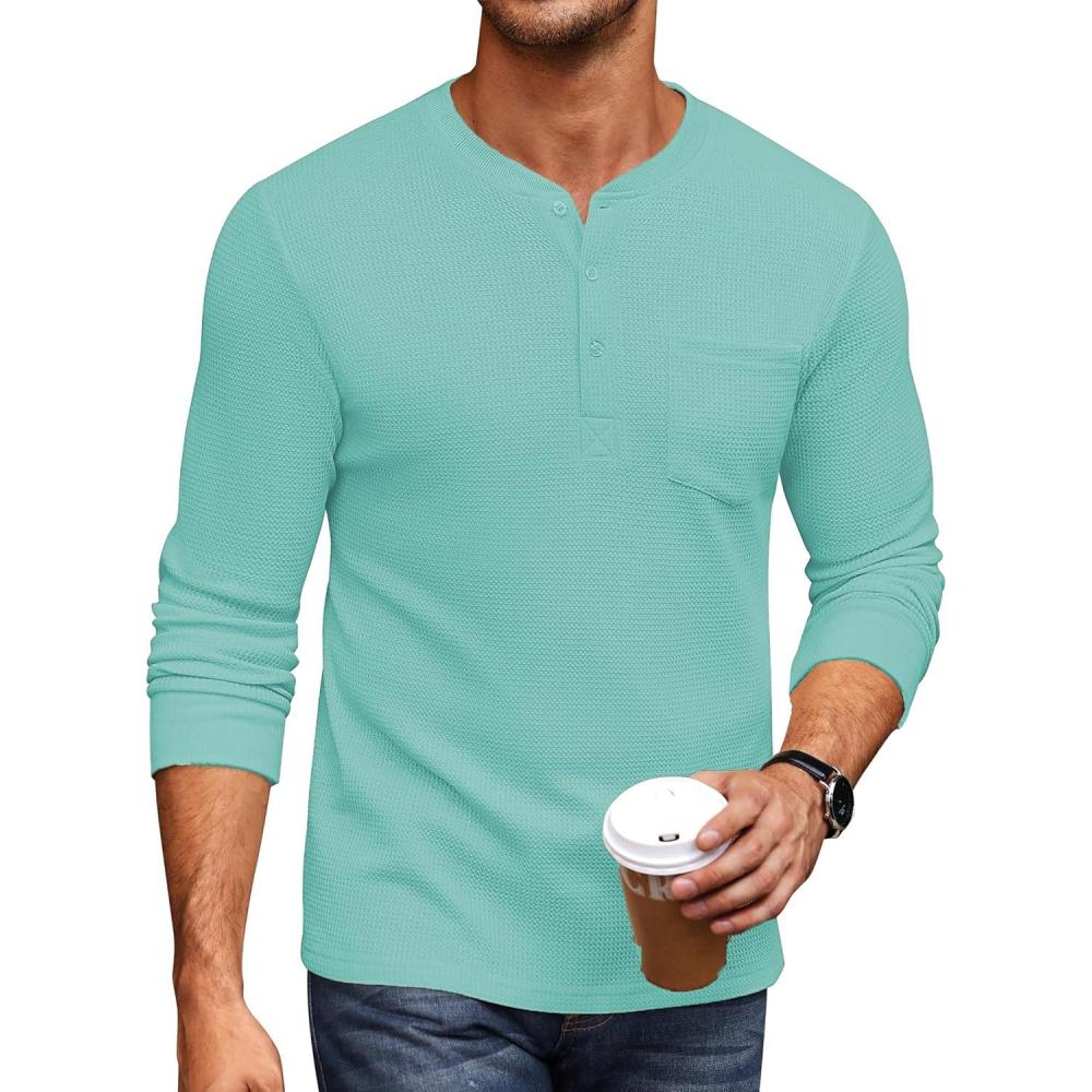COOFANDY Men’s Henley Shirts Long Sleeve Basic Waffle Pique Pullover T-Shirt with Pocket(Grey Green)