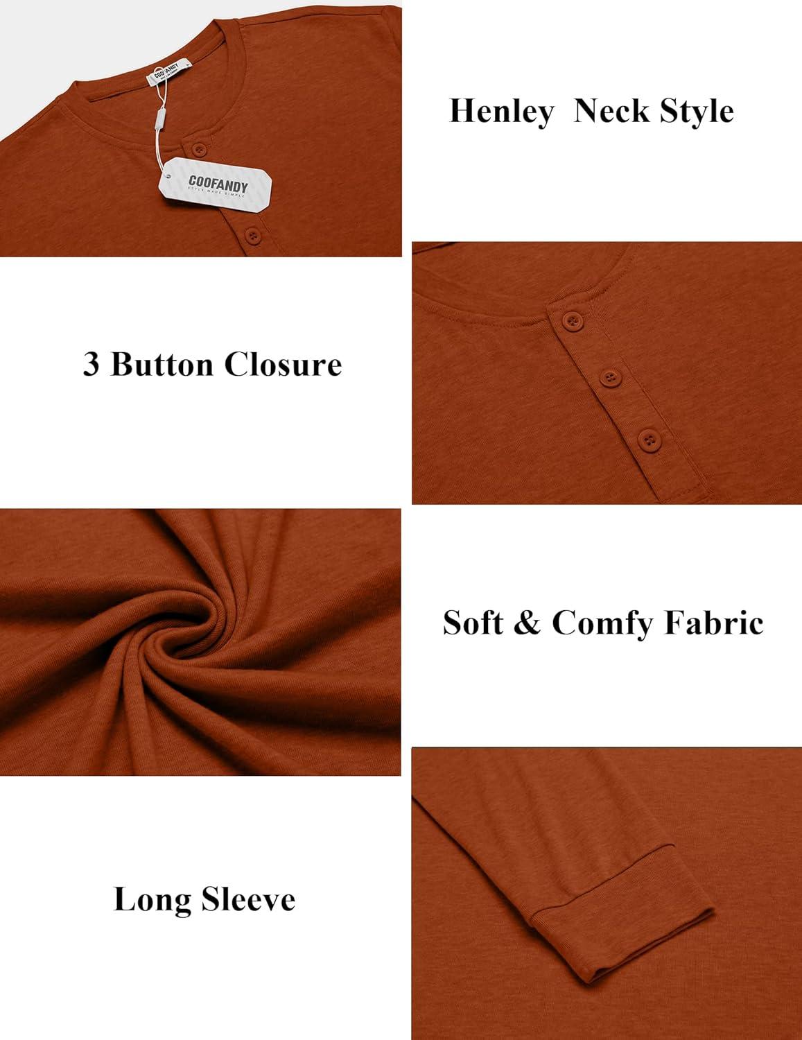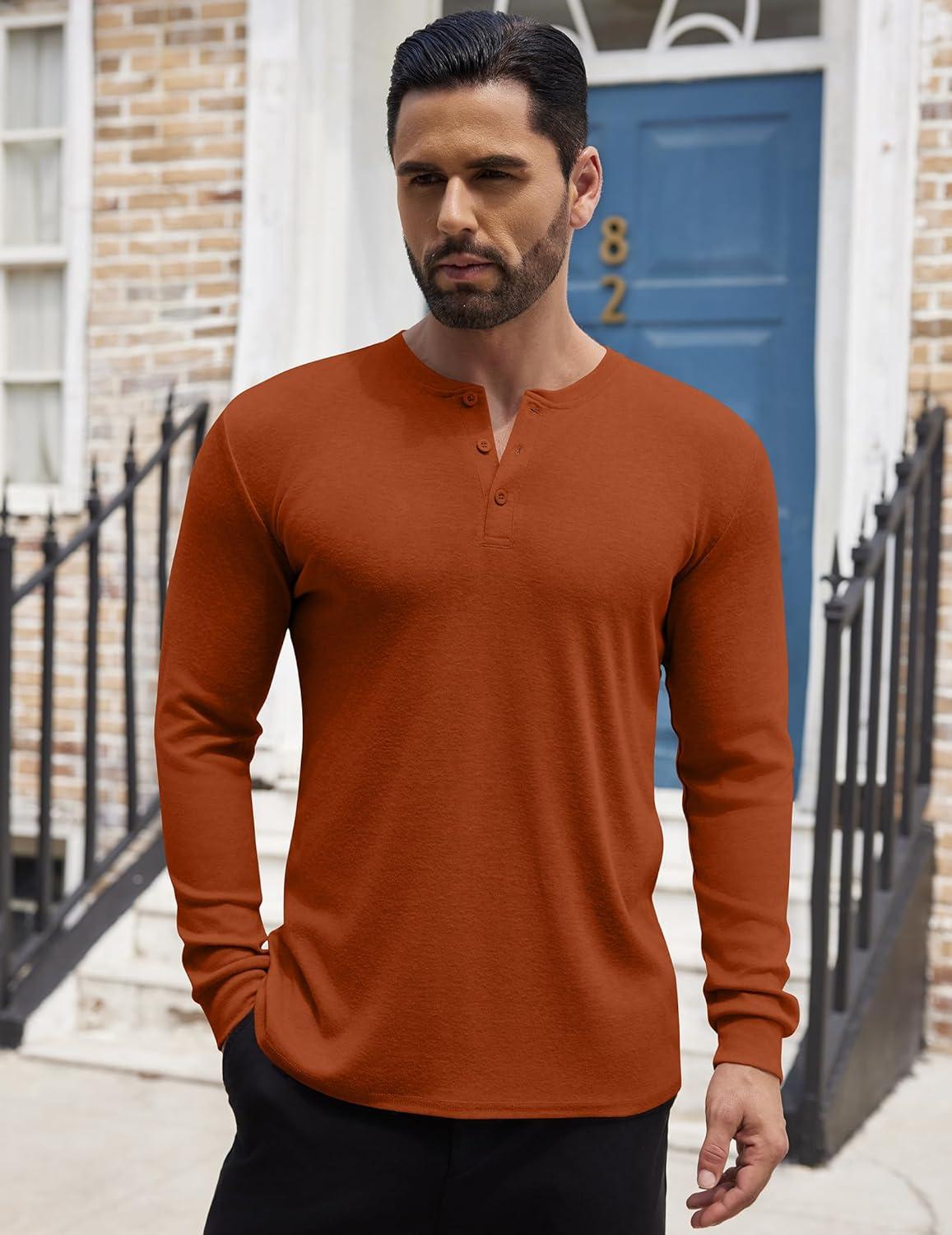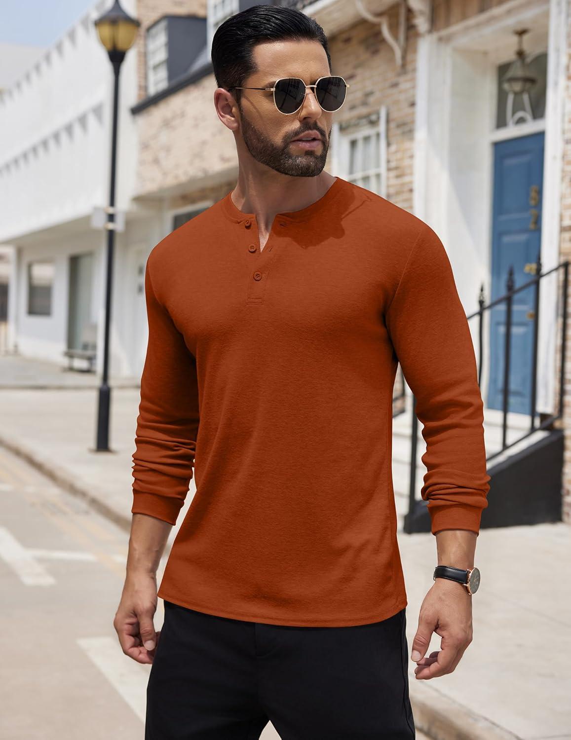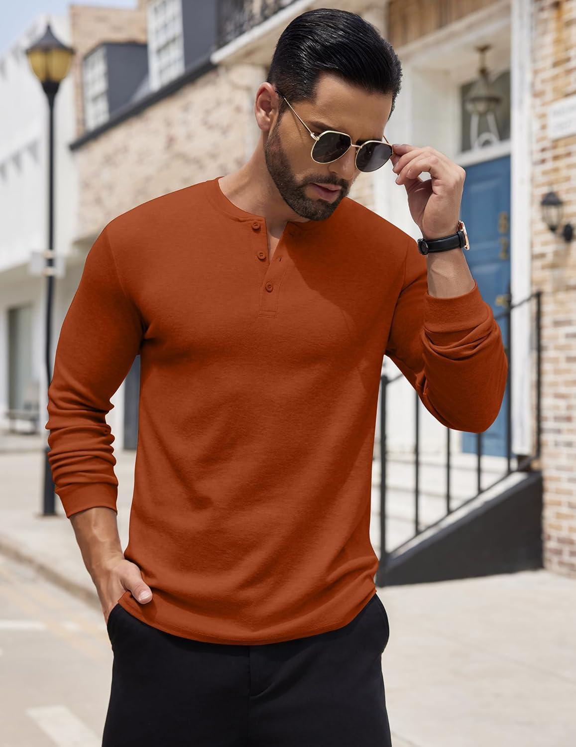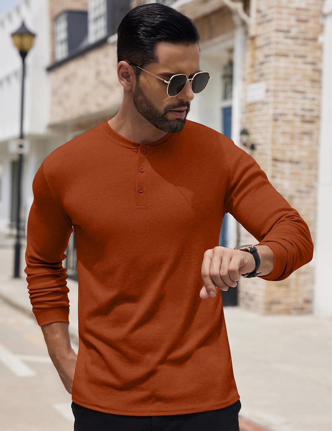 COOFANDY Men’s Henley Shirts Long Sleeve Button T-Shirt Lightweight Fashion Casual Pullover Shirt(Caramel)