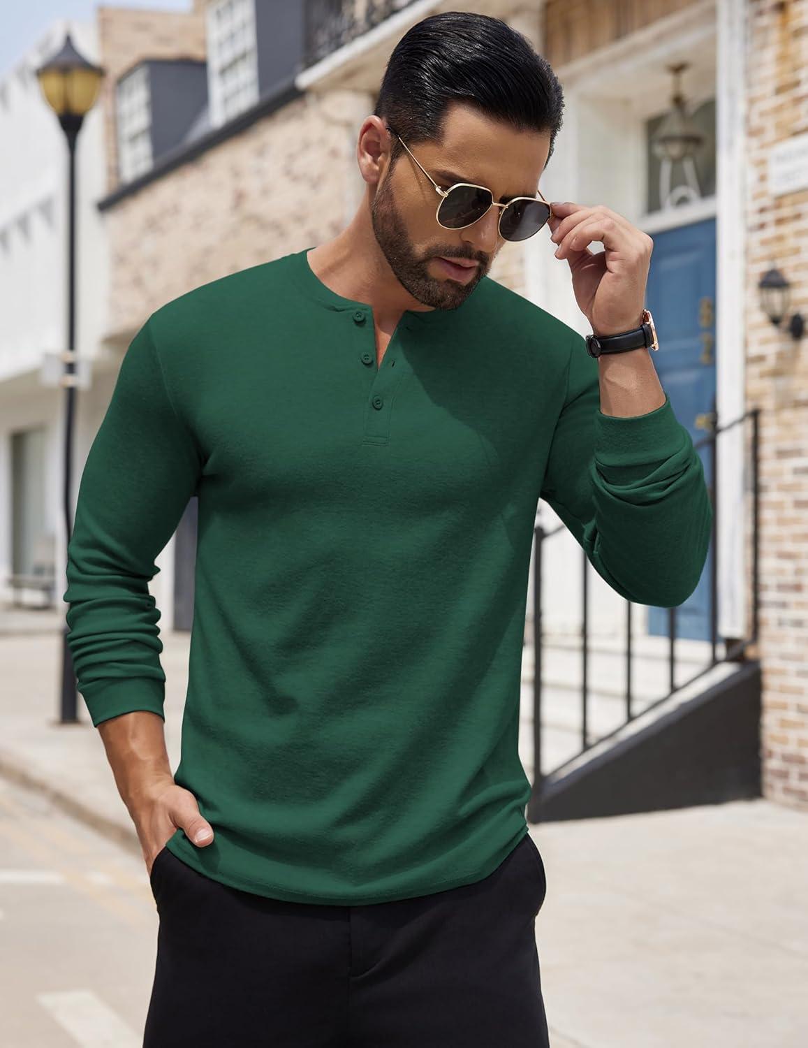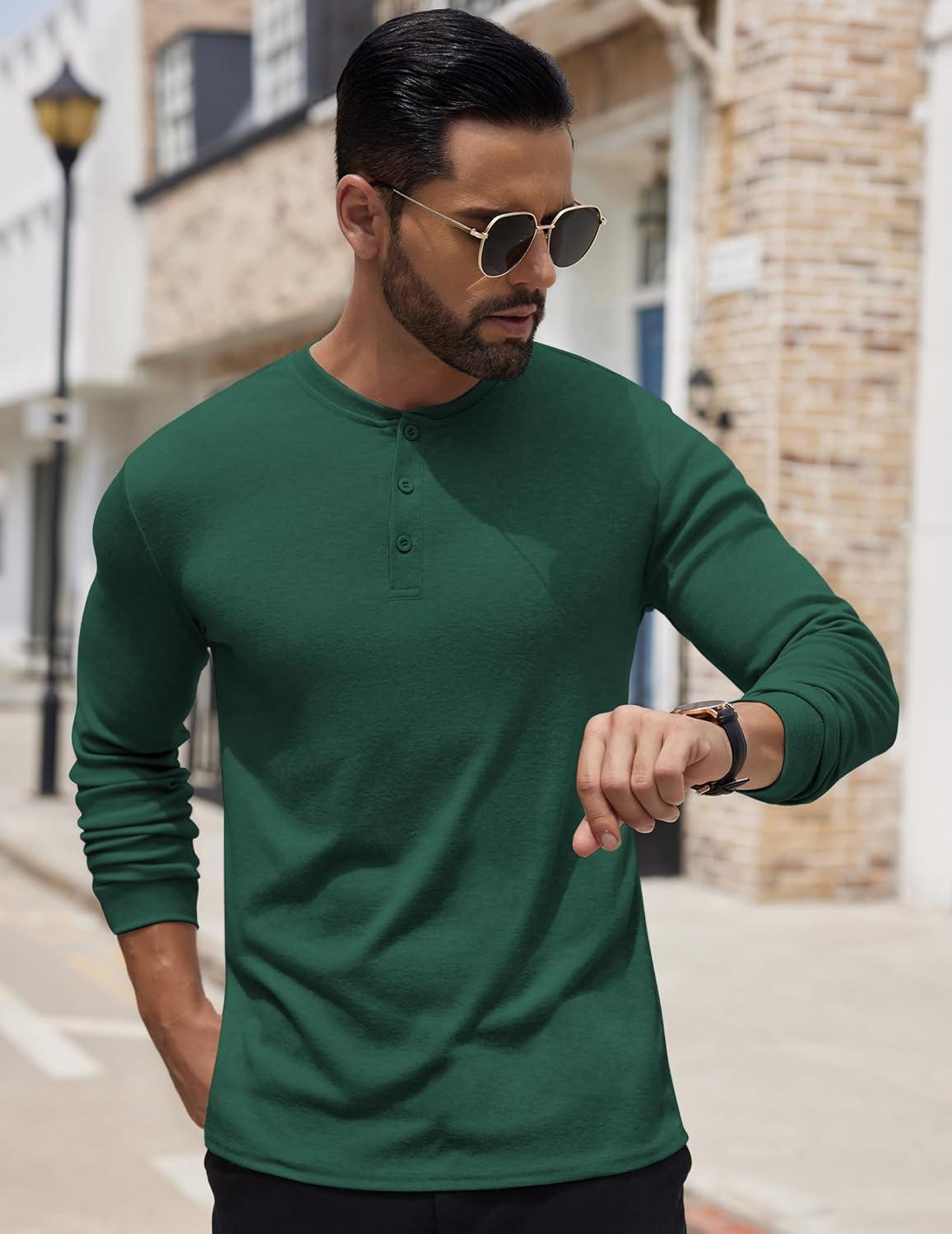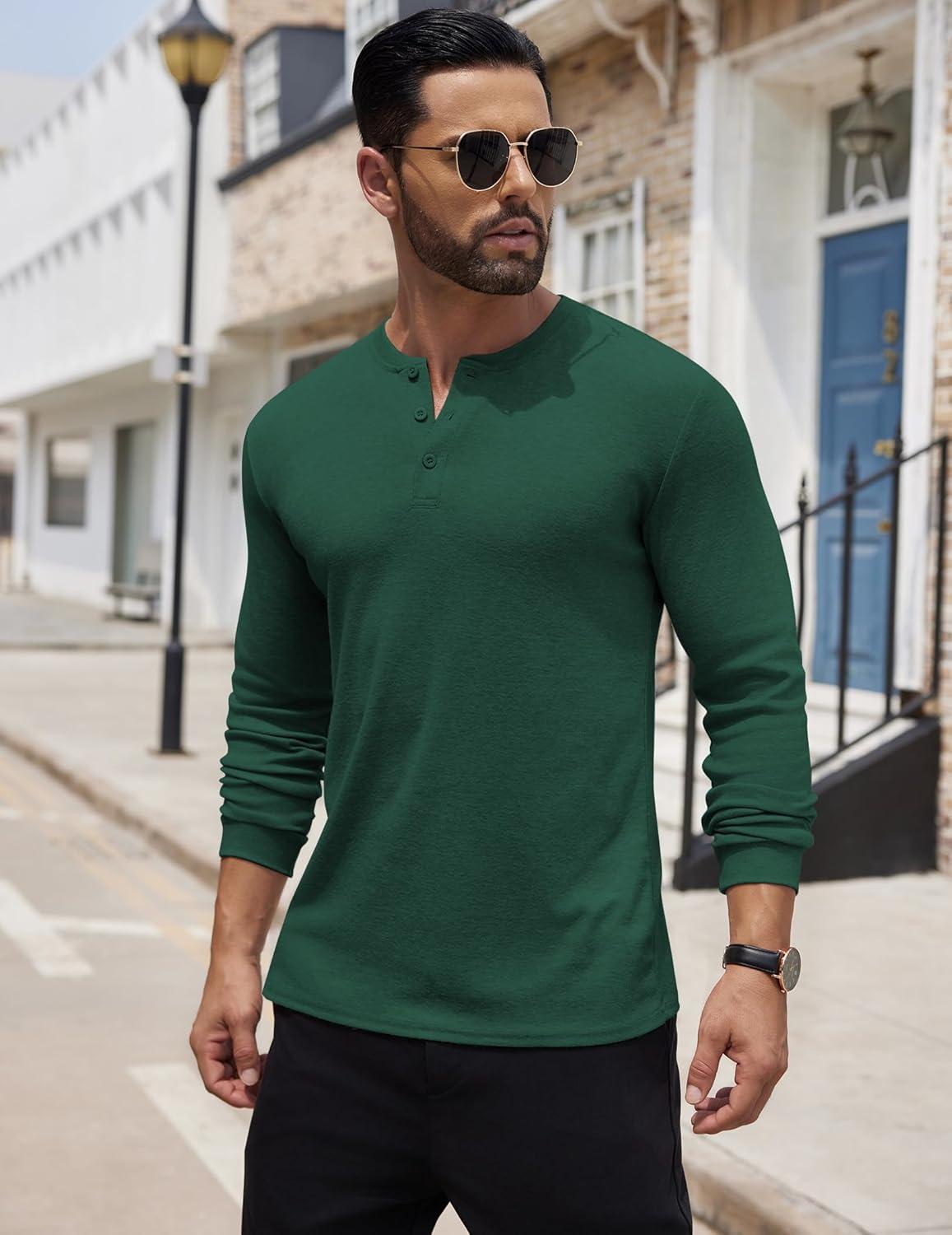COOFANDY Men’s Henley Shirts Long Sleeve Button T-Shirt Lightweight Fashion Casual Pullover Shirt(Green)