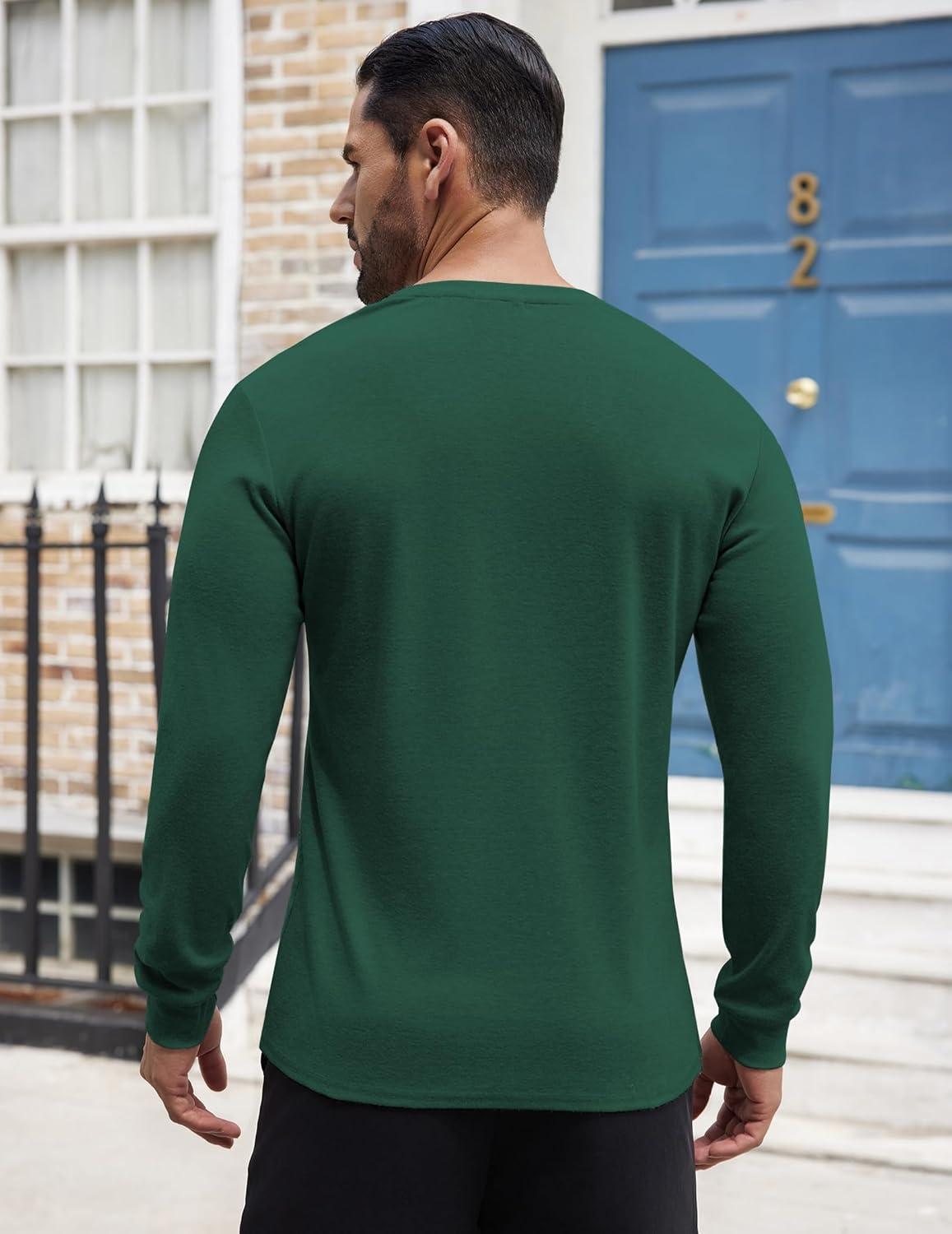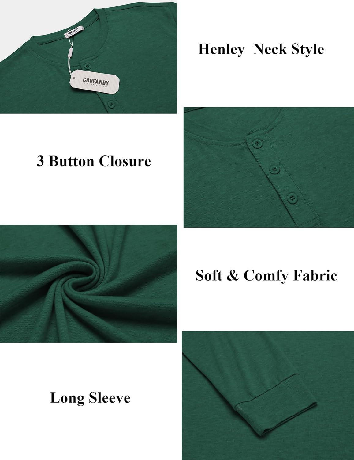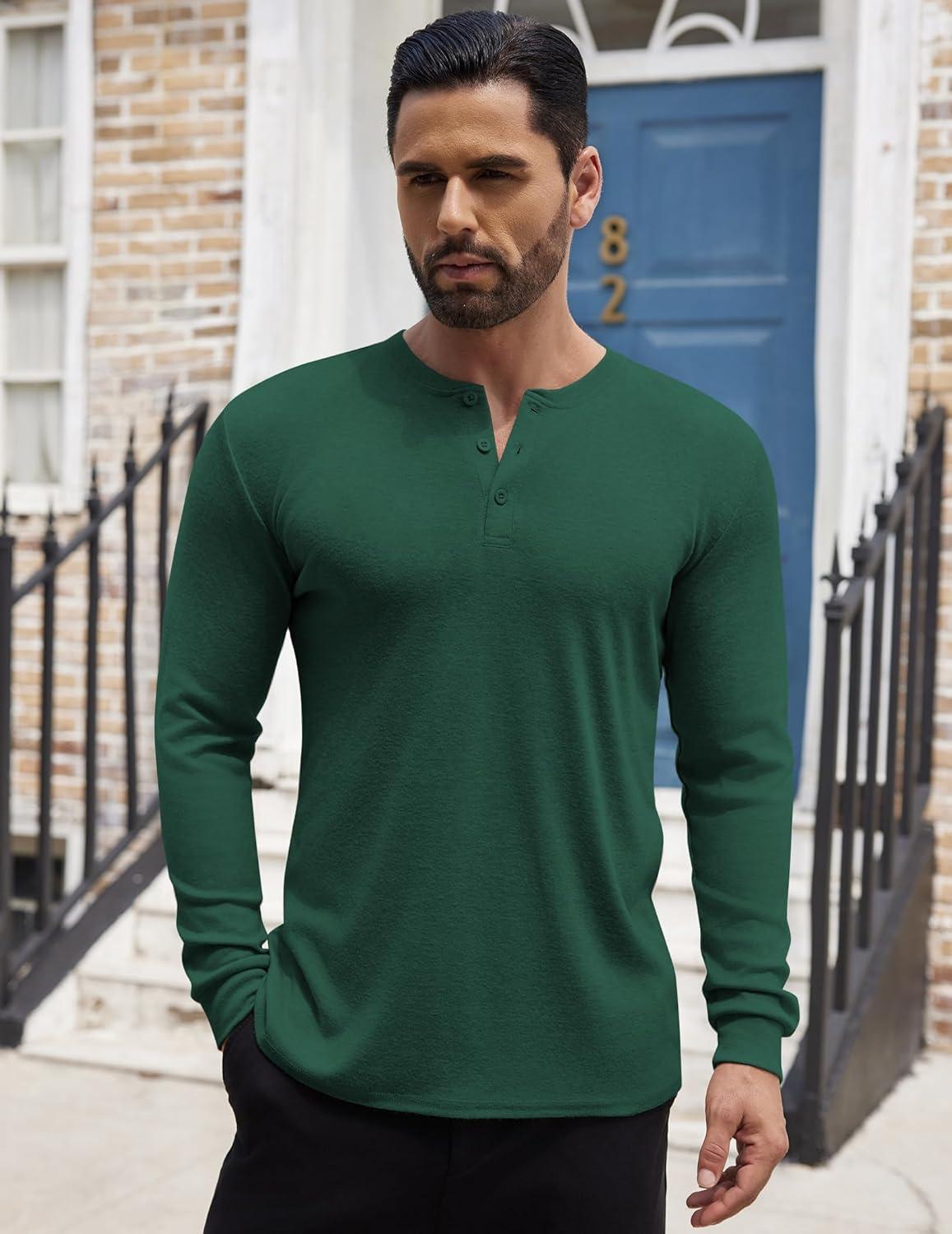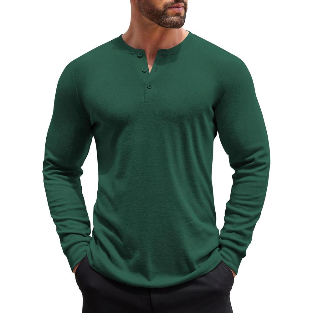 COOFANDY Men’s Henley Shirts Long Sleeve Button T-Shirt Lightweight Fashion Casual Pullover Shirt(Green)