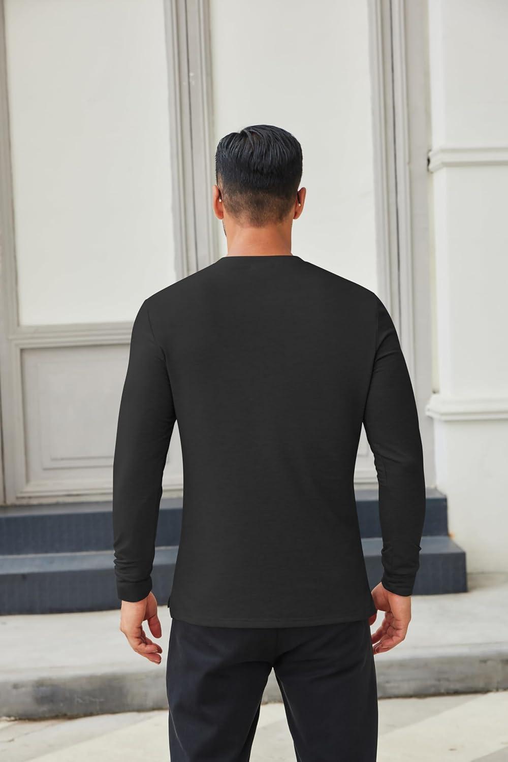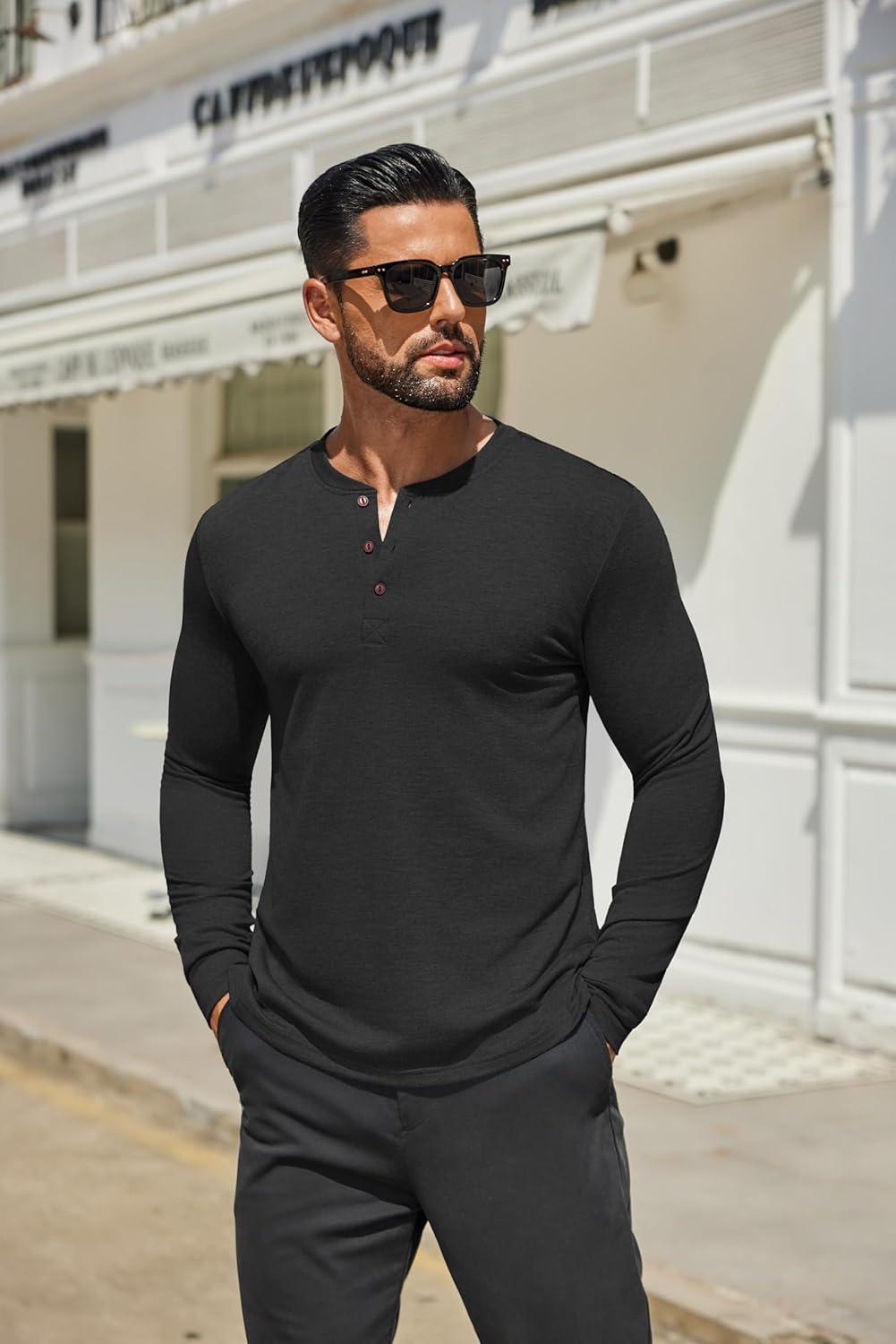 COOFANDY Men’s Henley Shirts Long Sleeve Casual Button Shirts Fashion Lightweight Pullover Shirts(All Black)