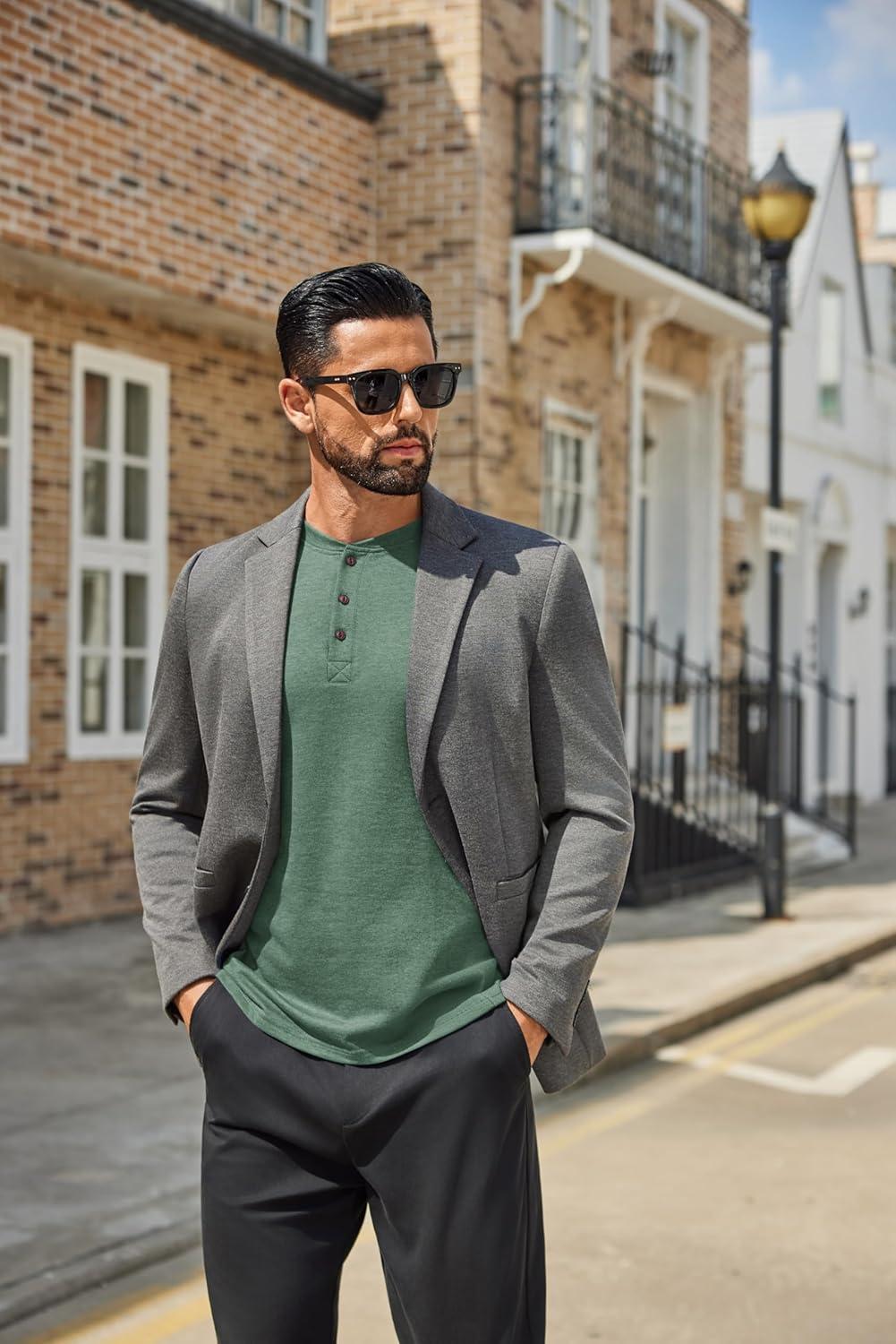 COOFANDY Mens Casual Blazer Knit Sport Coat Lightweight Two Button Suit Jacket(Army Green)