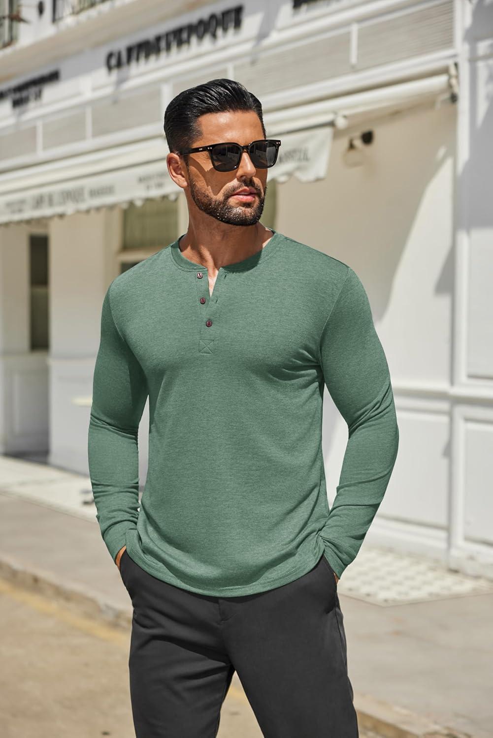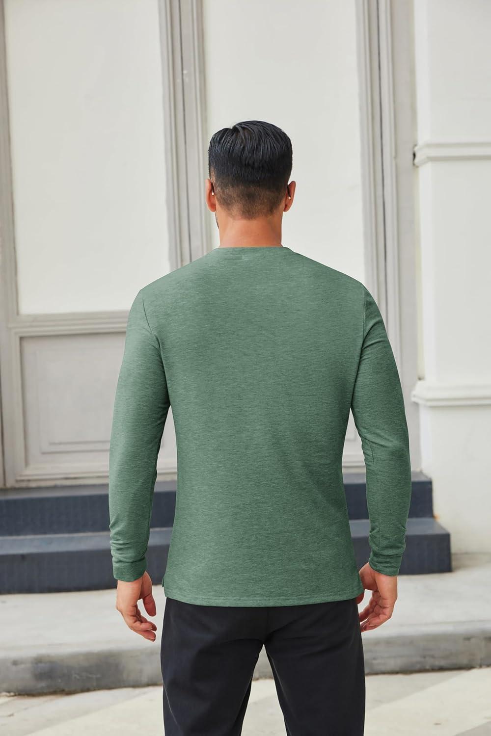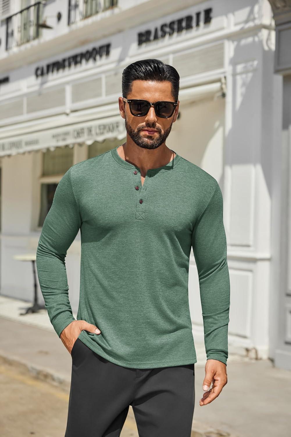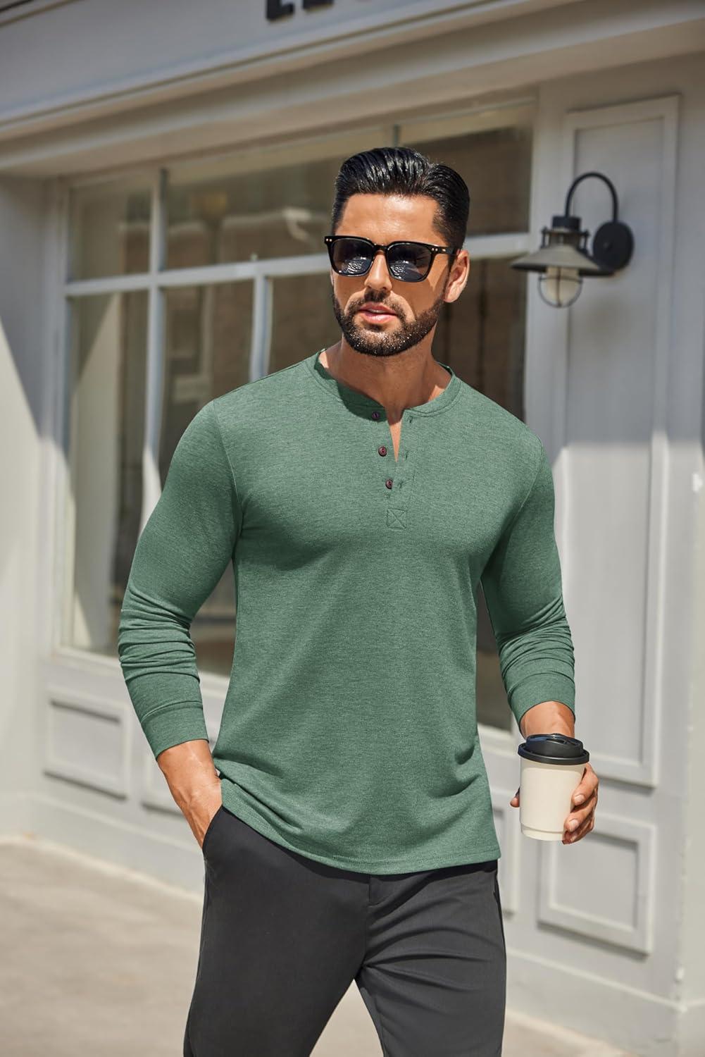 COOFANDY Men’s Henley Shirts Long Sleeve Casual Button Shirts Fashion Lightweight Pullover Shirts(Dark Green)
