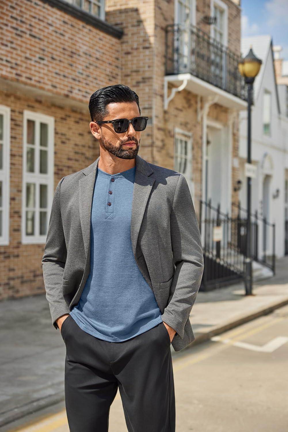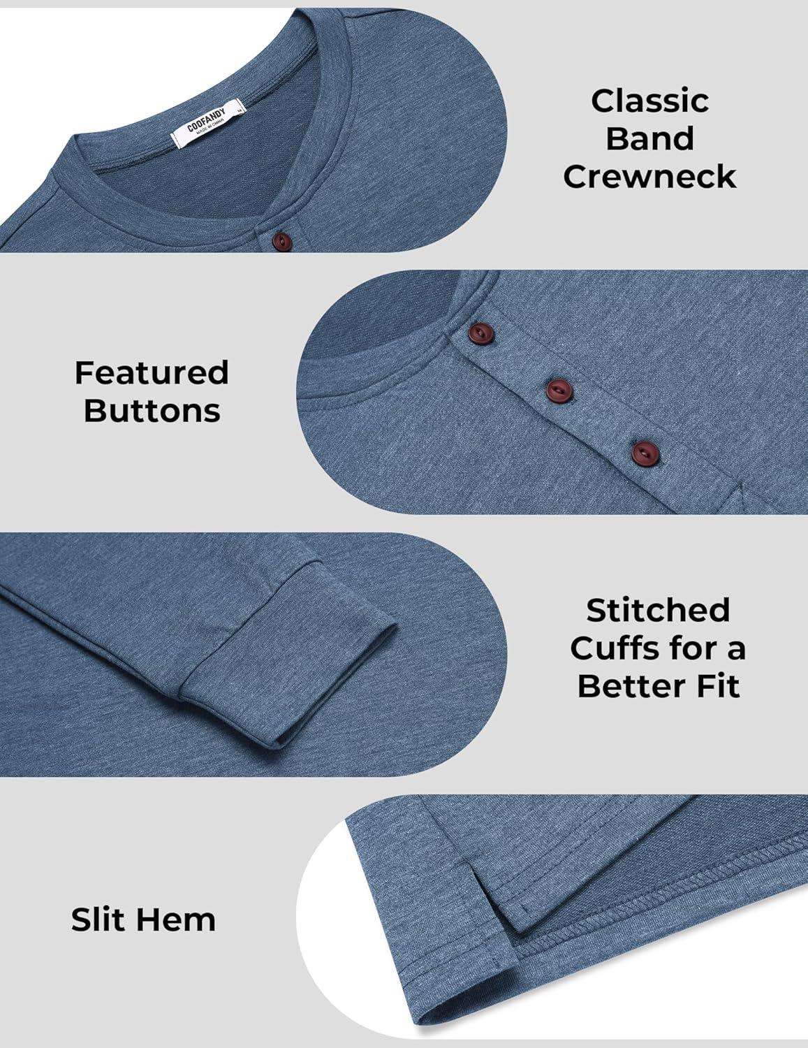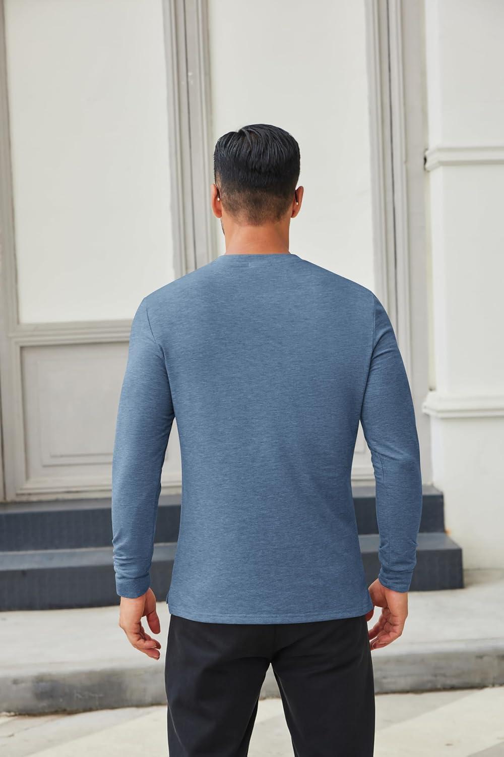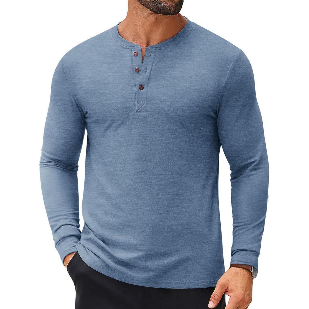 COOFANDY Men’s Henley Shirts Long Sleeve Casual Button Shirts Fashion Lightweight Pullover Shirts(Denim Blue)