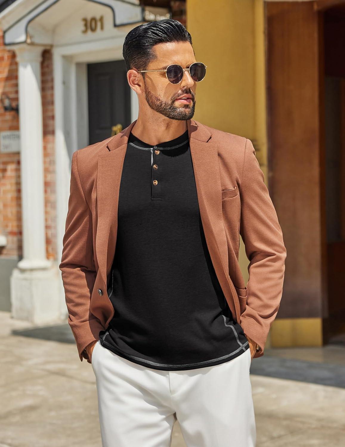 COOFANDY Men’s Henley Shirts Long Sleeve Casual Maverick Slub Henley T-Shirts Lightweight Basic Tee(01-black)