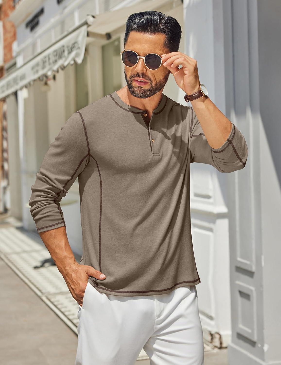 COOFANDY Men’s Henley Shirts Long Sleeve Casual Maverick Slub Henley T-Shirts Lightweight Basic Tee(02-khaki)