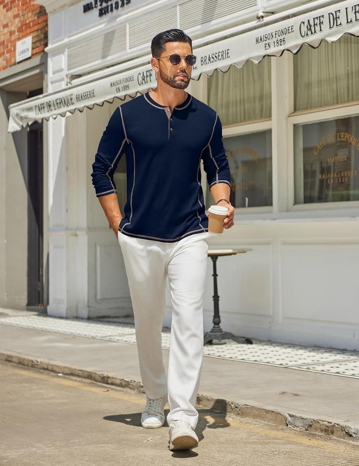 COOFANDY Men’s Henley Shirts Long Sleeve Casual Maverick Slub Henley T-Shirts Lightweight Basic Tee(02-navy Blue)