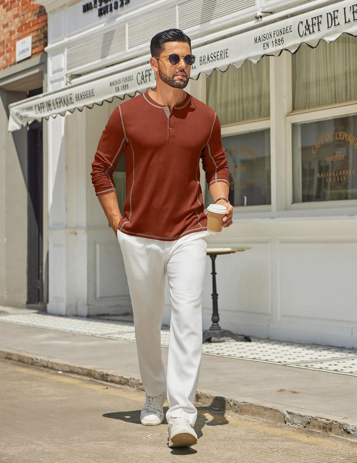 COOFANDY Men’s Henley Shirts Long Sleeve Casual Maverick Slub Henley T-Shirts Lightweight Basic Tee(Caramel)