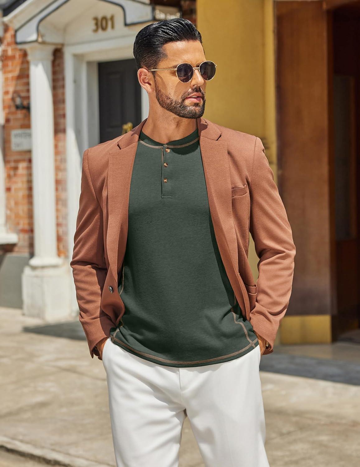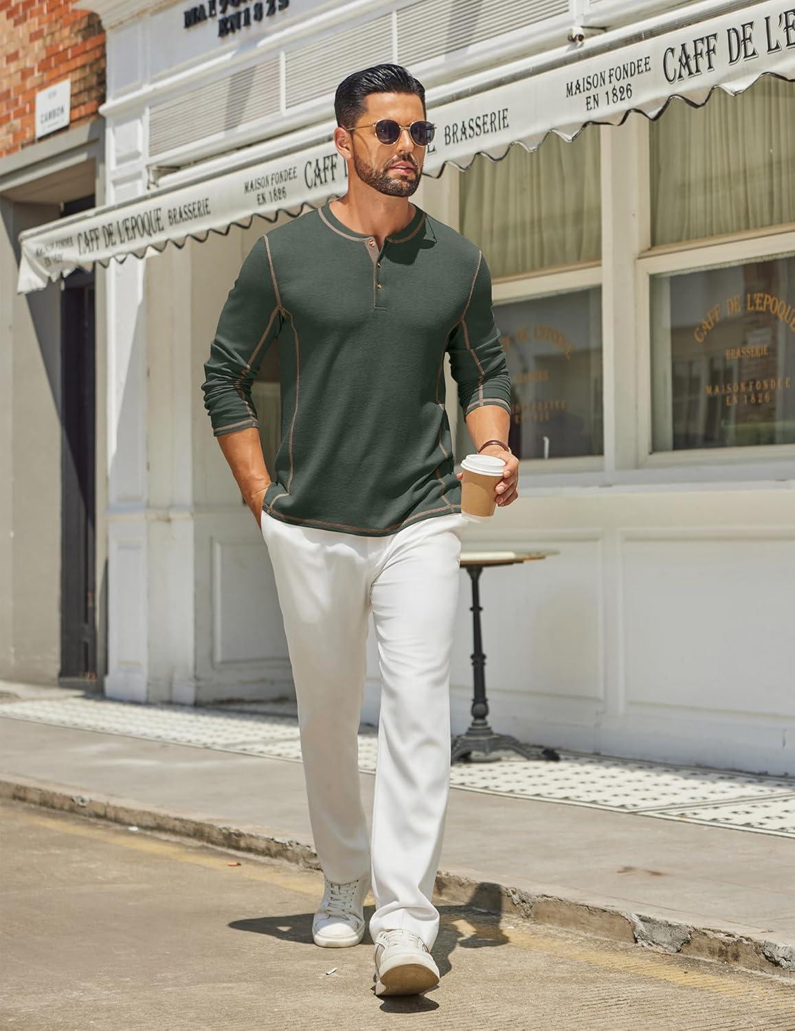 COOFANDY Men’s Henley Shirts Long Sleeve Casual Maverick Slub Henley T-Shirts Lightweight Basic Tee(Dark Army Green)