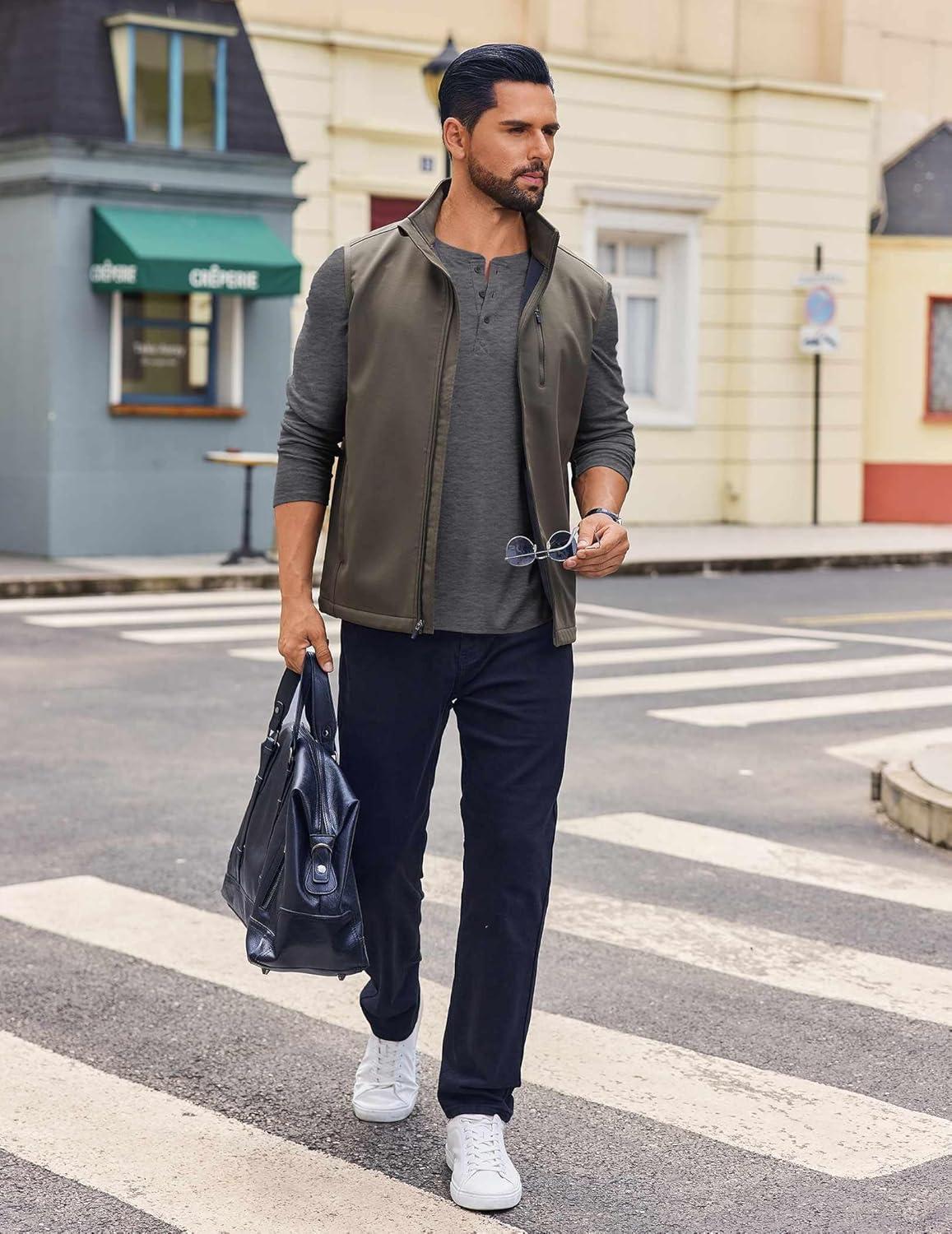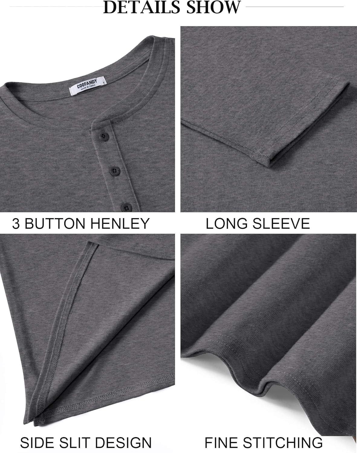 COOFANDY Mens Henley Shirts Long Sleeve Casual Pullover Shirt Fashion Button T-Shirt(Dark Grey)