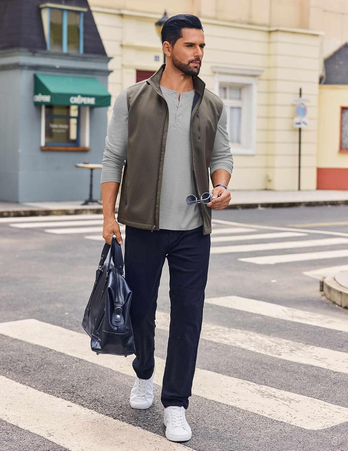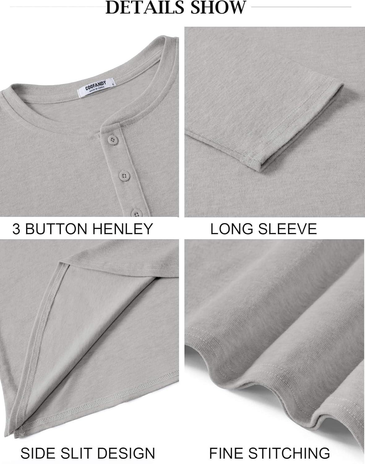 COOFANDY Mens Henley Shirts Long Sleeve Casual Pullover Shirt Fashion Button T-Shirt(Light Grey)