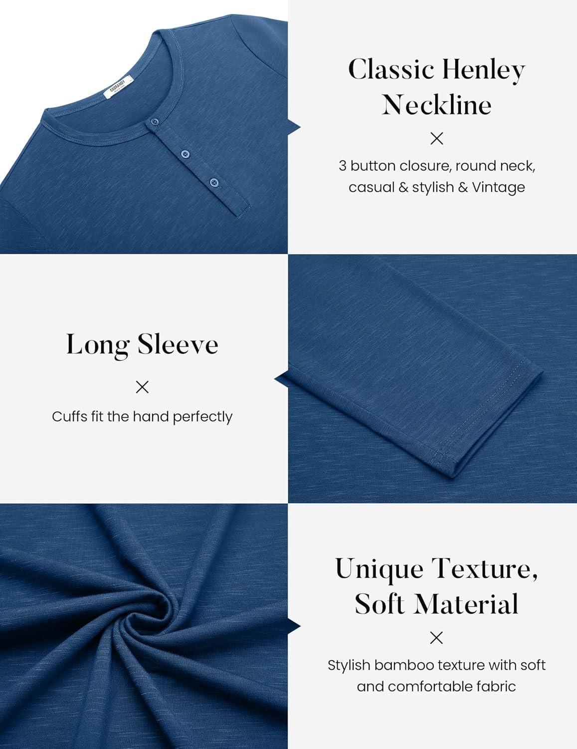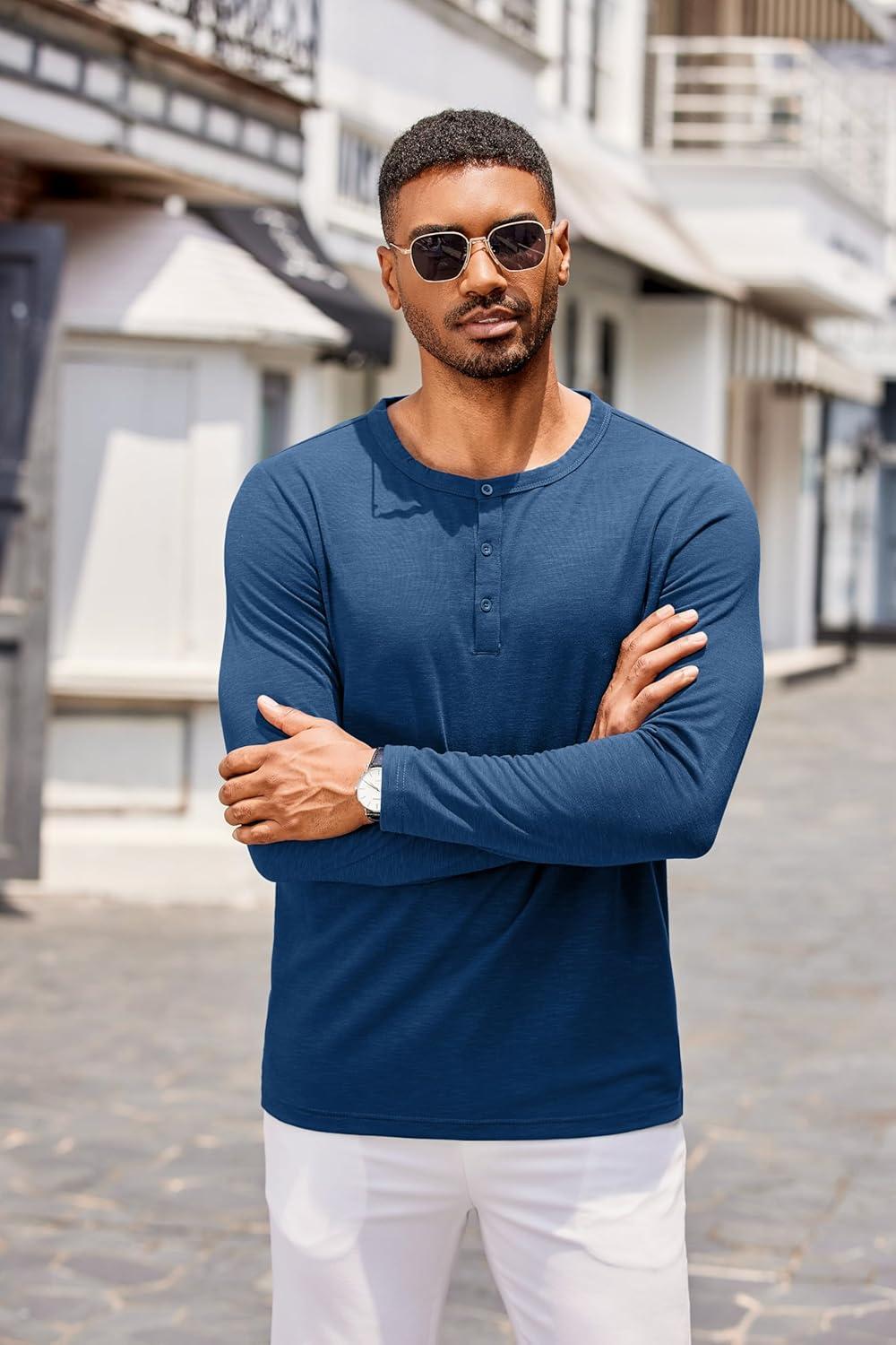 COOFANDY Men’s Henley Shirts Long Sleeve Casual Pullover T-Shirt Fashion Basic Button Shirts(Dark Blue)