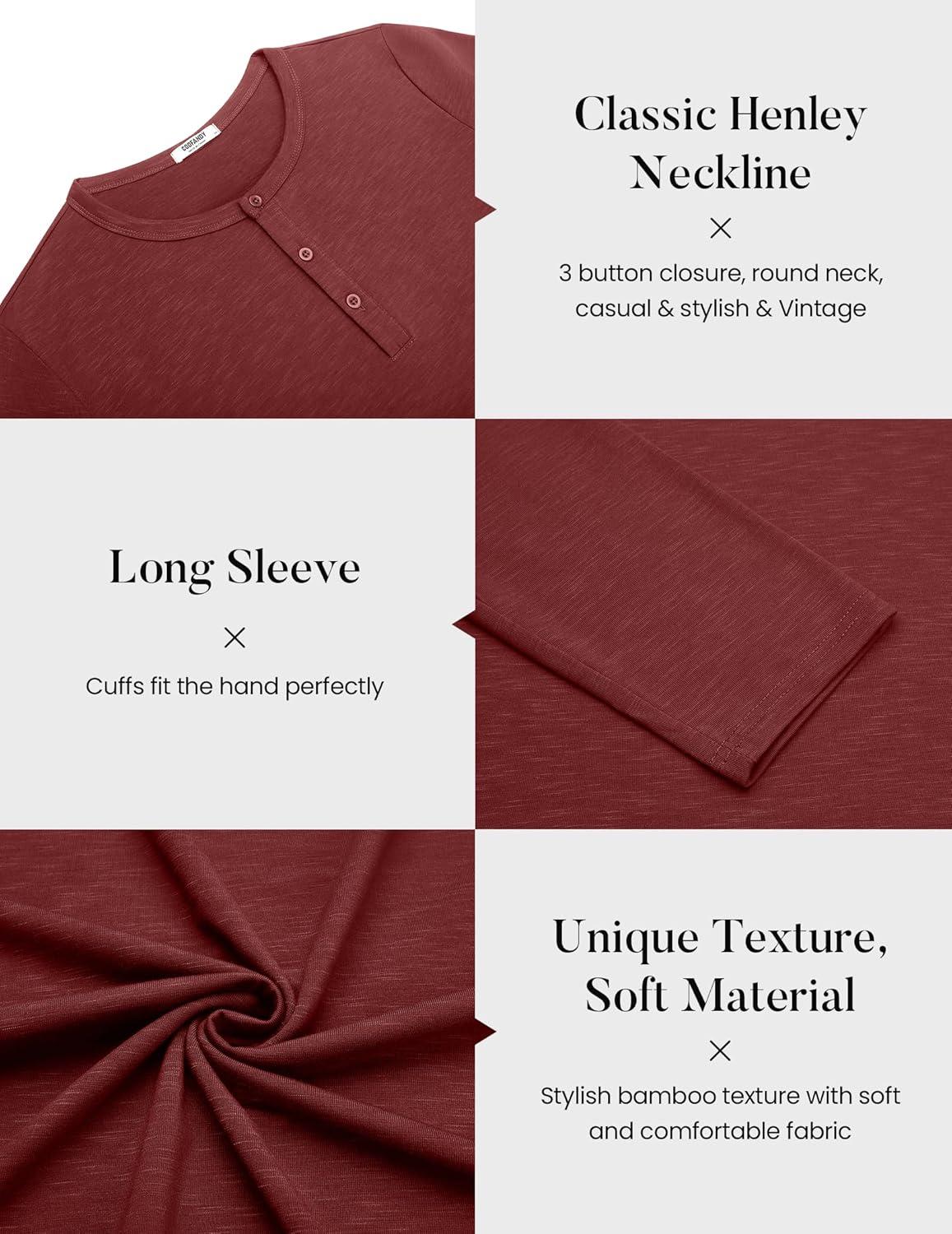 COOFANDY Men’s Henley Shirts Long Sleeve Casual Pullover T-Shirt Fashion Basic Button Shirts(Wine Red)