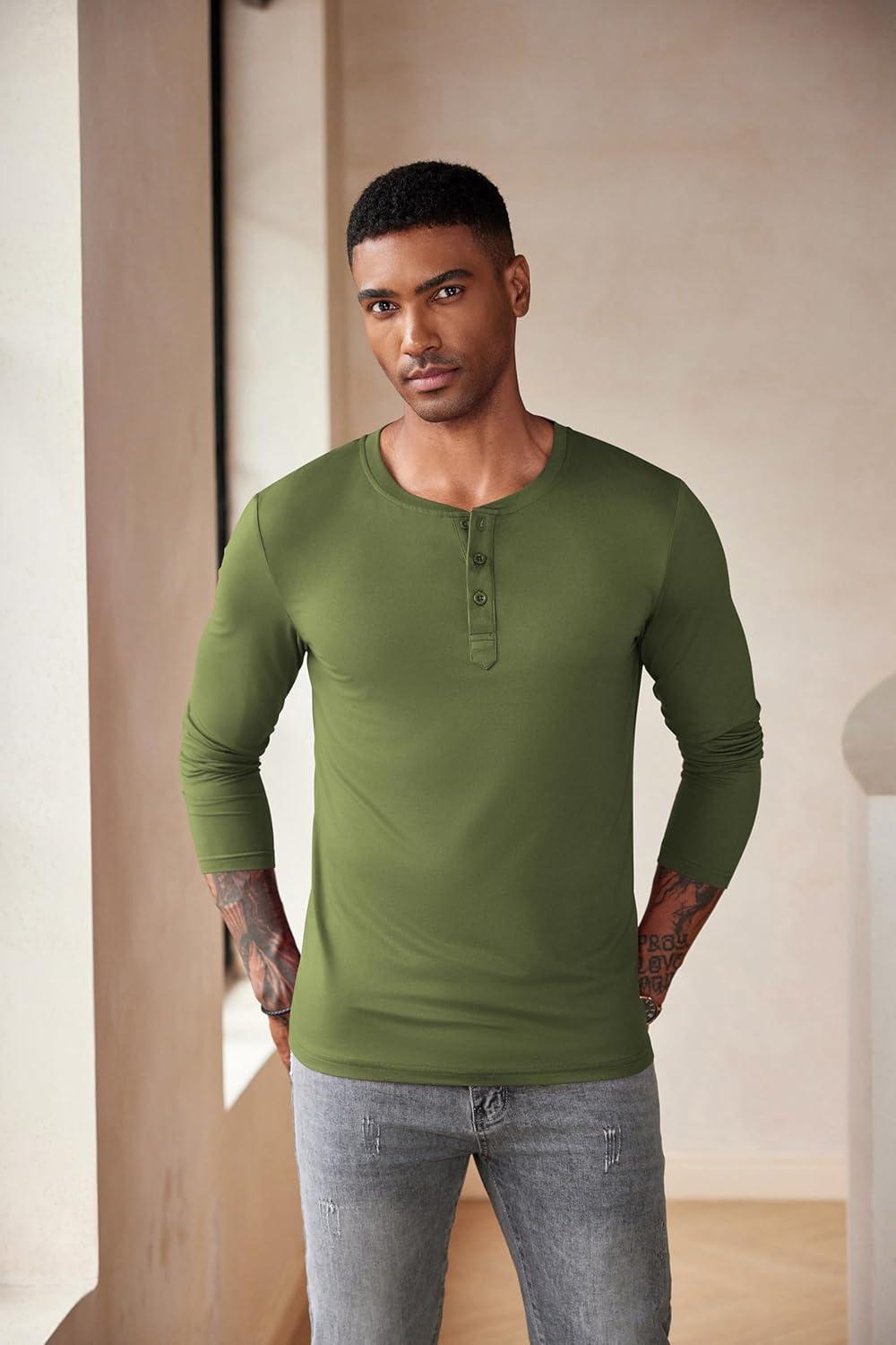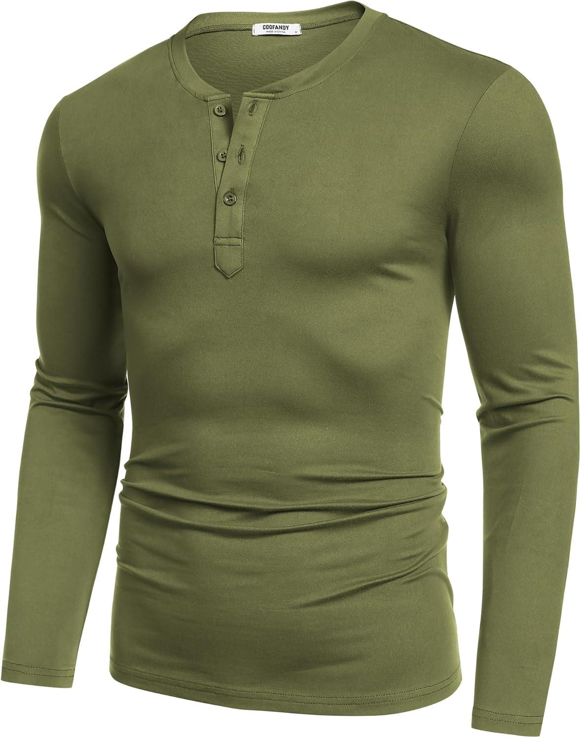 COOFANDY Men’s Henley Shirts Long Sleeve Fashion Casual Tee Basic Lightweight T-Shirt(Army Green)