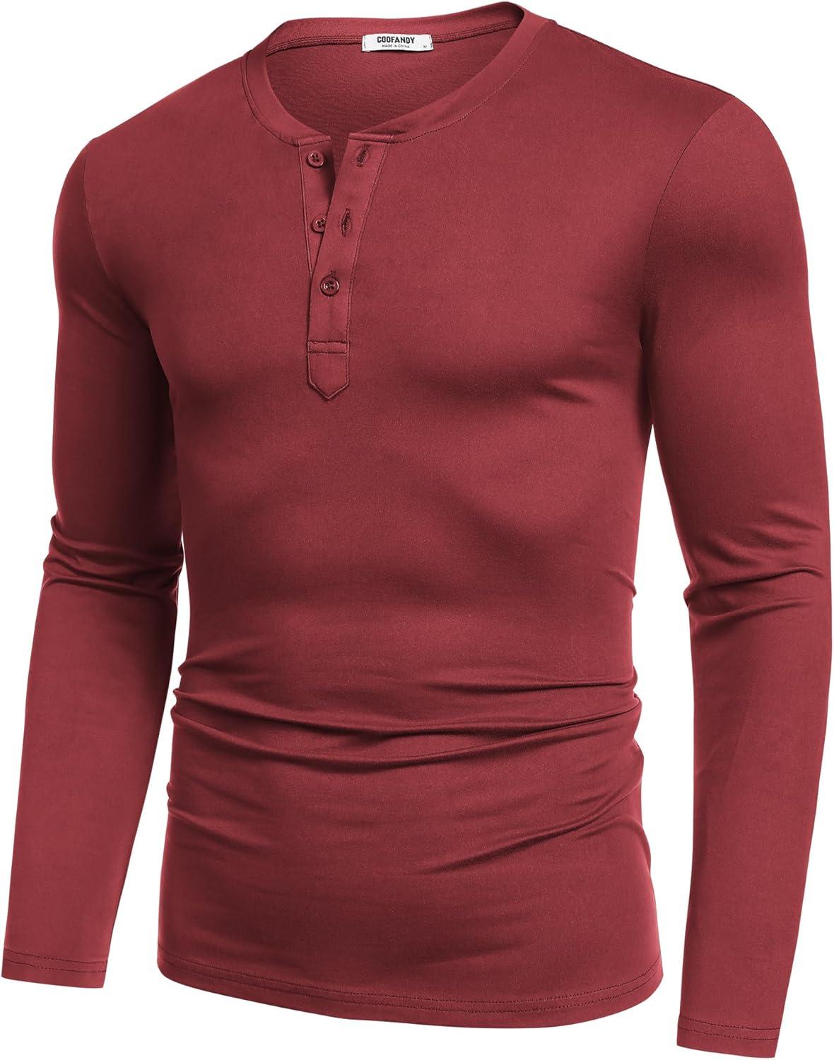 COOFANDY Men’s Henley Shirts Long Sleeve Fashion Casual Tee Basic Lightweight T-Shirt(Wine Red)
