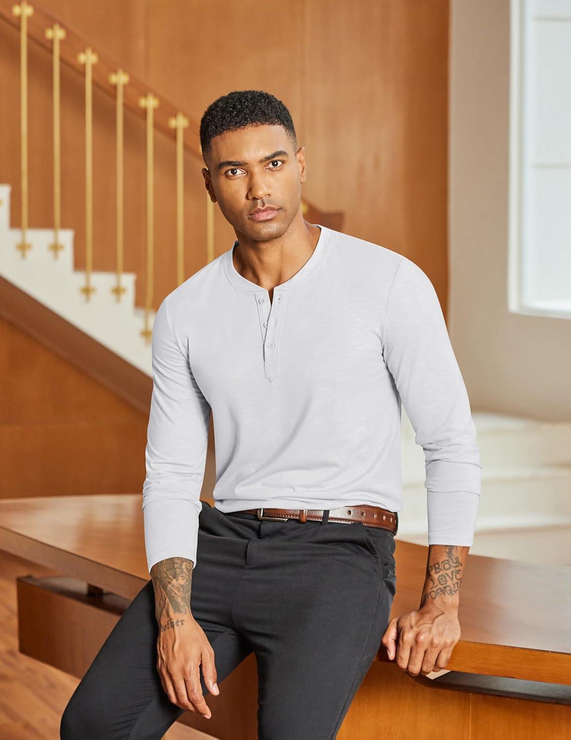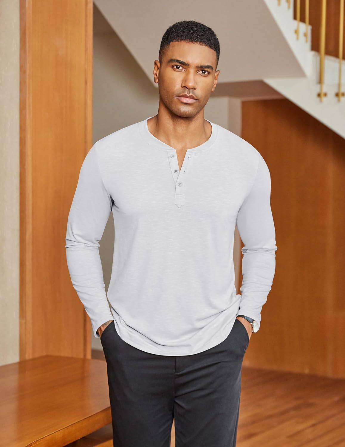 COOFANDY Men’s Henley Shirts Long Sleeve Lightweight Button T-Shirt Casual Basic Tee Top(White)
