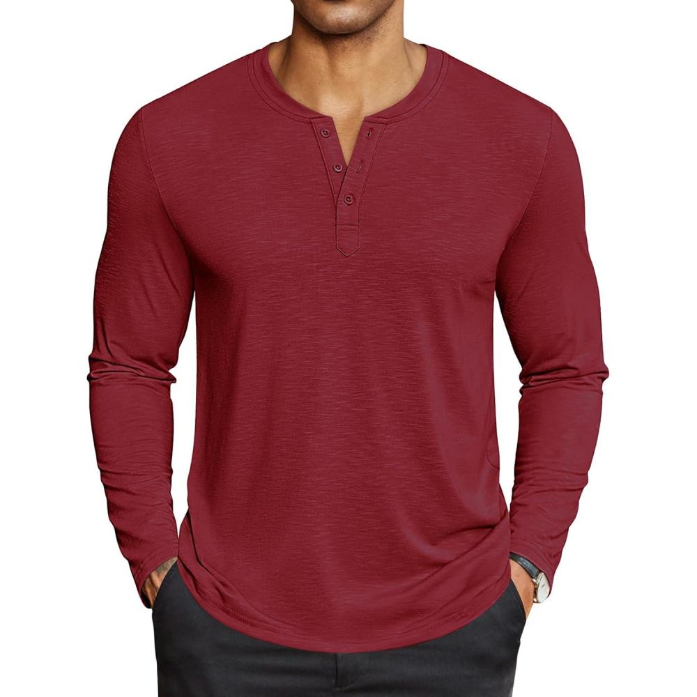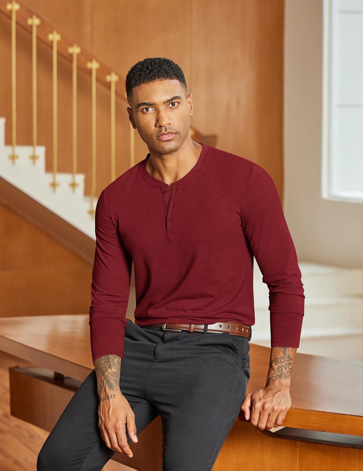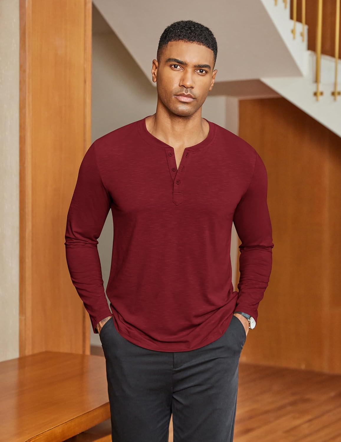 COOFANDY Men’s Henley Shirts Long Sleeve Lightweight Button T-Shirt Casual Basic Tee Top(Wine Red)