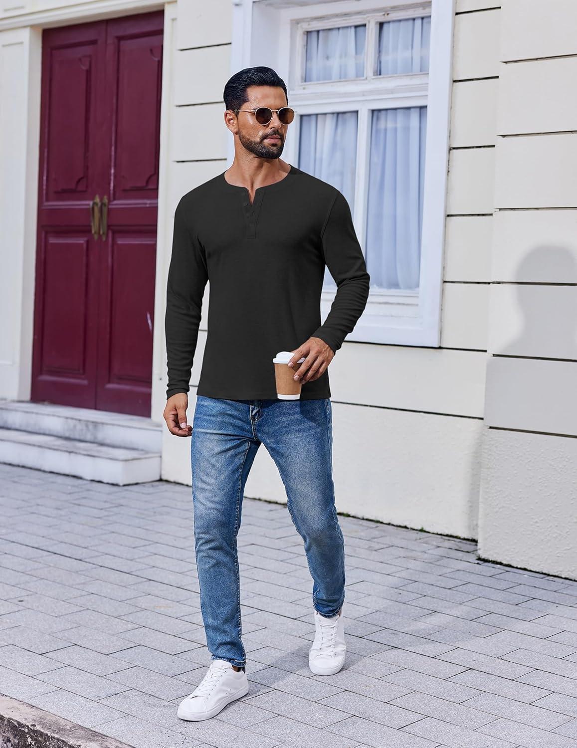 COOFANDY Mens Henley Shirts Long Sleeve Lightweight Buttons T-Shirts Casual Basic Pullover Top(Black)
