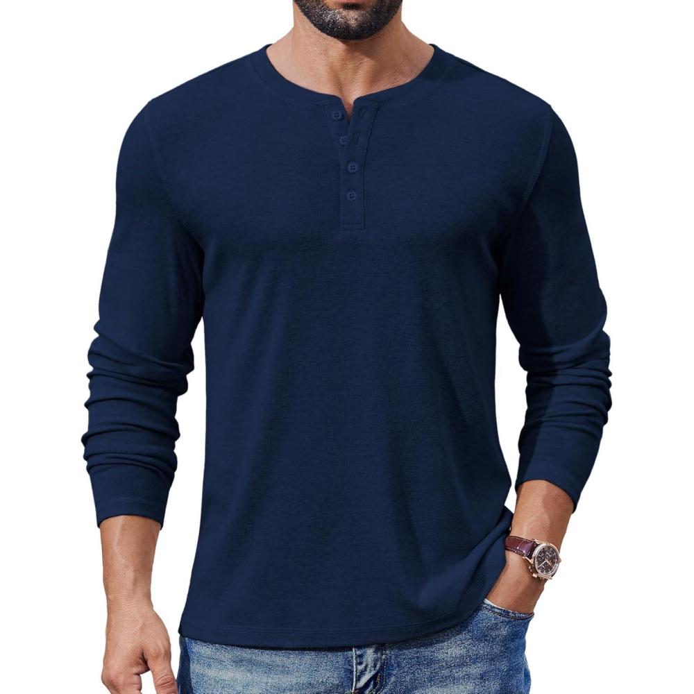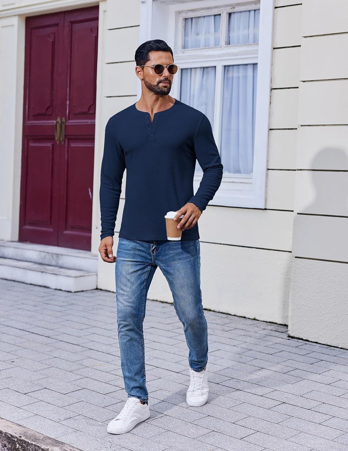 COOFANDY Mens Henley Shirts Long Sleeve Lightweight Buttons T-Shirts Casual Basic Pullover Top(Navy Blue)