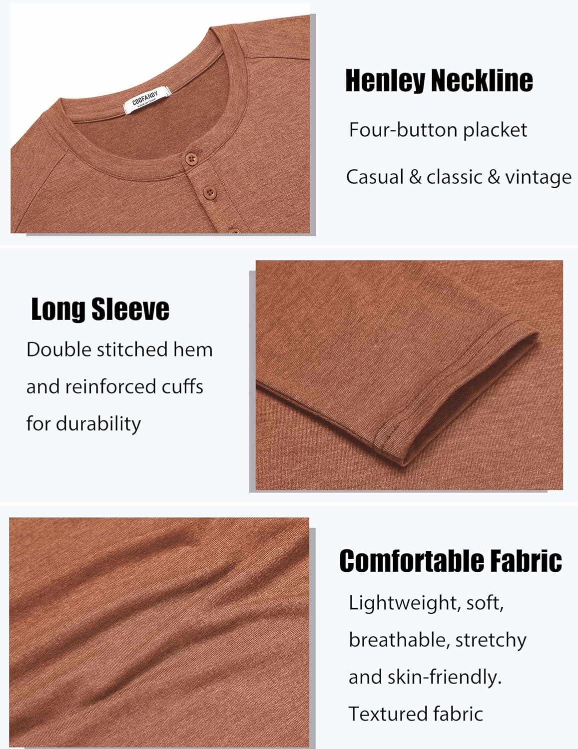 COOFANDY Men’s Henley Shirts Long Sleeve T-Shirt Lightweight Fashion Casual Pullover Tee Shirt(Caramel)