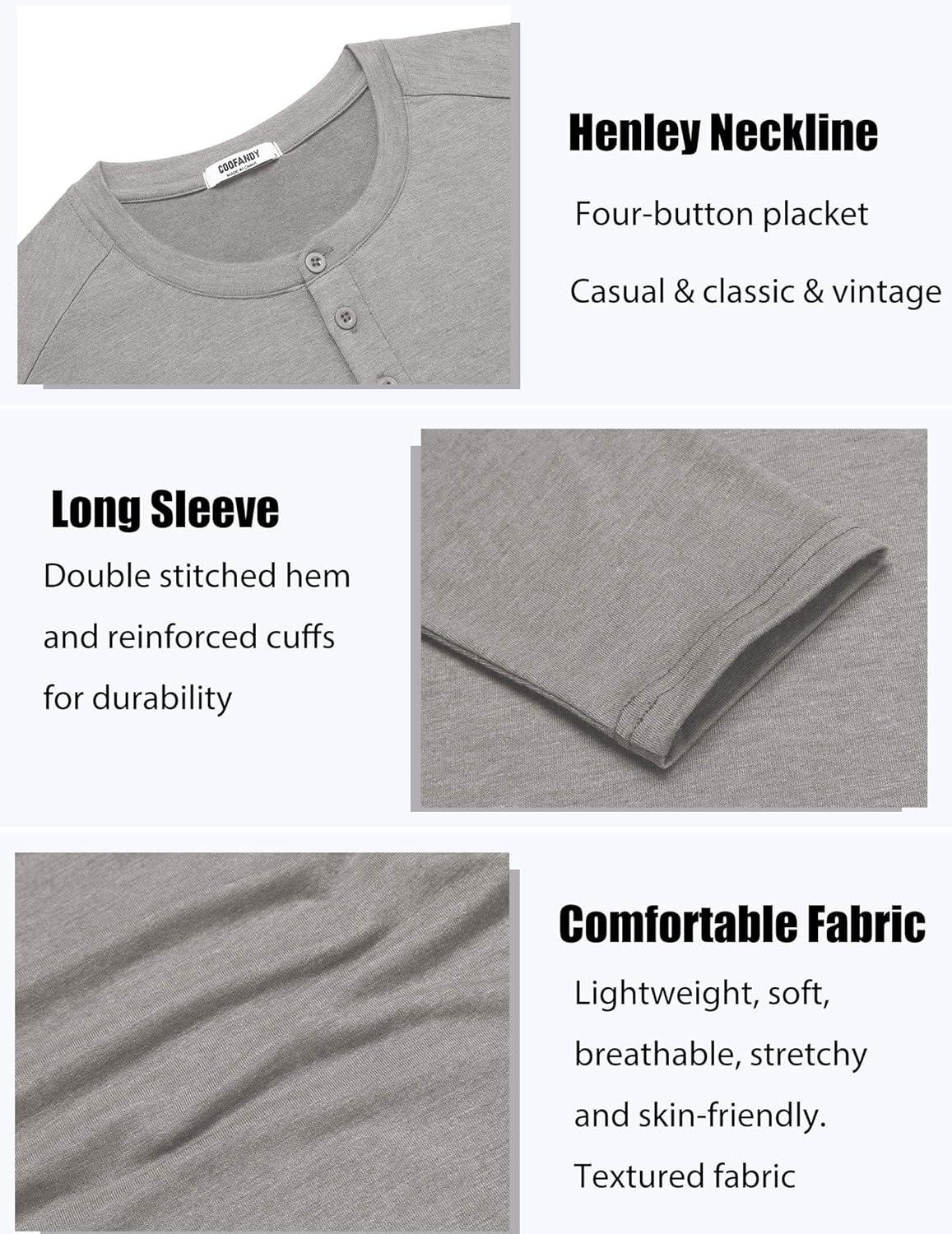 COOFANDY Men’s Henley Shirts Long Sleeve T-Shirt Lightweight Fashion Casual Pullover Tee Shirt(Light Grey)