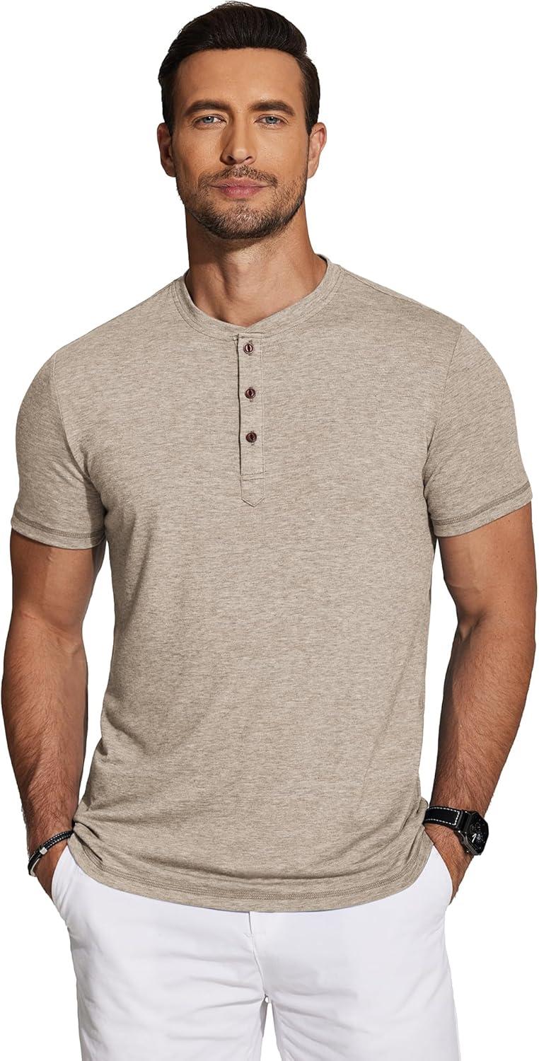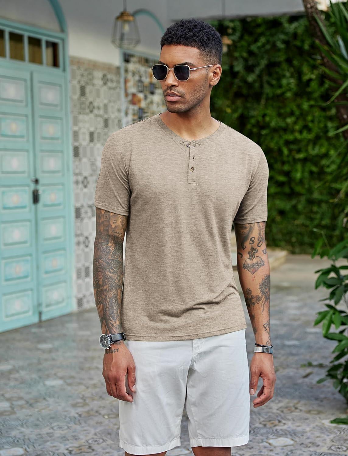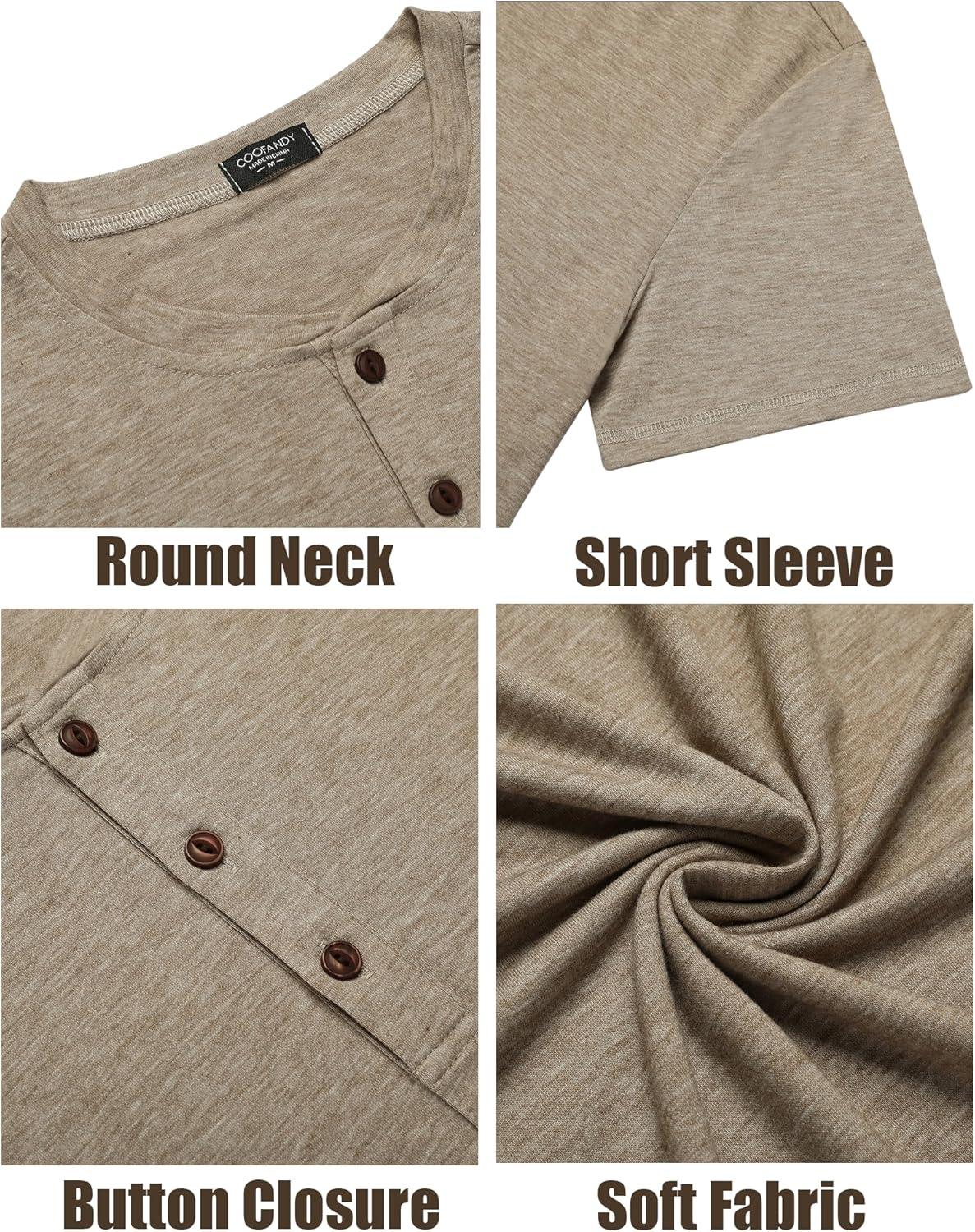 COOFANDY Men’s Henley Shirts Short Sleeve Casual Basic Tee Summer Button Henley Soild T Shirts(Khaki)
